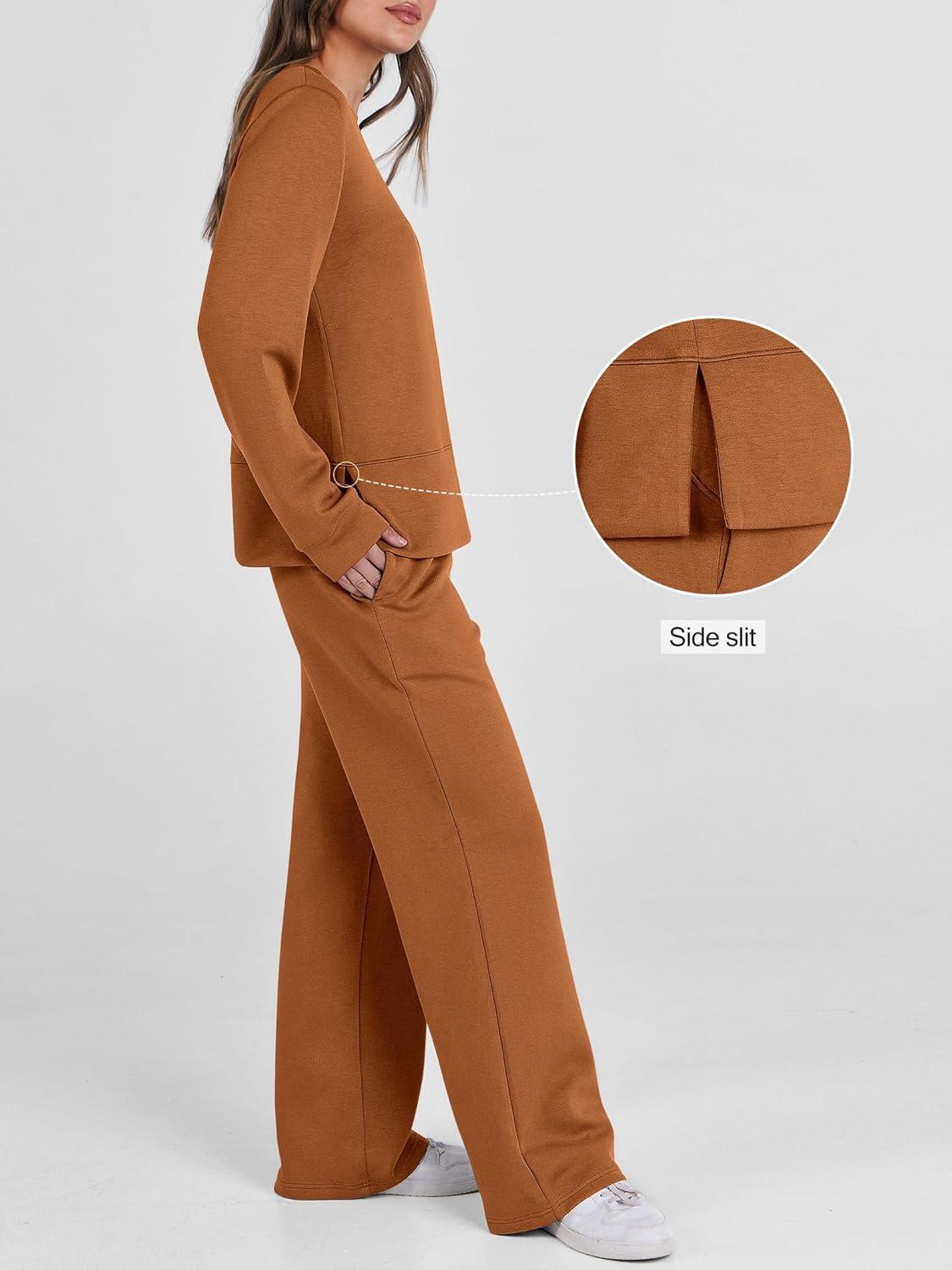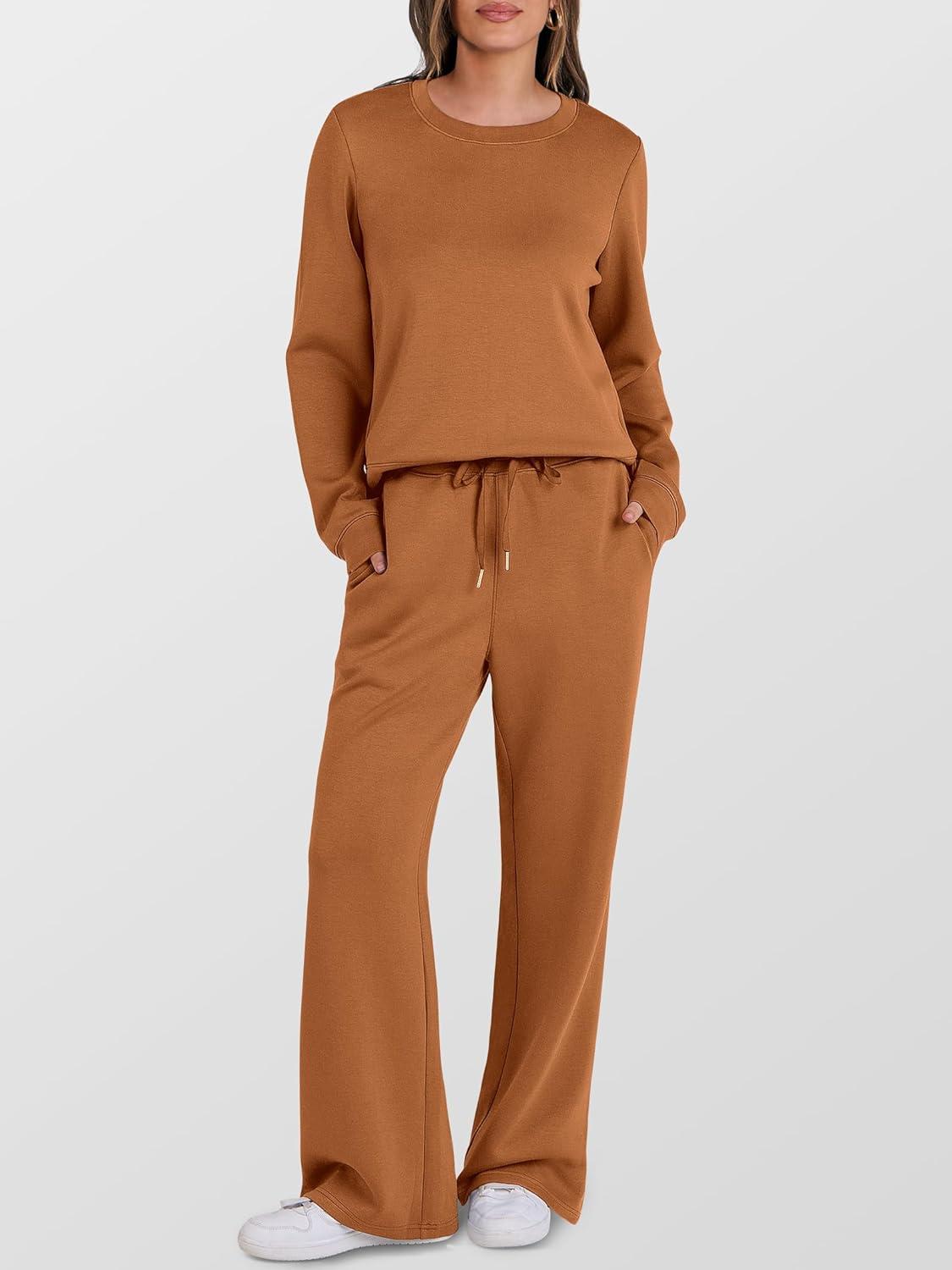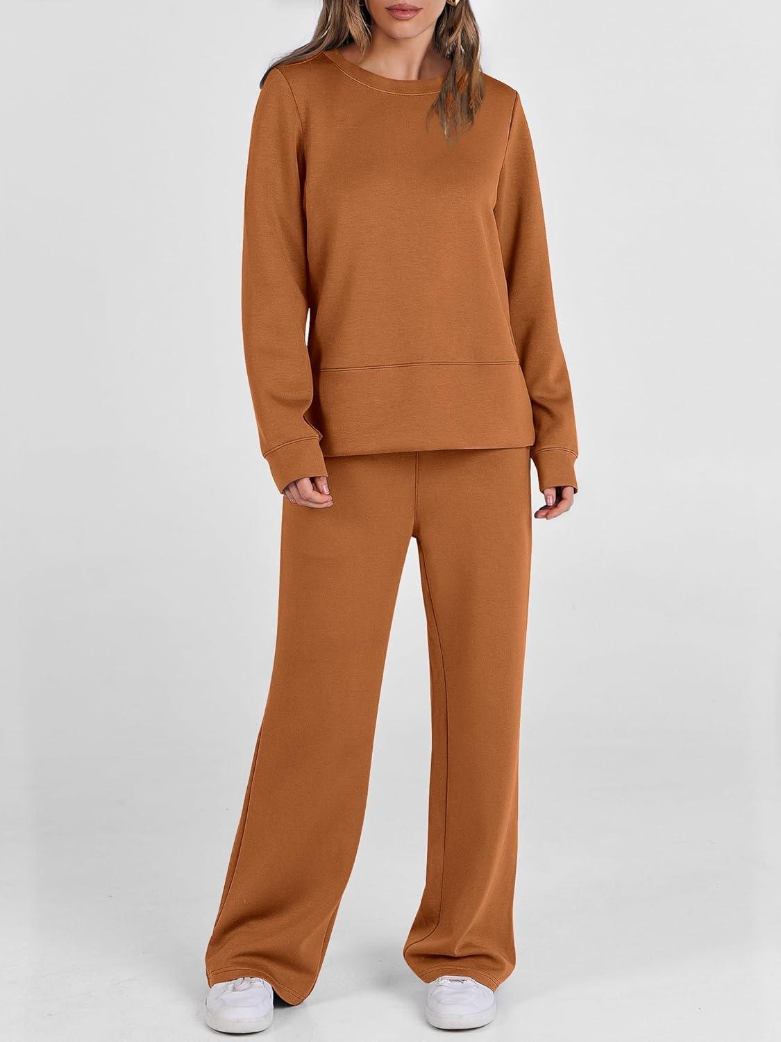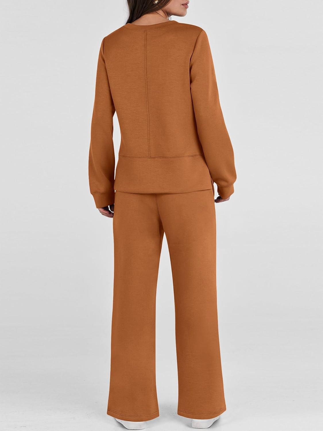 ANRABESS Women’s 2 Piece Lounge Sets Casual Travel Outfits Wide Leg Tracksuit Sweatsuits Matching Set 2025 Fall Clothes(Caramel)