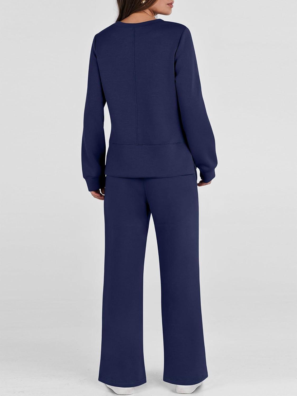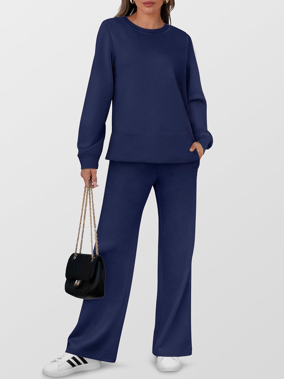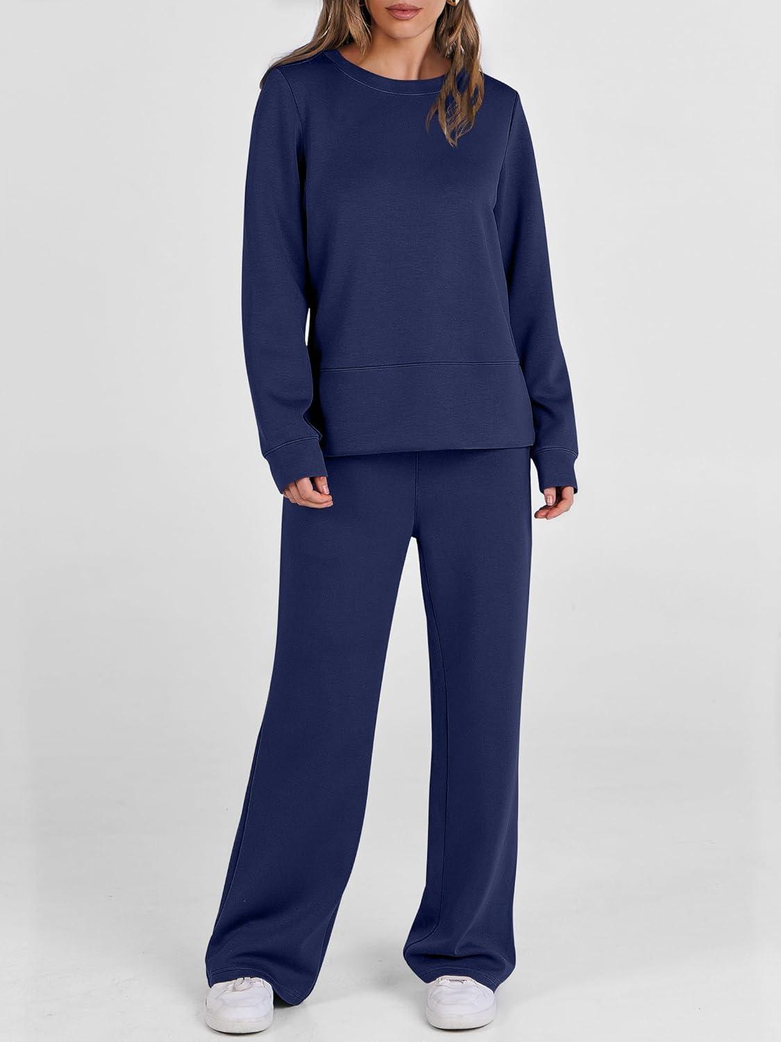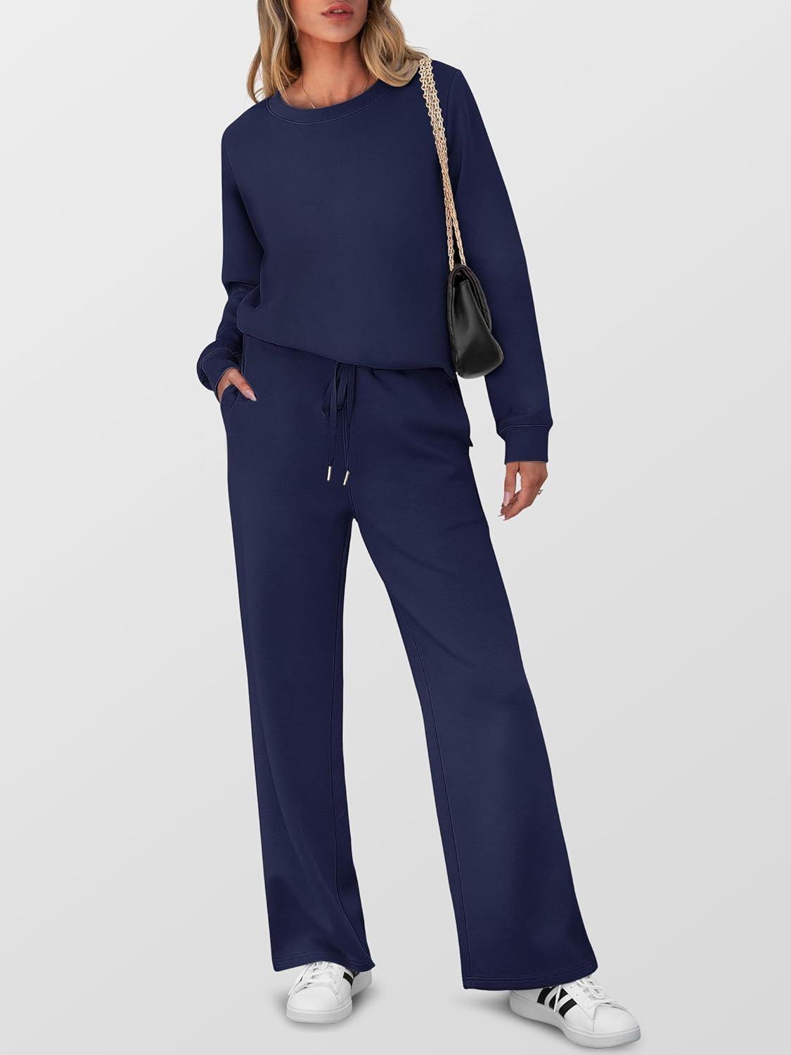 ANRABESS Women’s 2 Piece Lounge Sets Casual Travel Outfits Wide Leg Tracksuit Sweatsuits Matching Set 2025 Fall Clothes(Navy Blue)
