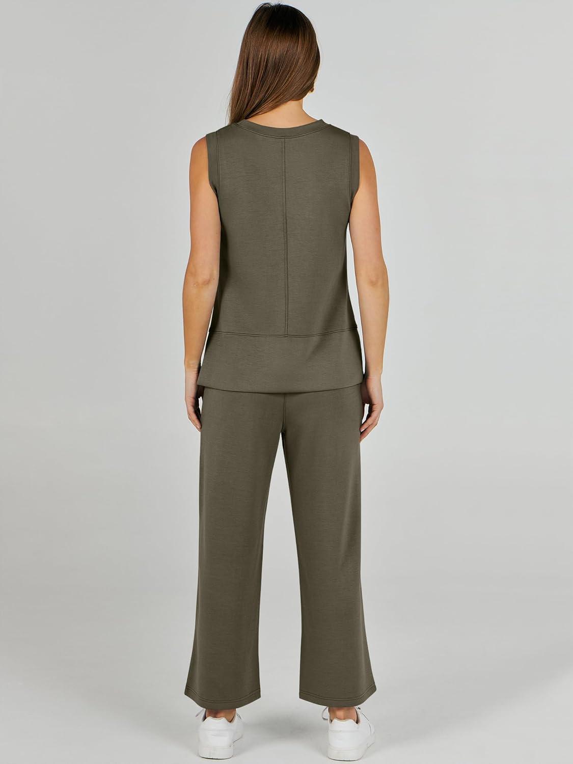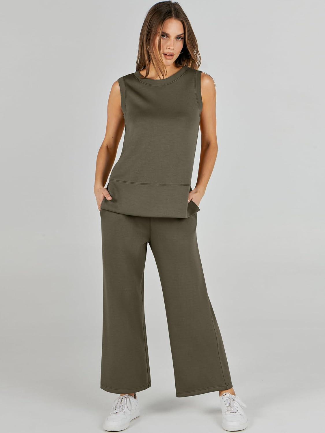 ANRABESS Women’s 2 Piece Outfits 2025 Summer Beach Vacation Clothes Fall Travel Casual Lounge Matching Sets Sweatsuits(Army Green)