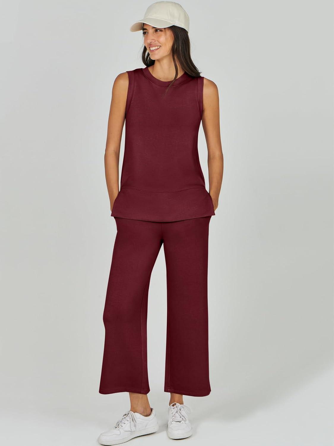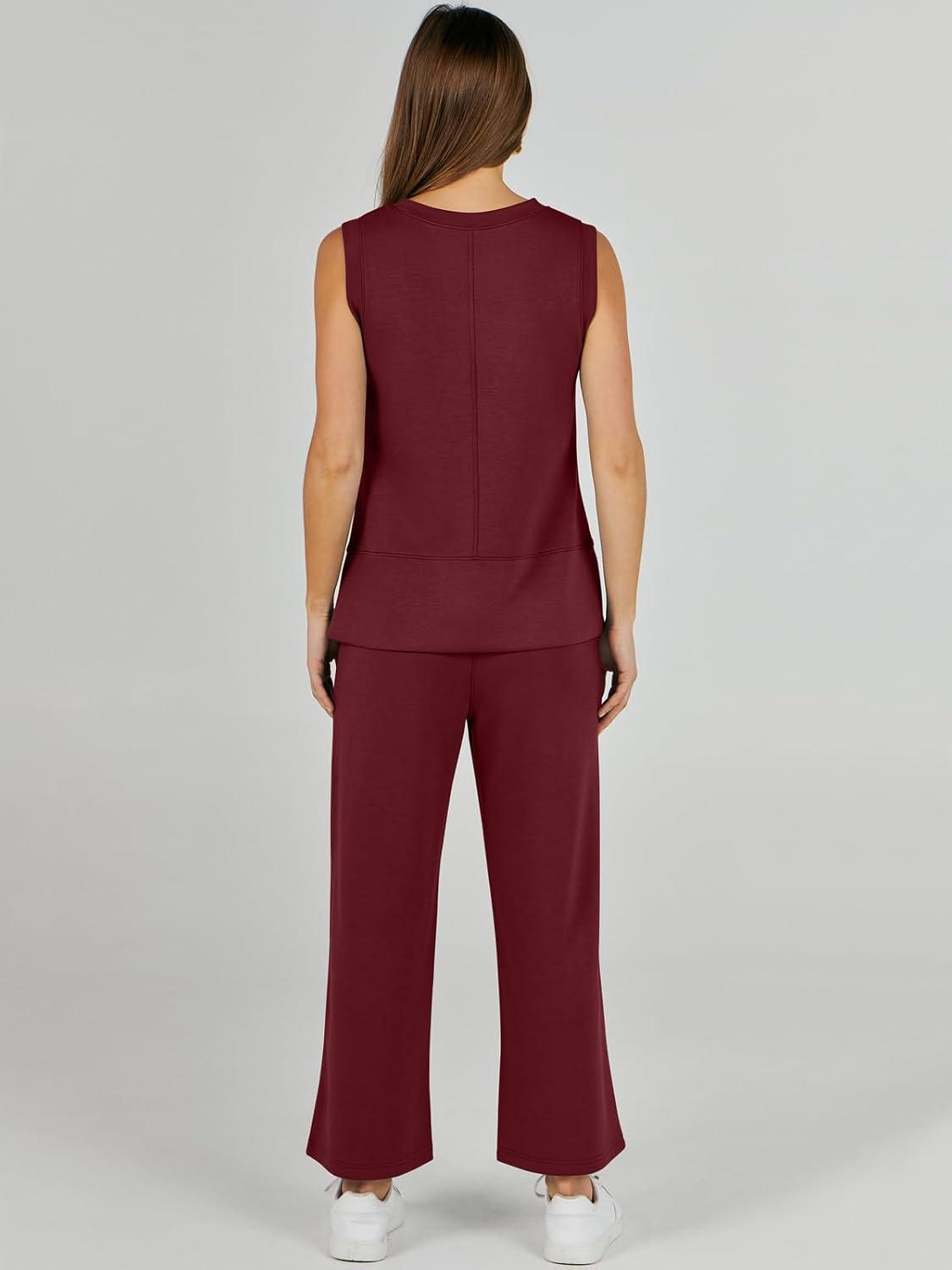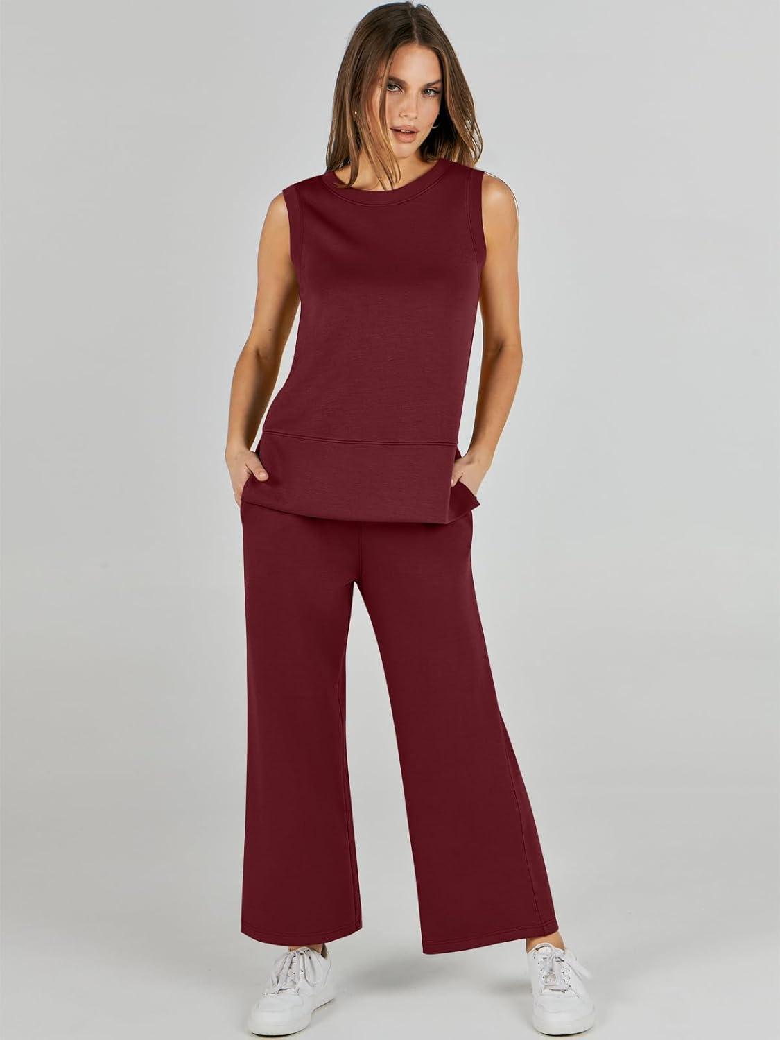 ANRABESS Women’s 2 Piece Outfits 2025 Summer Beach Vacation Clothes Fall Travel Casual Lounge Matching Sets Sweatsuits(Wine Red)