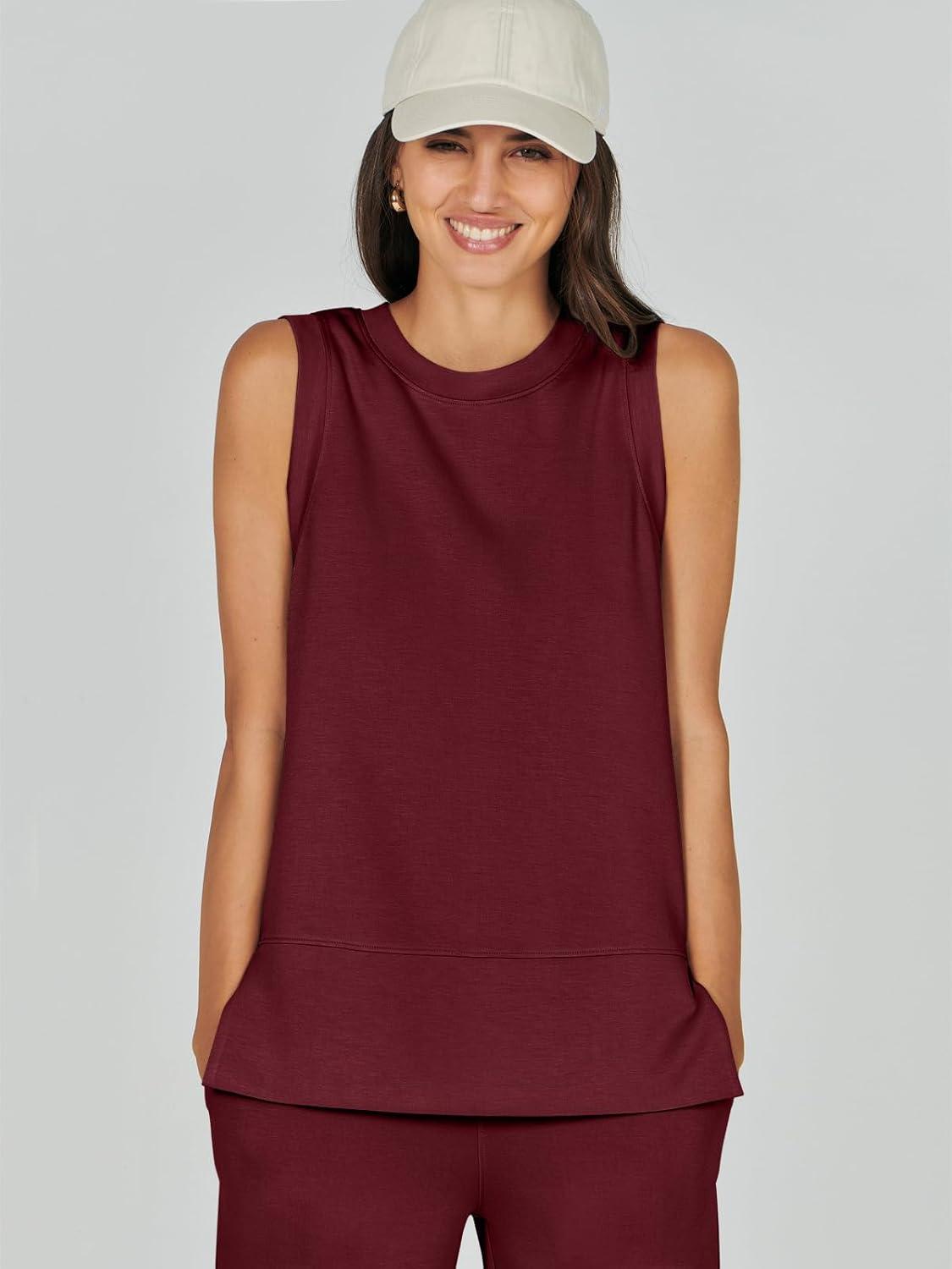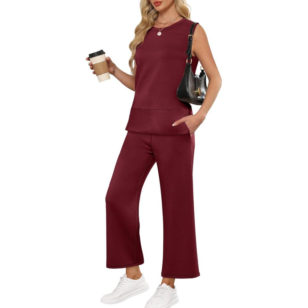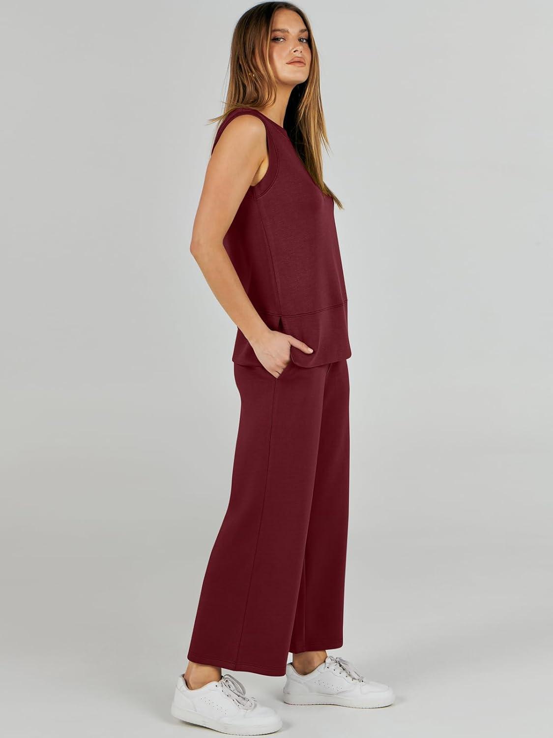 ANRABESS Women’s 2 Piece Outfits 2025 Summer Beach Vacation Clothes Fall Travel Casual Lounge Matching Sets Sweatsuits(Wine Red)