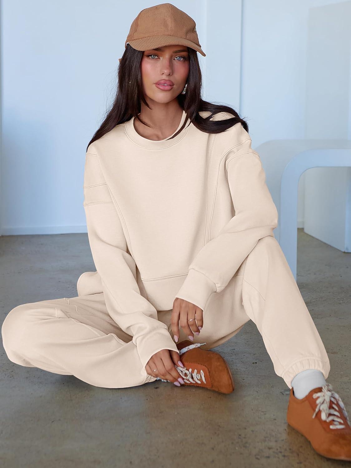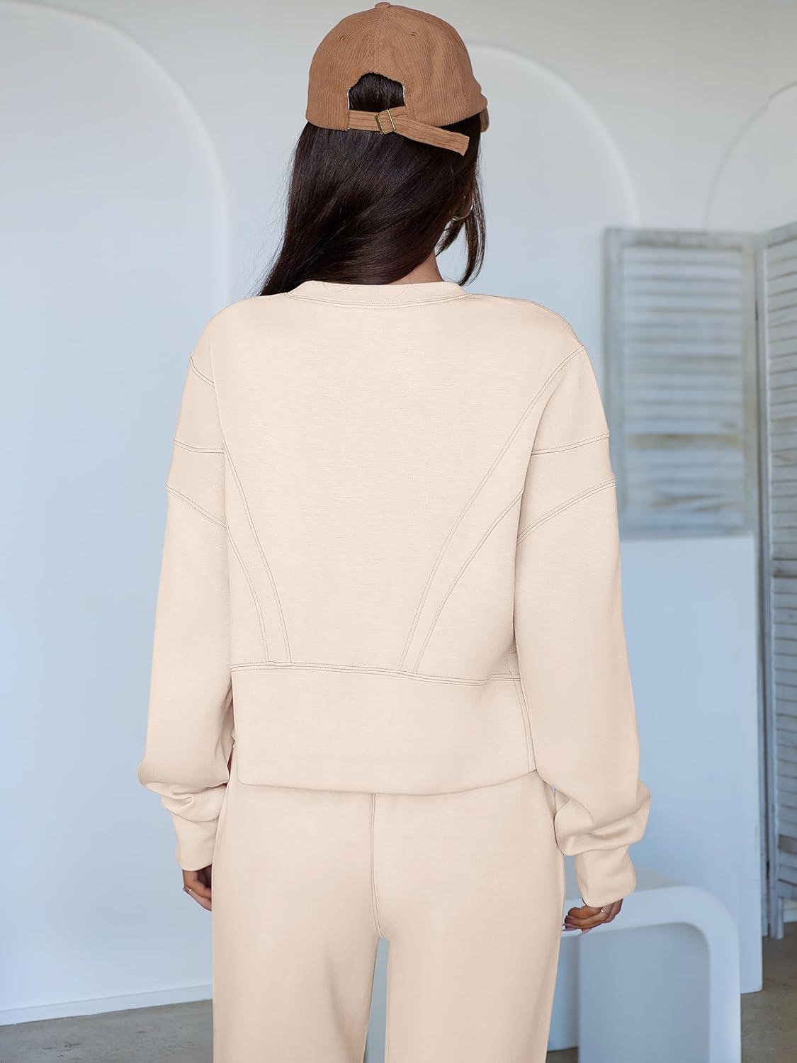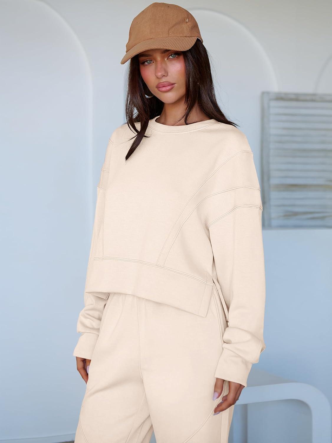 ANRABESS Womens 2 Piece Outfits Lounge Sets Cropped Sweatshirt Joggers Fashion Sweatsuit Sweat Set 2025 Winter Travel Outfits(Apricot)