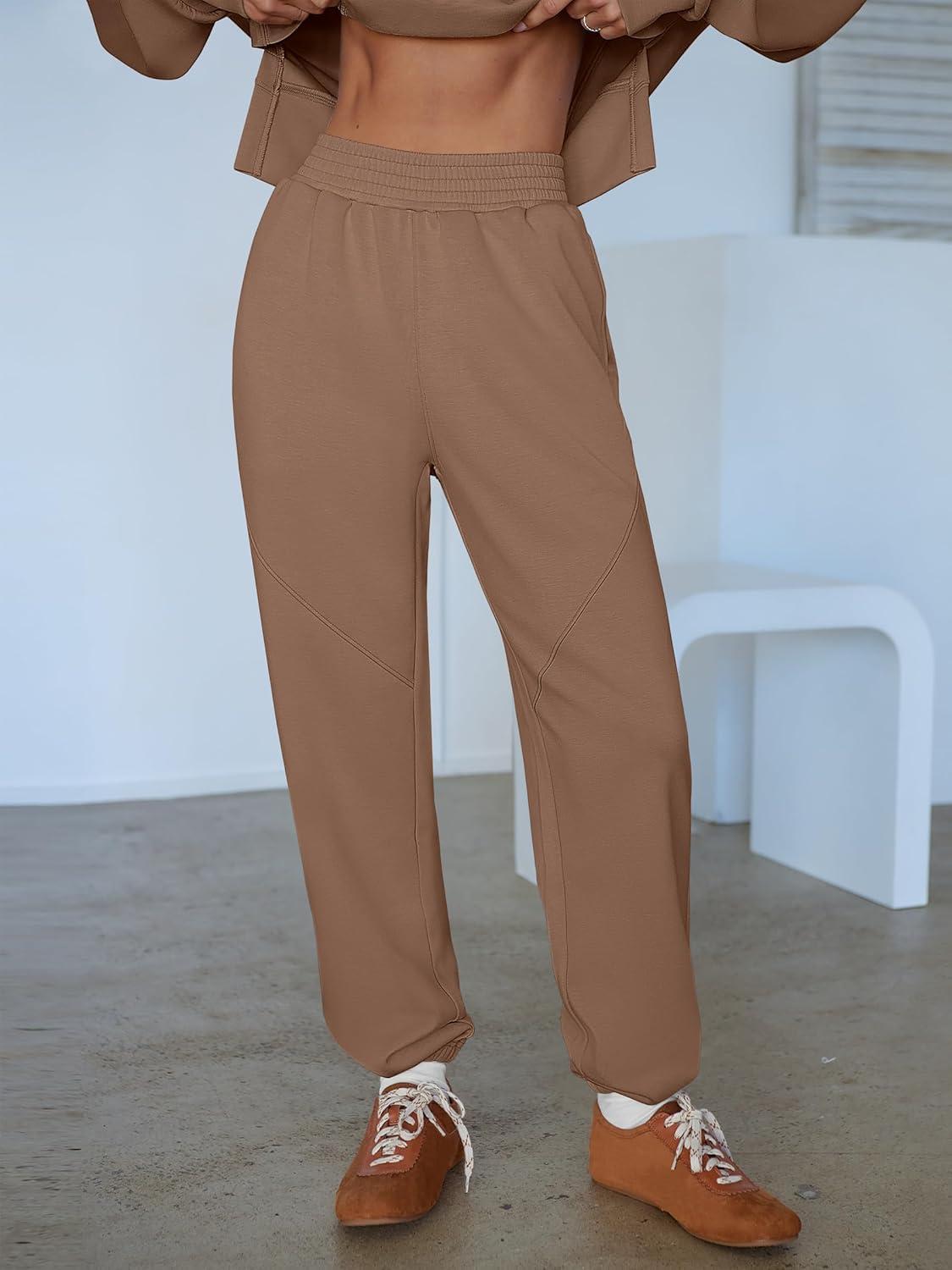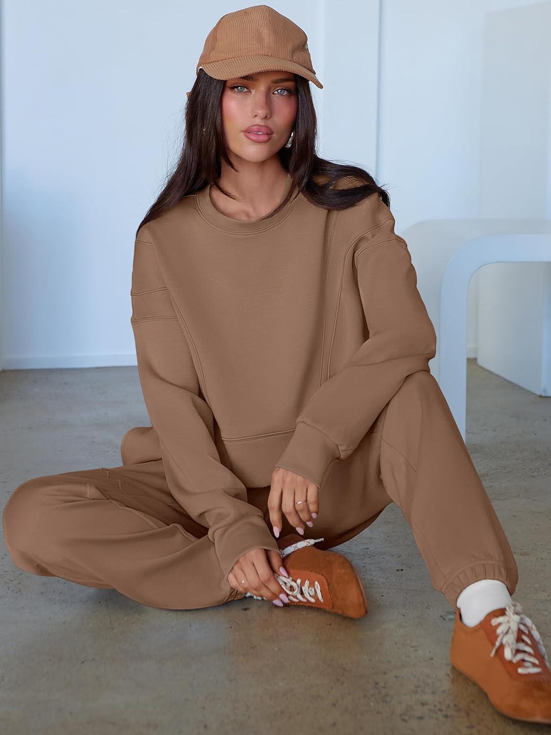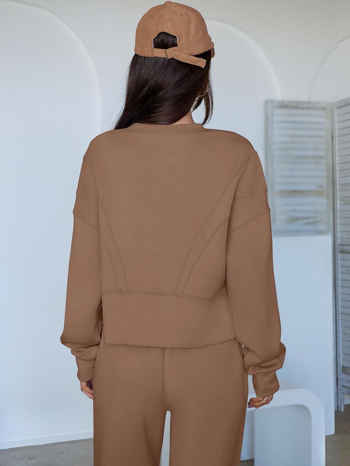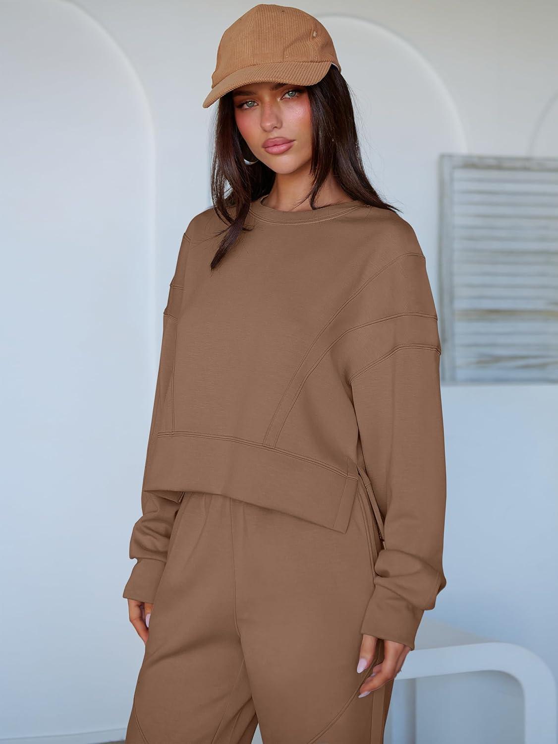 ANRABESS Womens 2 Piece Outfits Lounge Sets Cropped Sweatshirt Joggers Fashion Sweatsuit Sweat Set 2025 Winter Travel Outfits(Camel)