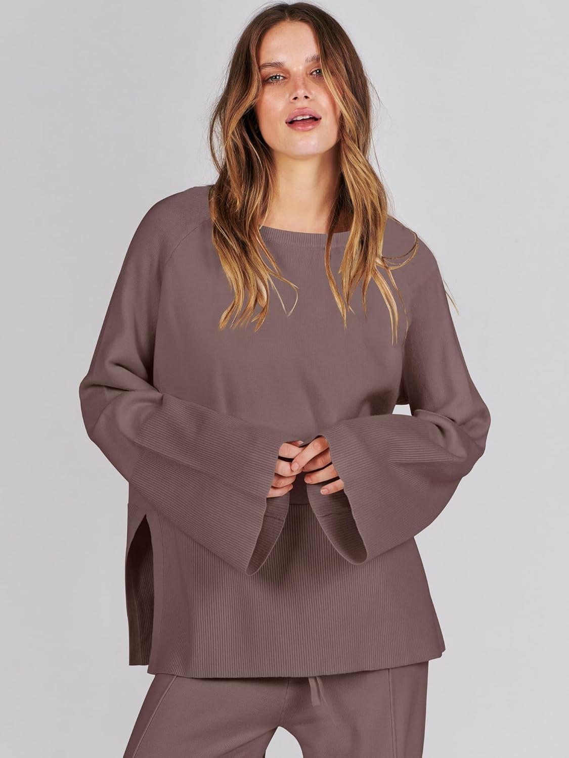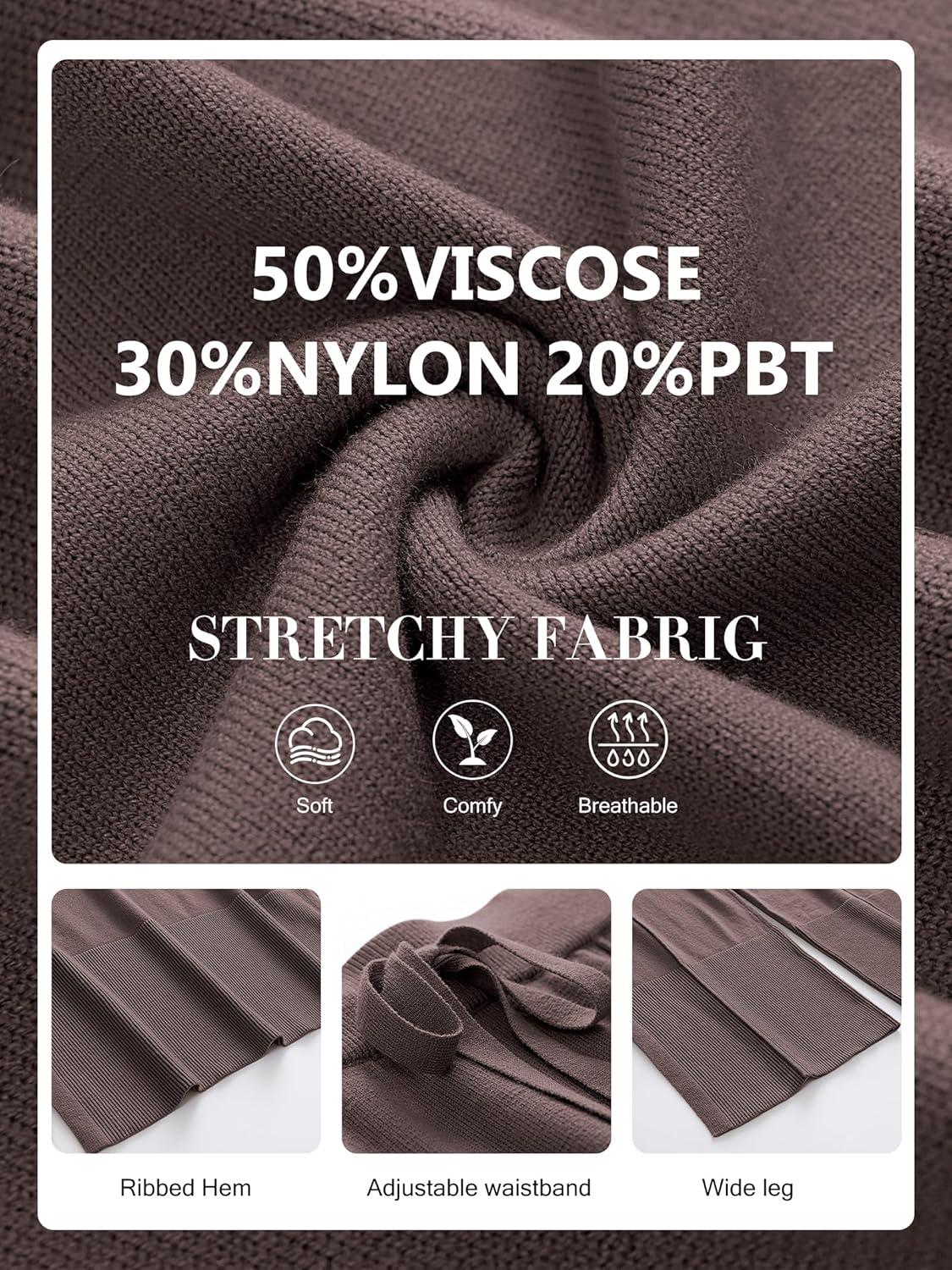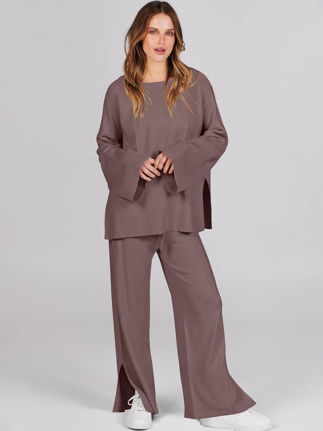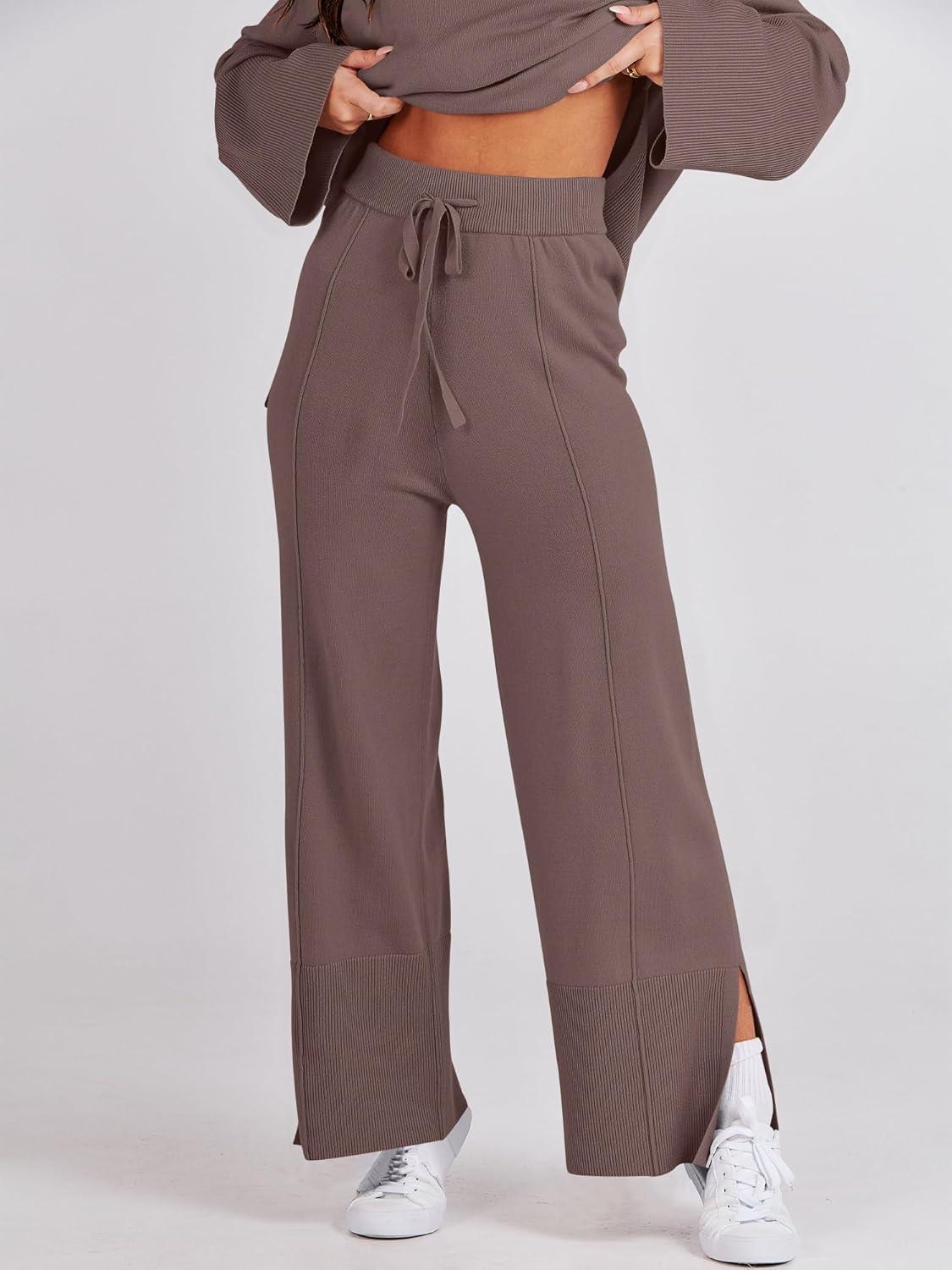ANRABESS Womens 2 Piece Outfits Oversized Knit Sweater Set Wide Leg Pant Cozy Lounge Matching Pajama Sets 2025 Trendy Clothes(Coffee)