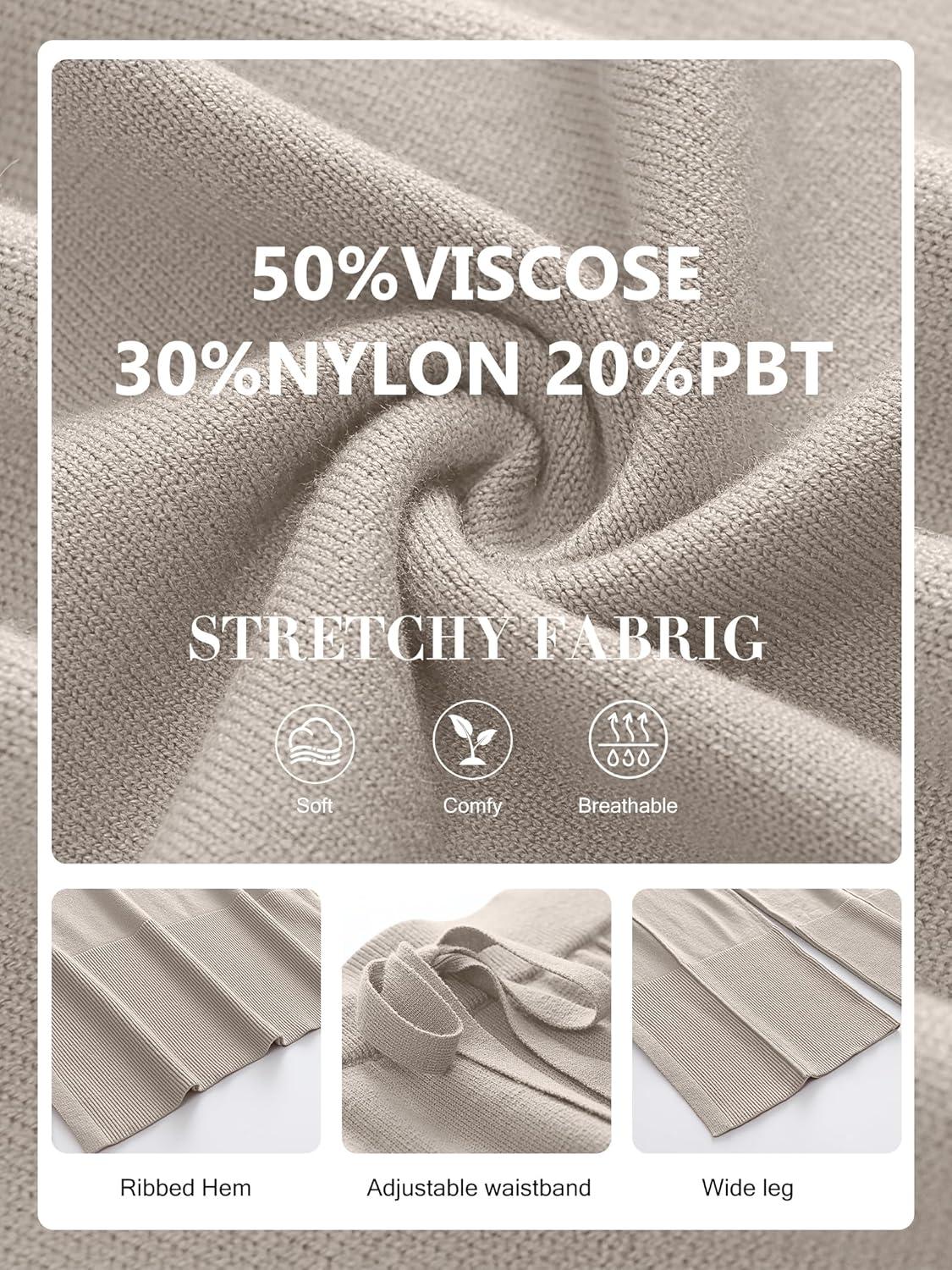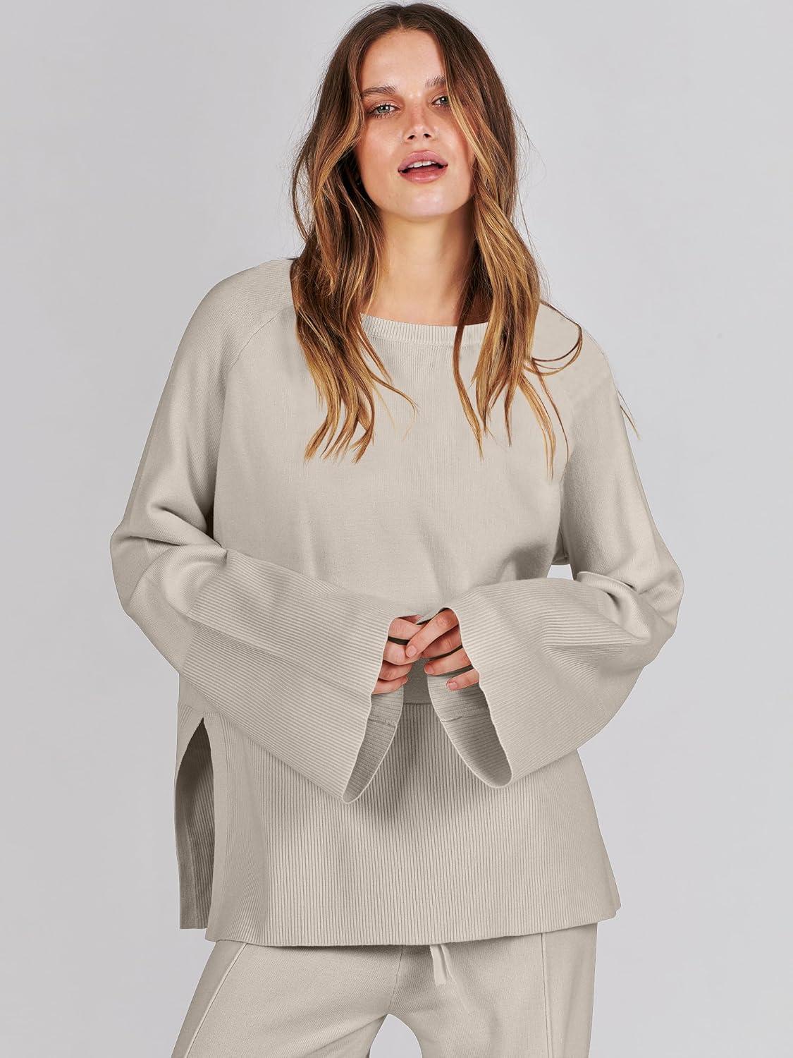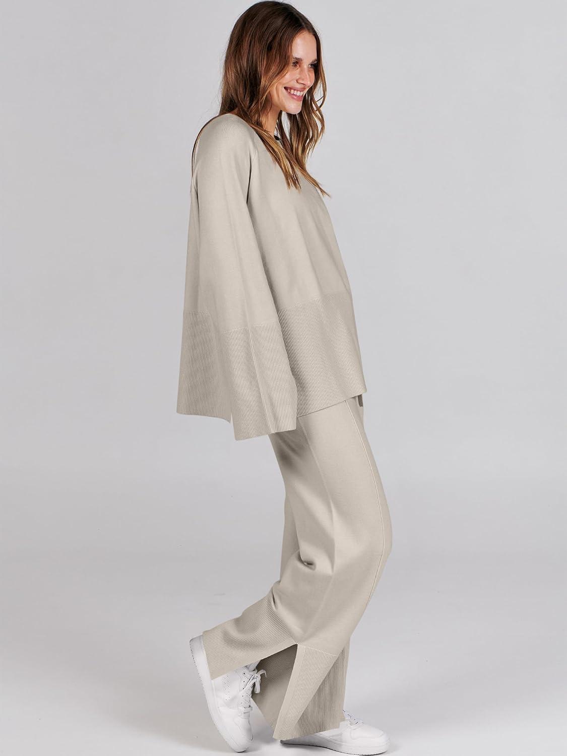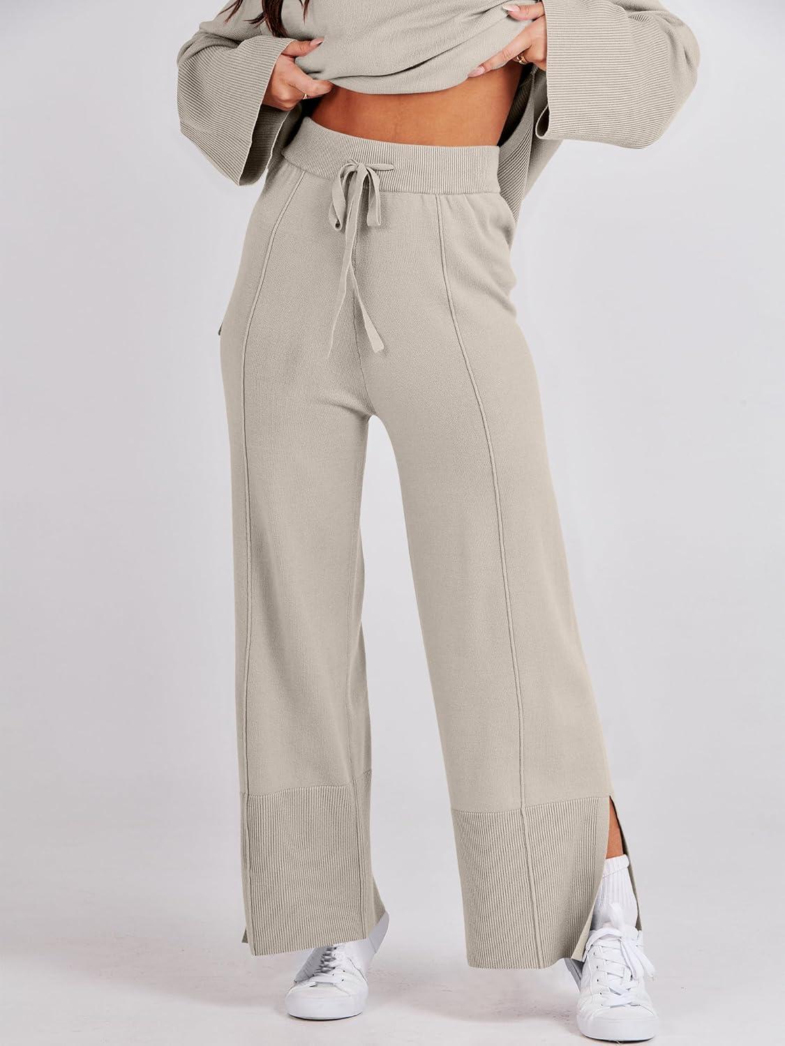 ANRABESS Womens 2 Piece Outfits Oversized Knit Sweater Set Wide Leg Pant Cozy Lounge Matching Pajama Sets 2025 Trendy Clothes(Grey Apricot)