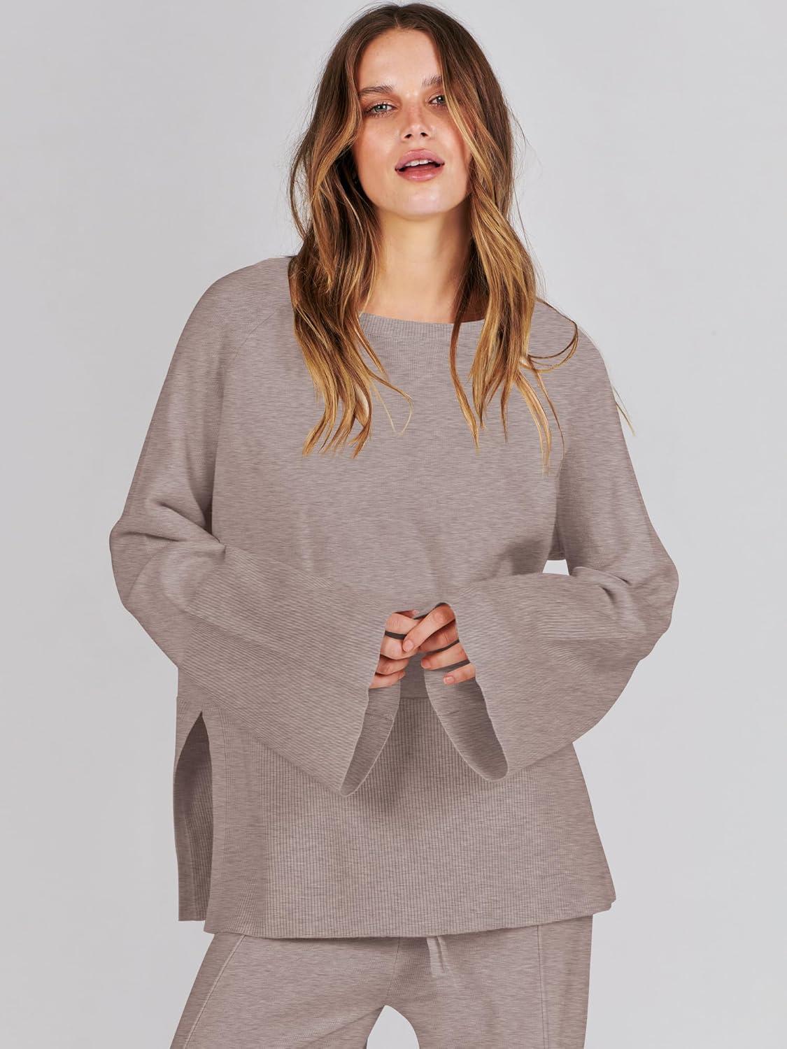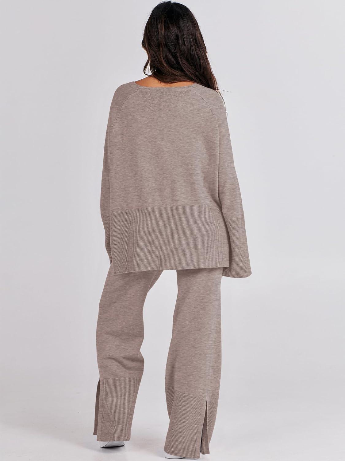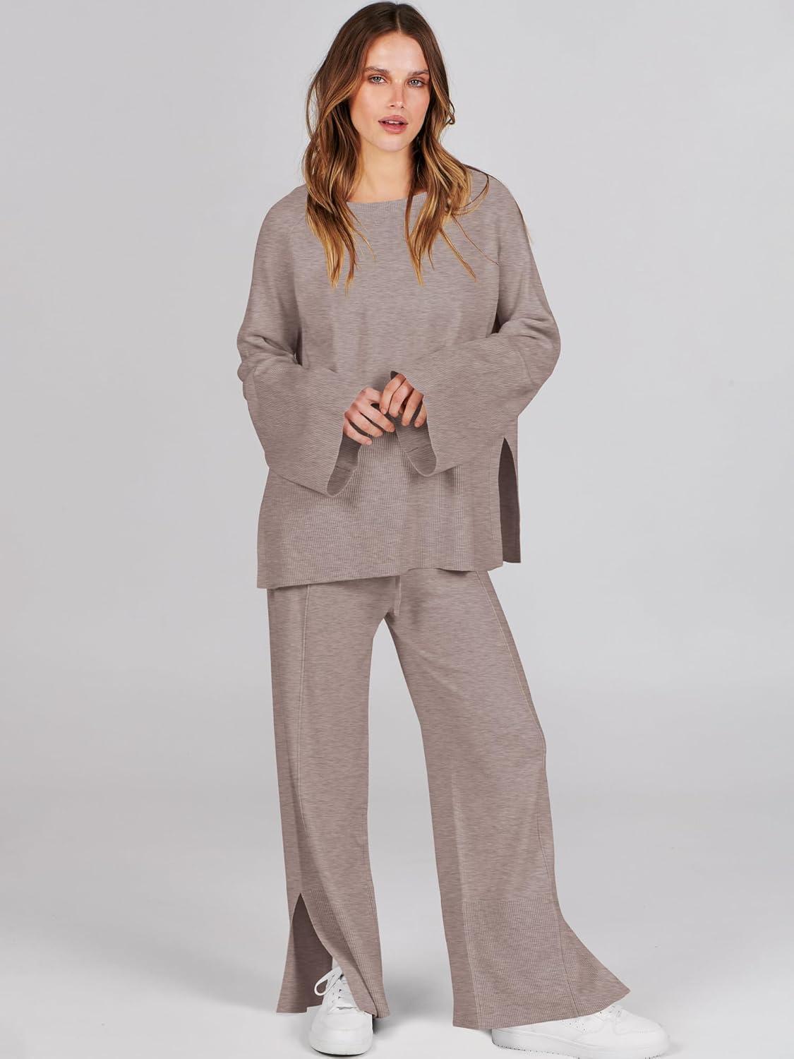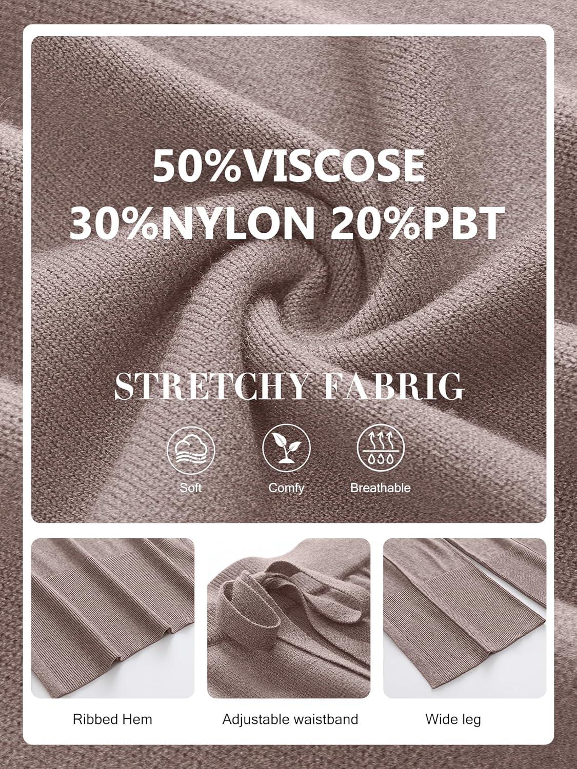 ANRABESS Womens 2 Piece Outfits Oversized Knit Sweater Set Wide Leg Pant Cozy Lounge Matching Pajama Sets 2025 Trendy Clothes(Red Apricot)