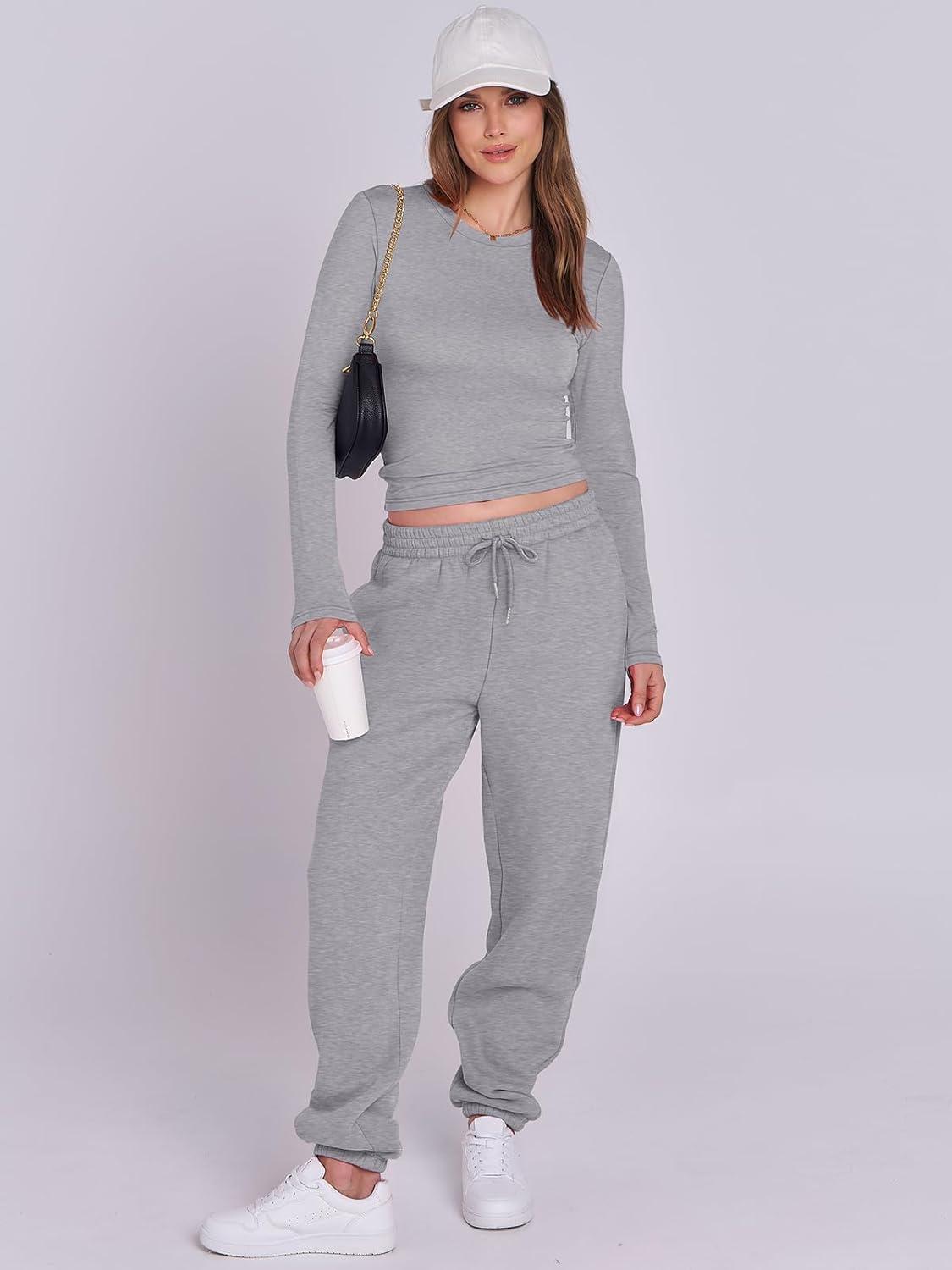 ANRABESS Womens 2 Piece Sweatsuits Long Sleeve Tight Shirt Tops Joggers Fleece Sweatpants Sets 2025 Fall Sweat Lounge Outfits(Grey)