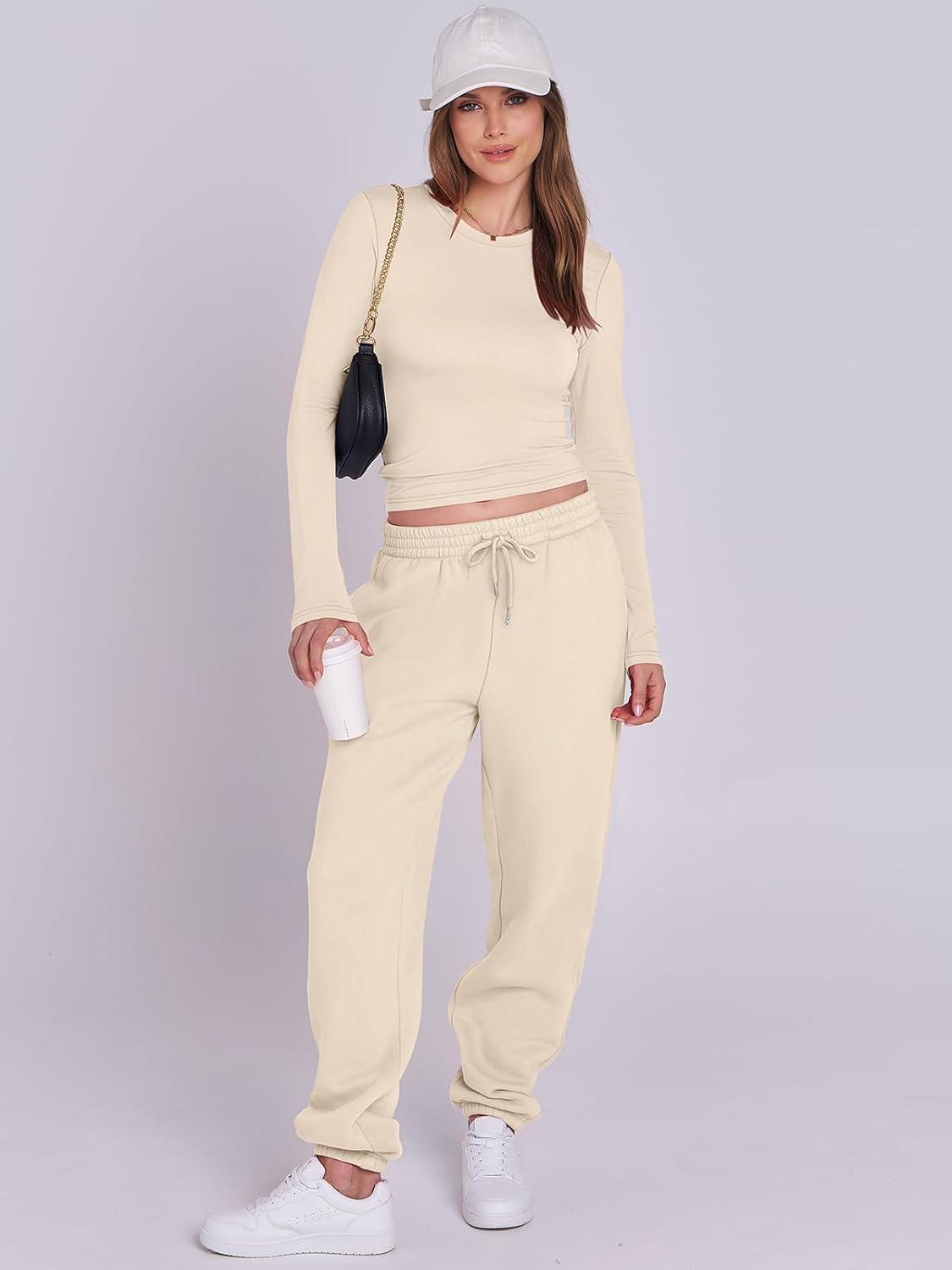 ANRABESS Womens 2 Piece Sweatsuits Long Sleeve Tight Shirt Tops Joggers Fleece Sweatpants Sets 2025 Fall Sweat Lounge Outfits(Yellow Apricot)