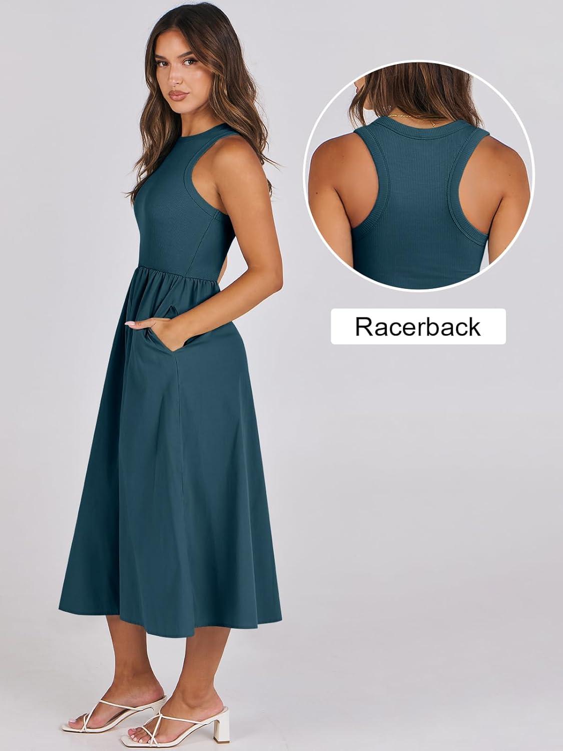 ANRABESS Womens 2025 Summer Casual Maxi Dress A line Tiered Flowy Short Sleeve Crewneck T Shirt Beach Travel Long Dresses(Cyan)