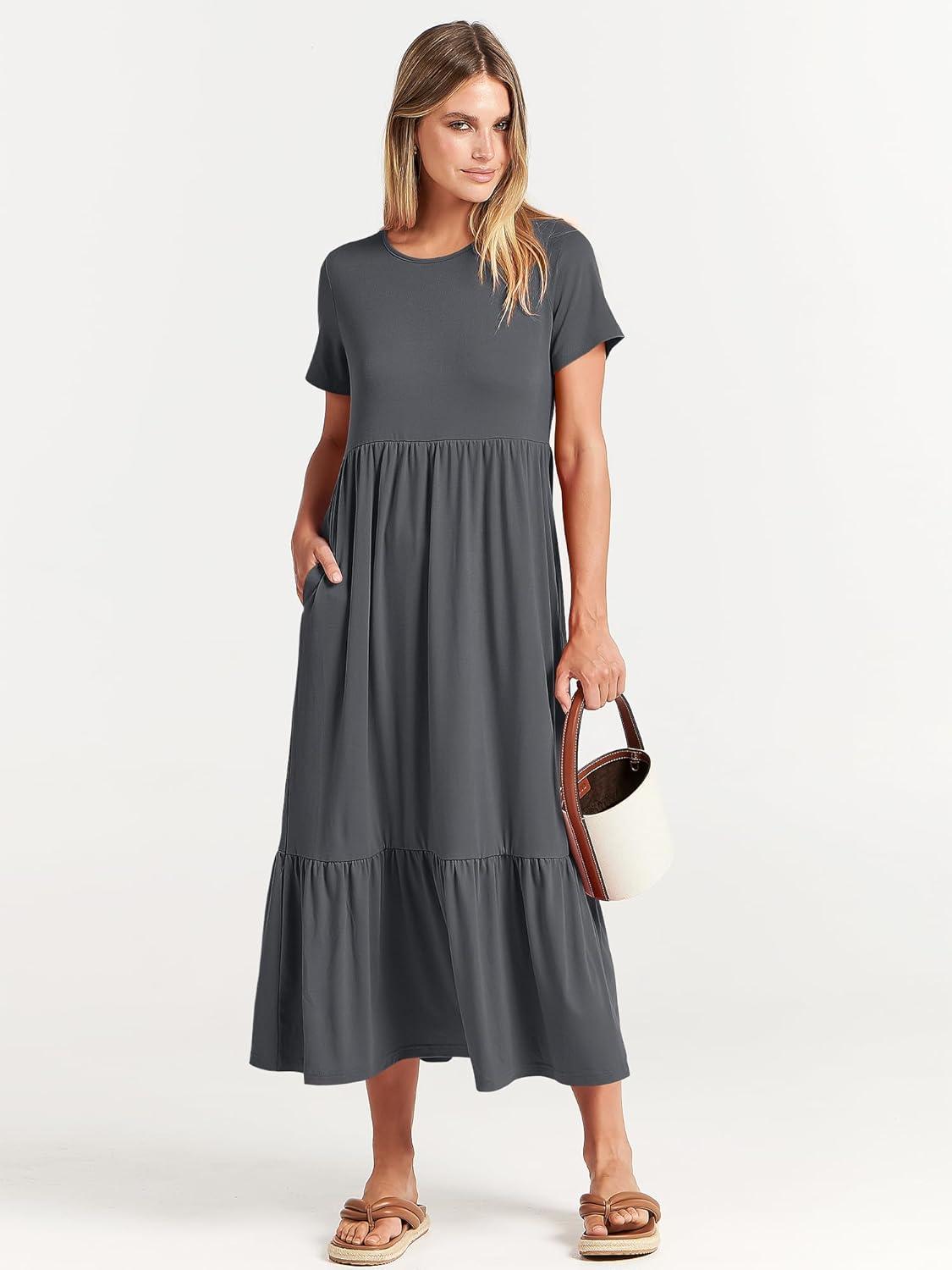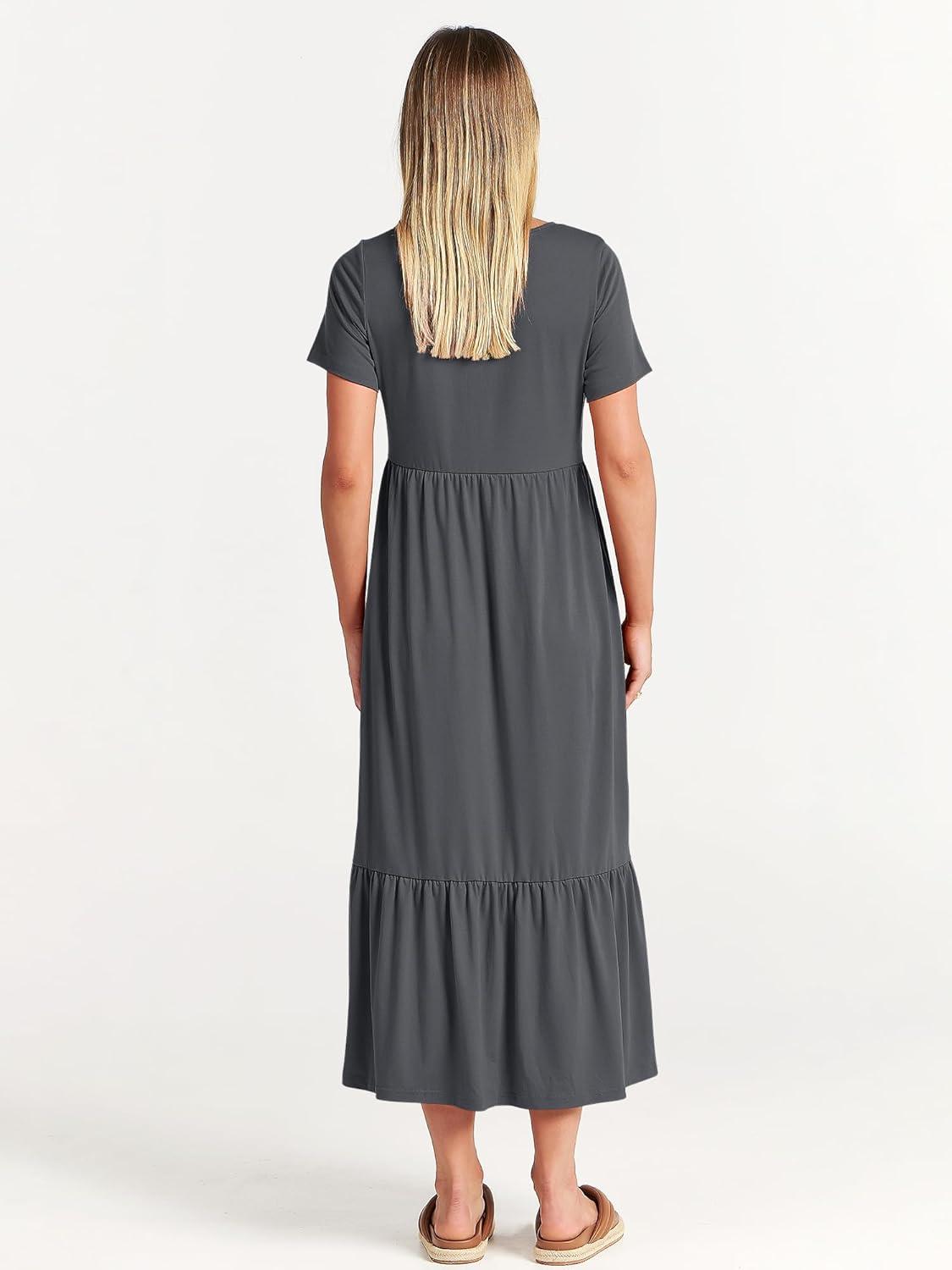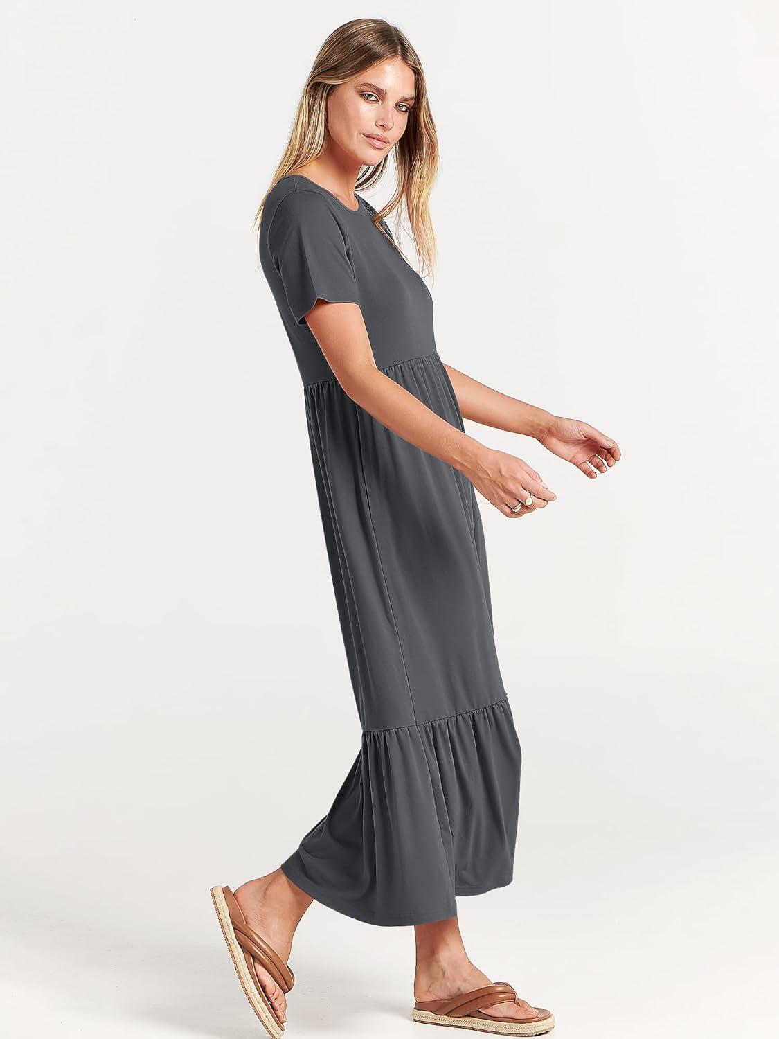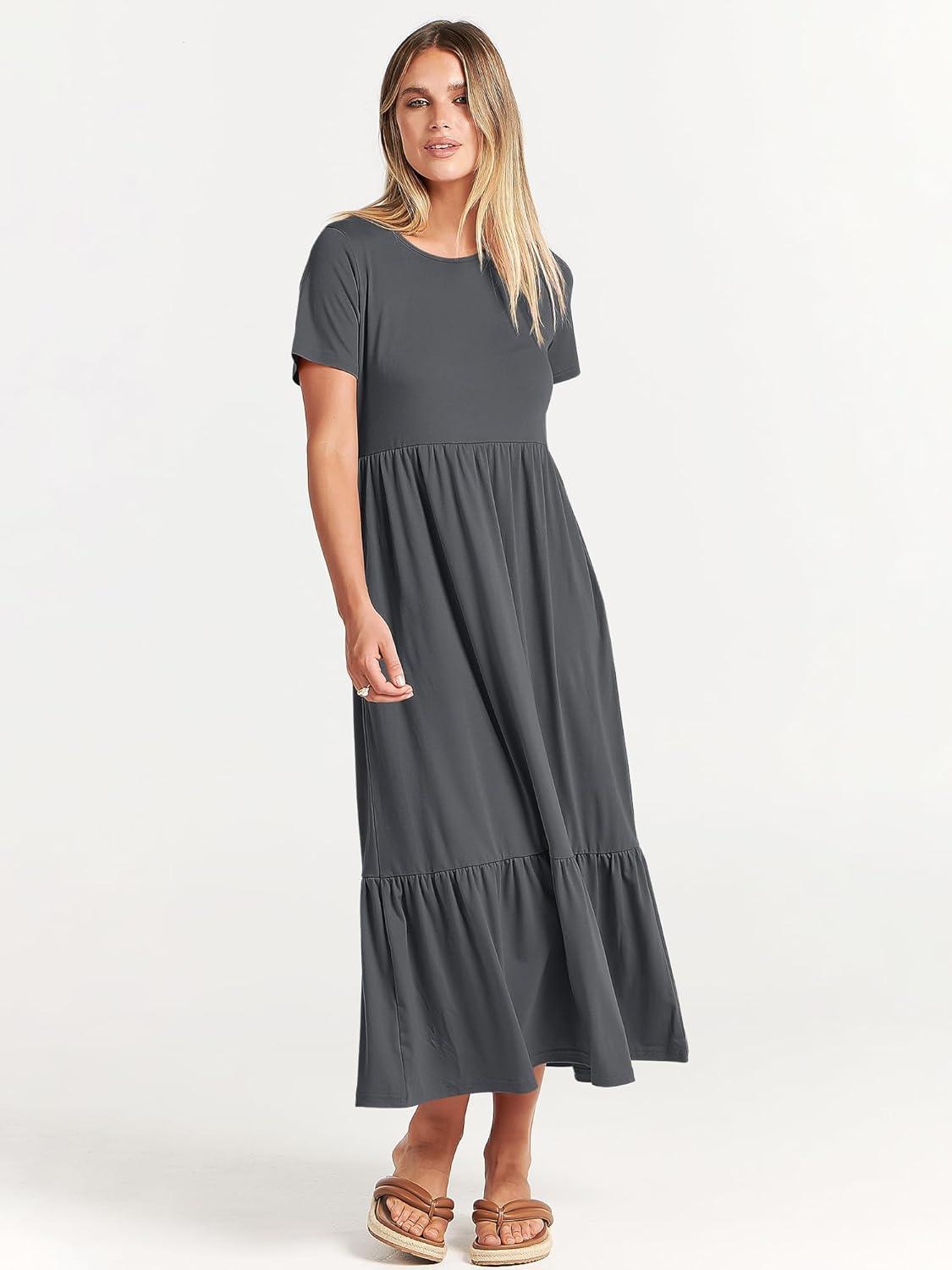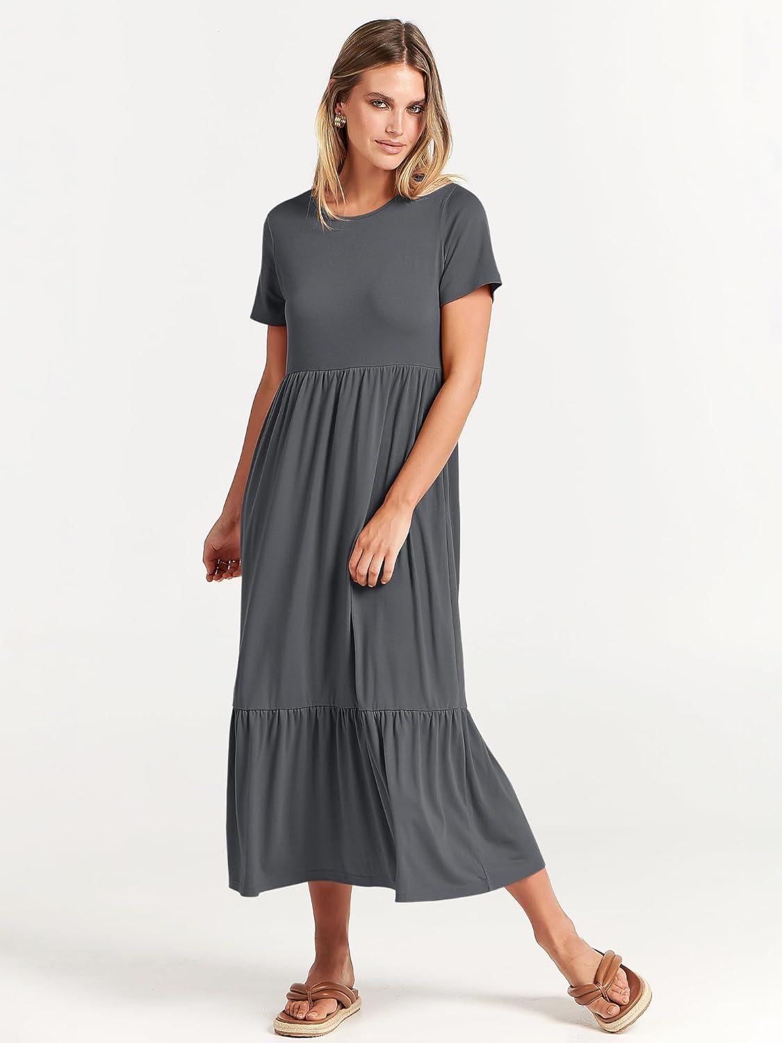 ANRABESS Womens 2025 Summer Casual Maxi Dress A line Tiered Flowy Short Sleeve Crewneck T Shirt Beach Travel Long Dresses(Gray Blue)