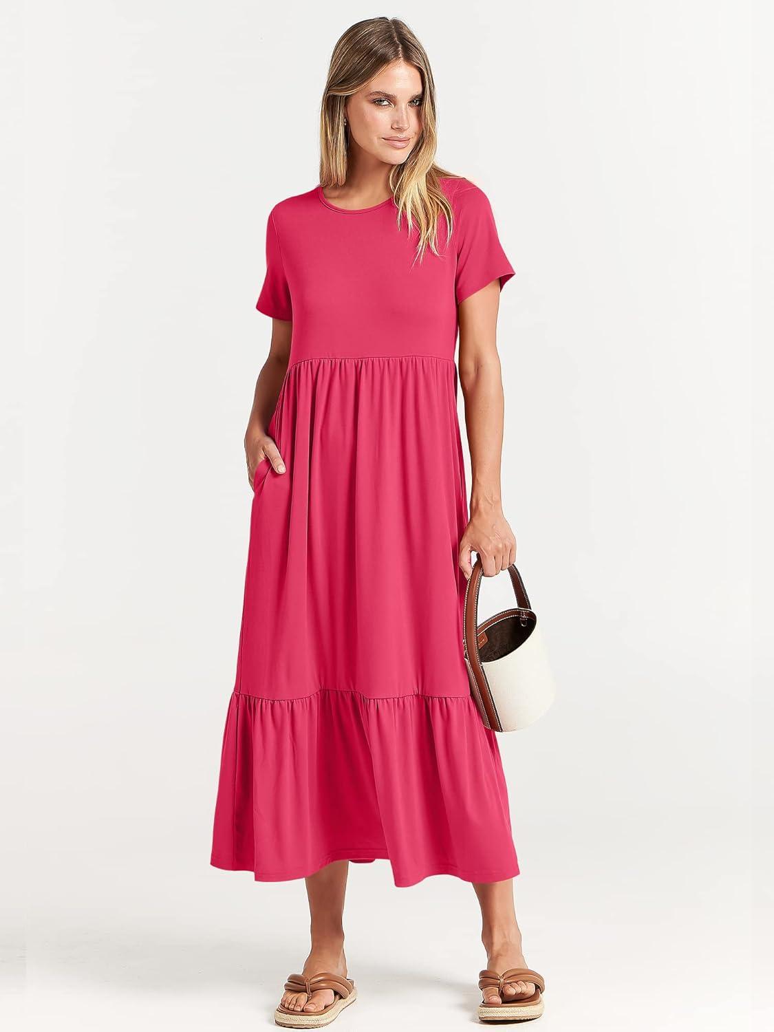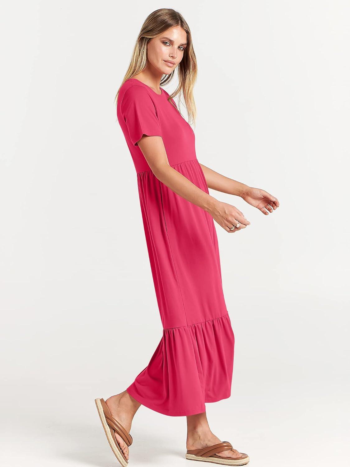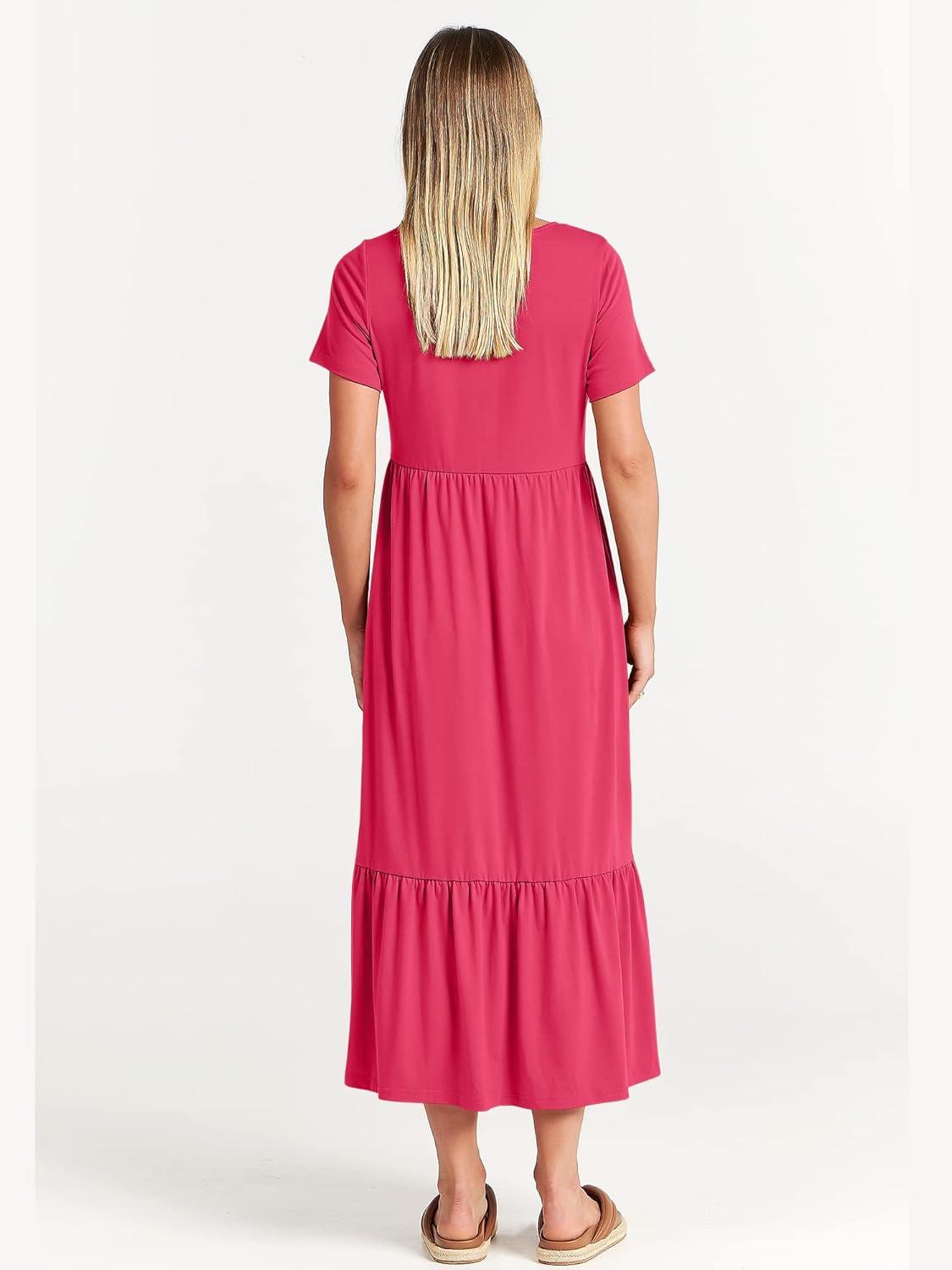 ANRABESS Womens 2025 Summer Casual Maxi Dress A line Tiered Flowy Short Sleeve Crewneck T Shirt Beach Travel Long Dresses(Peach)