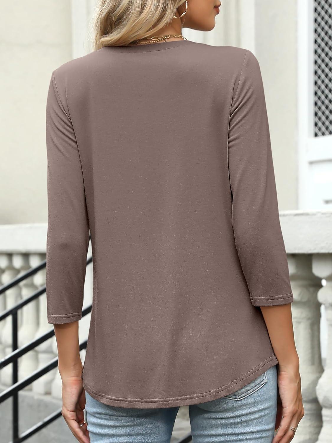 ANRABESS Womens 3/4 Length Sleeve Top V Neck Summer T-Shirts Basic Tee 2025 Fall Casual Loose Fit Tunic Shirts Work Blouse(Brown)
