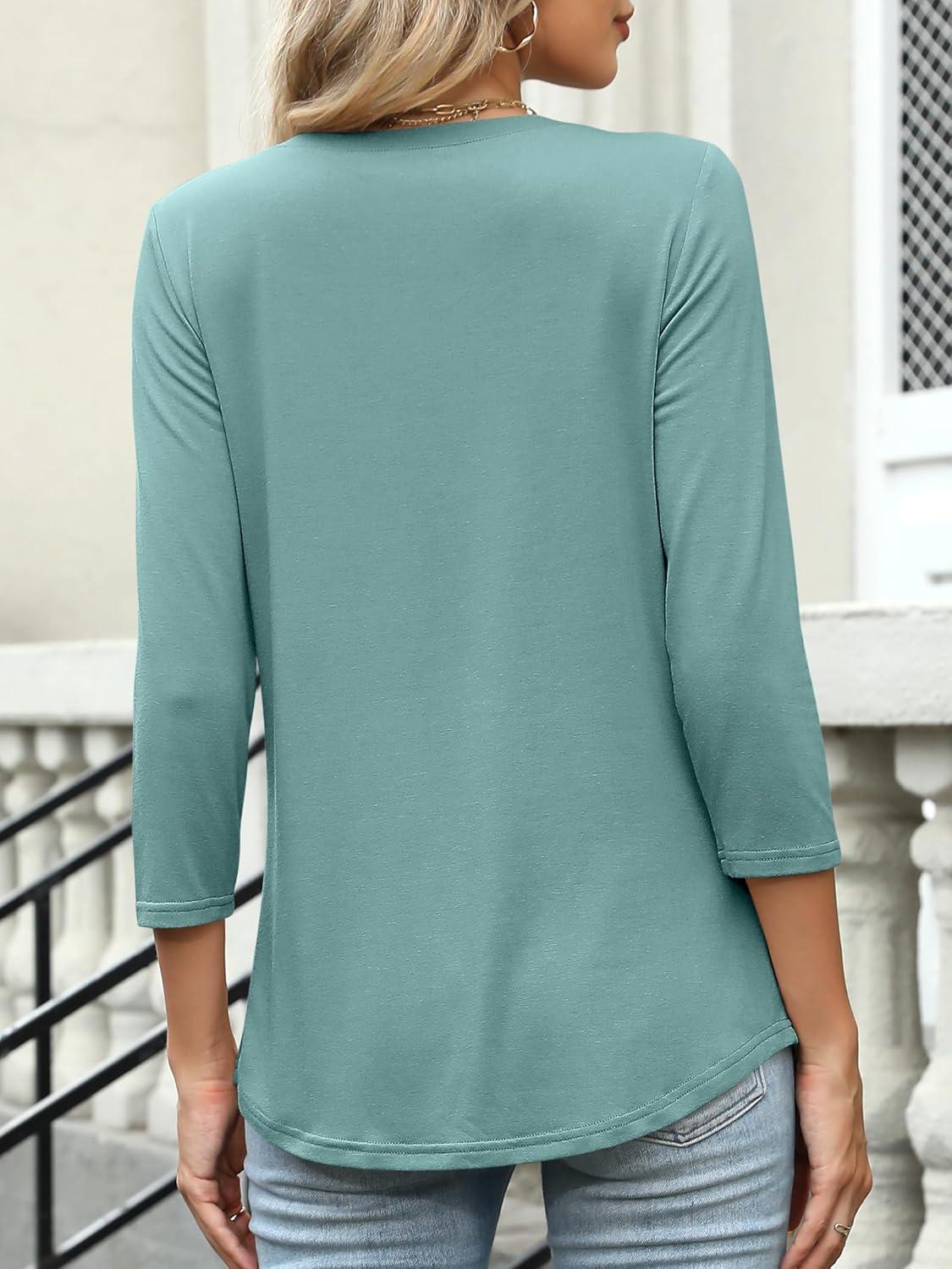 ANRABESS Womens 3/4 Length Sleeve Top V Neck Summer T-Shirts Basic Tee 2025 Fall Casual Loose Fit Tunic Shirts Work Blouse(Gray Green)