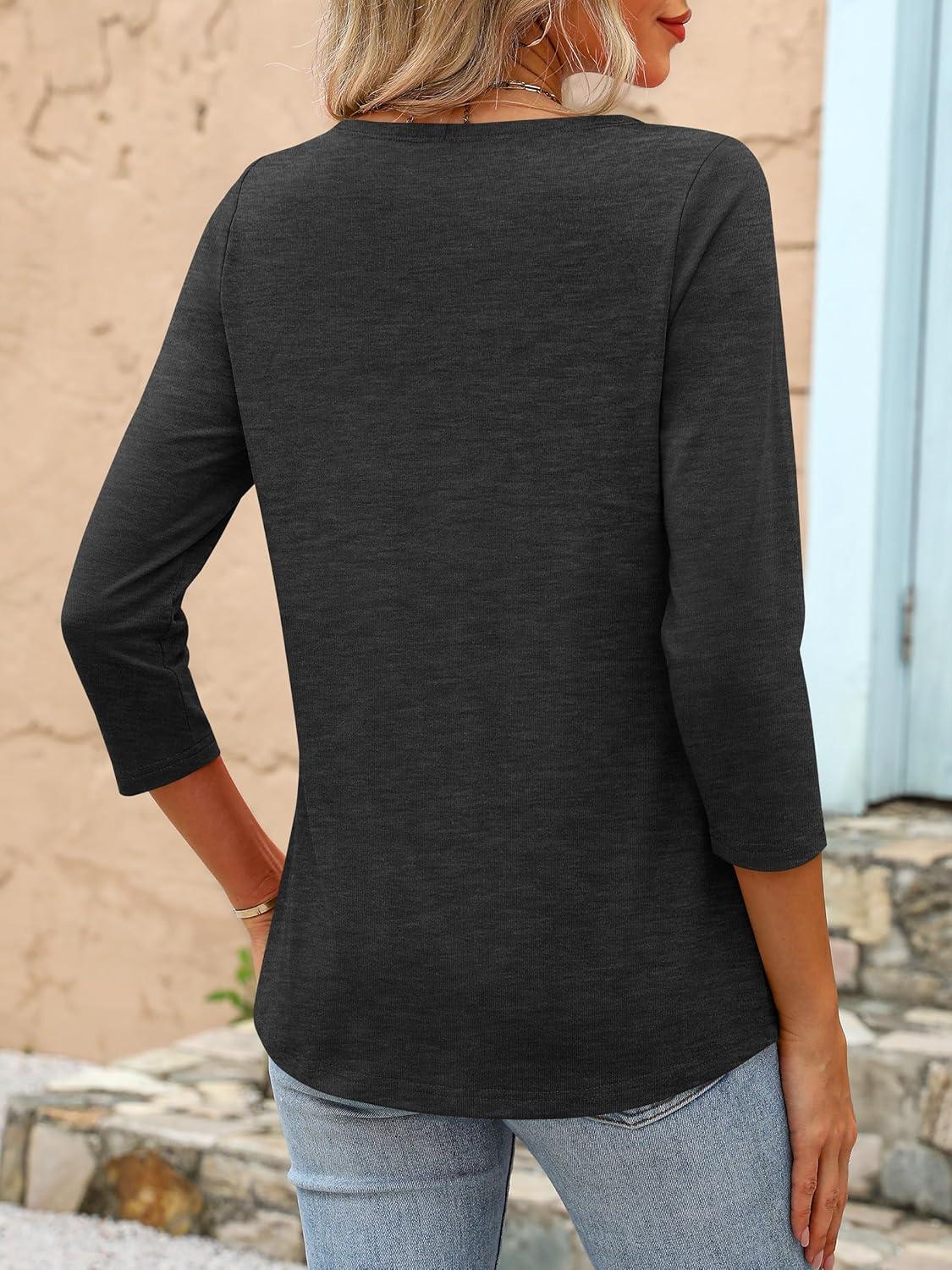 ANRABESS Womens 3/4 Length Sleeve Tops 2025 Summer Tee T-Shirts Boat Neck Tunic Travel Basic Blouses Fall Fashion Clothes(Black)