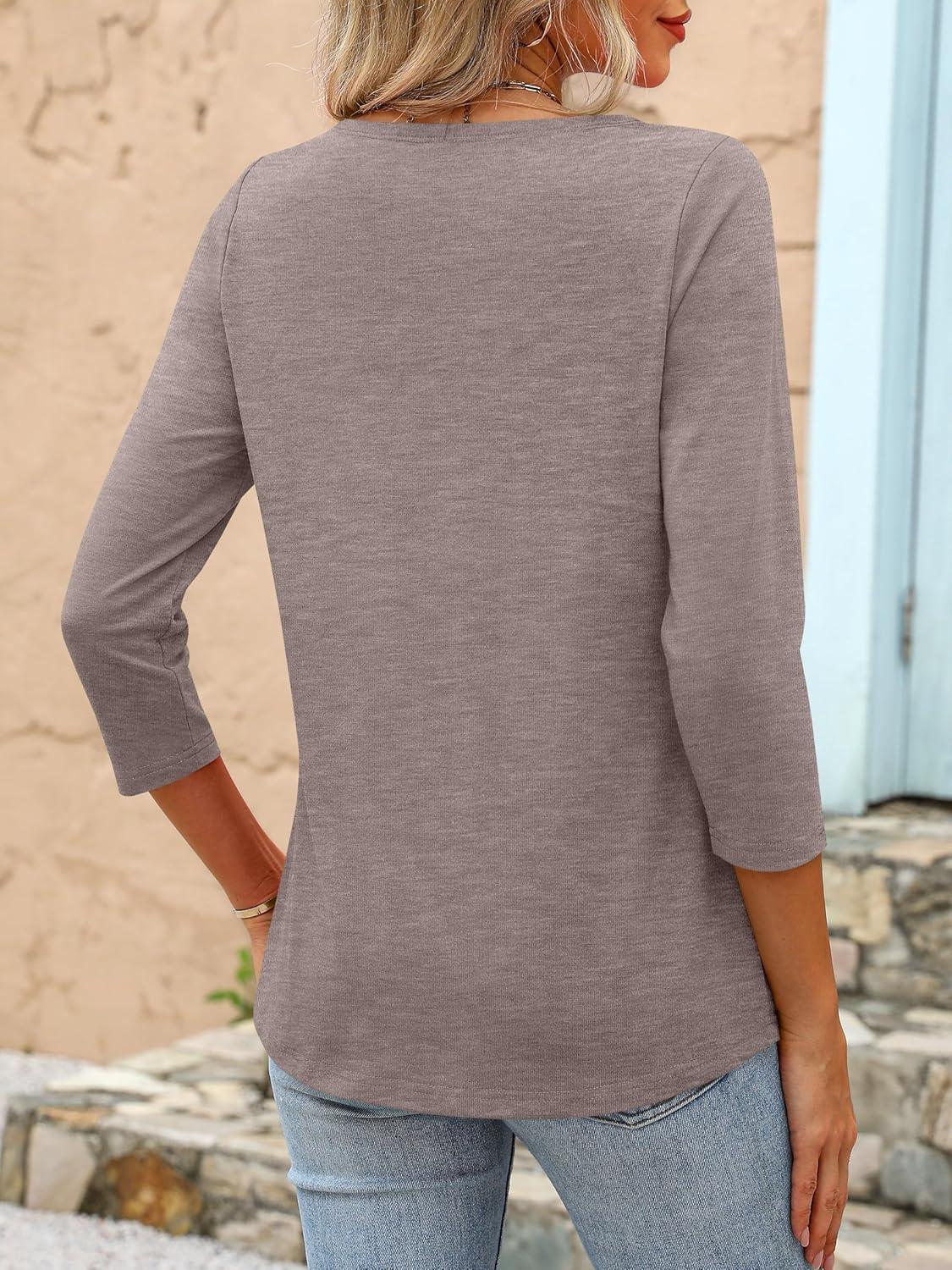ANRABESS Womens 3/4 Length Sleeve Tops 2025 Summer Tee T-Shirts Boat Neck Tunic Travel Basic Blouses Fall Fashion Clothes(Light Coffee)