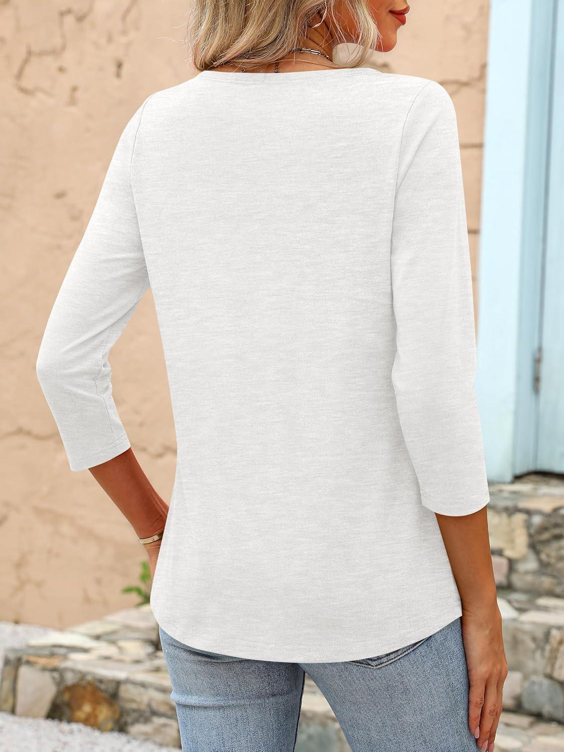ANRABESS Womens 3/4 Length Sleeve Tops 2025 Summer Tee T-Shirts Boat Neck Tunic Travel Basic Blouses Fall Fashion Clothes(White)