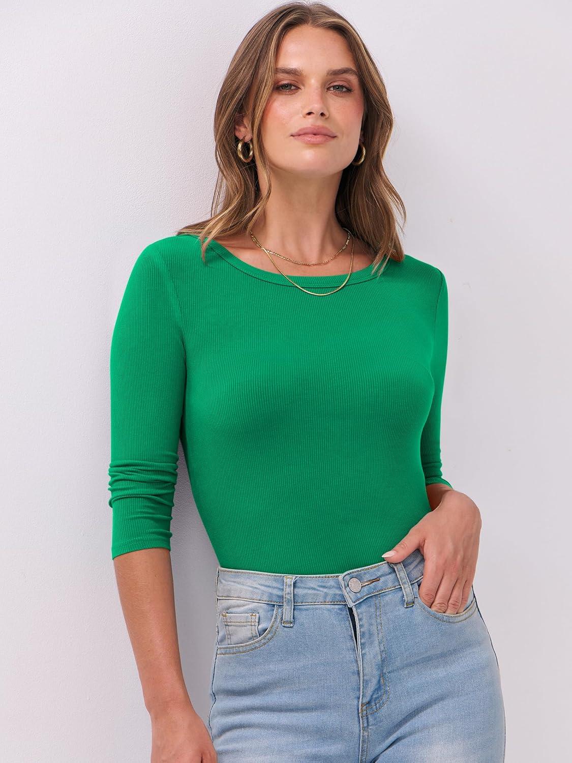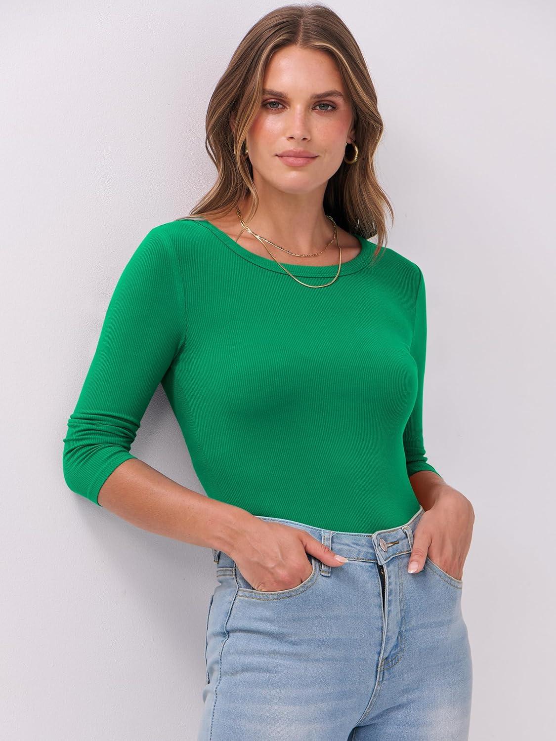 ANRABESS Womens 3/4 Long Sleeve Tops Ribbed Knit Slim Fitted Shirts Basic Tee Fall Outfits 2025 Fashion Y2K Clothes(Green)