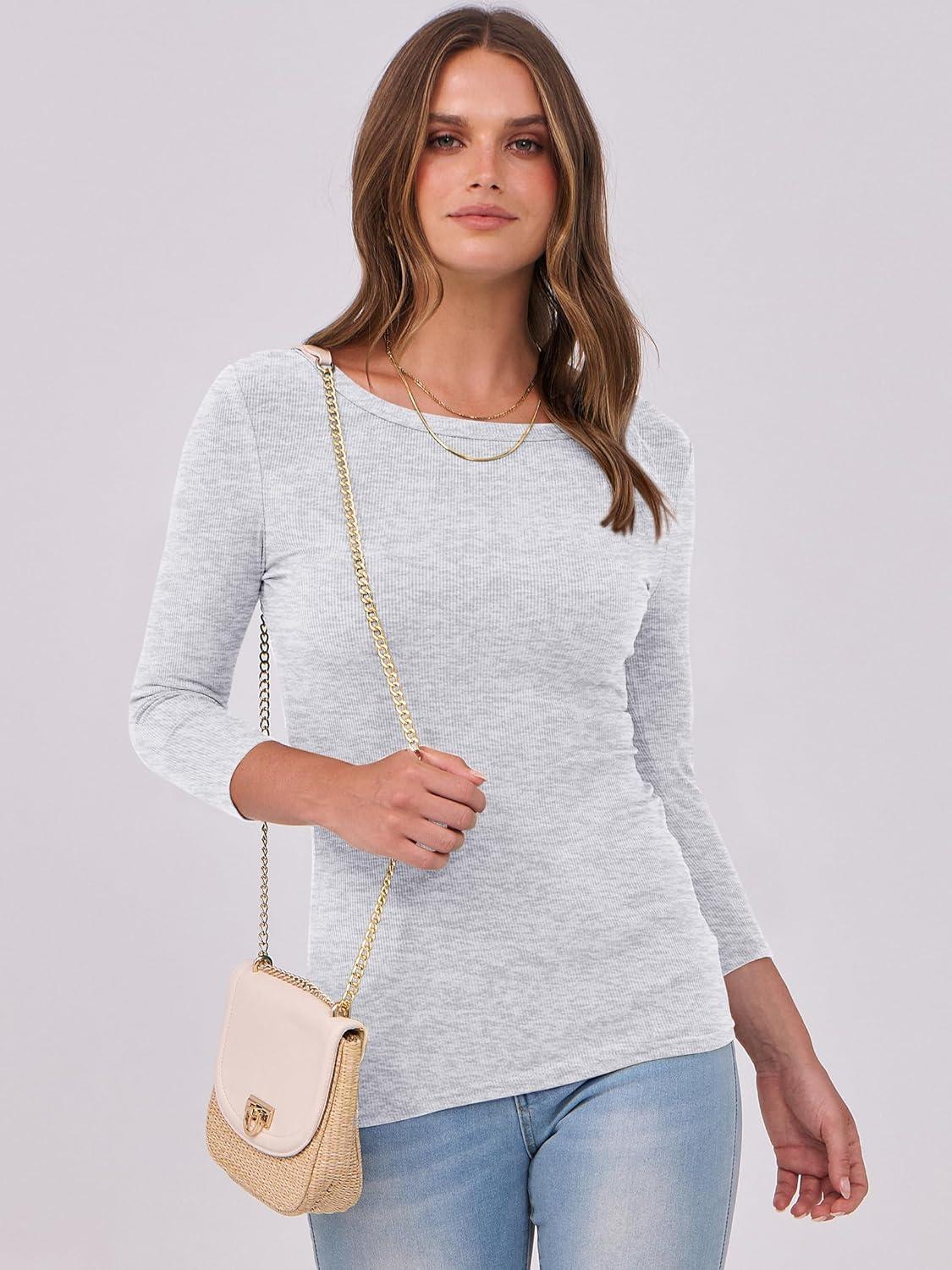 ANRABESS Womens 3/4 Long Sleeve Tops Ribbed Knit Slim Fitted Shirts Basic Tee Fall Outfits 2025 Fashion Y2K Clothes(Grey)