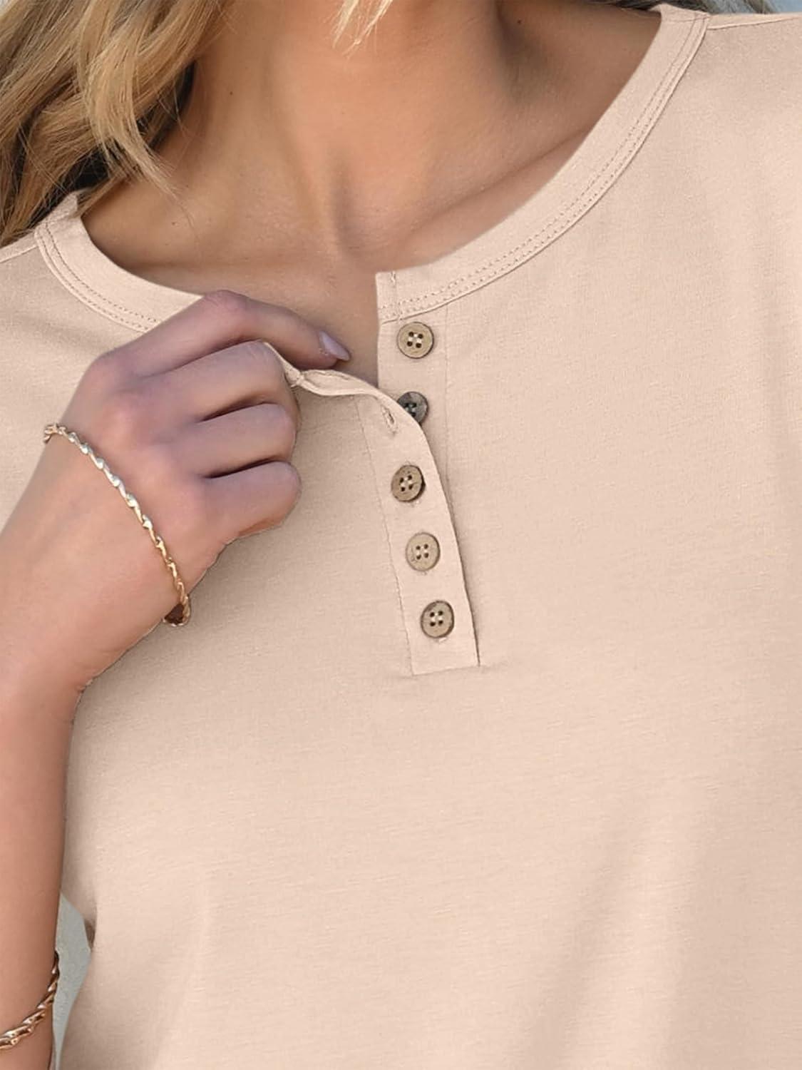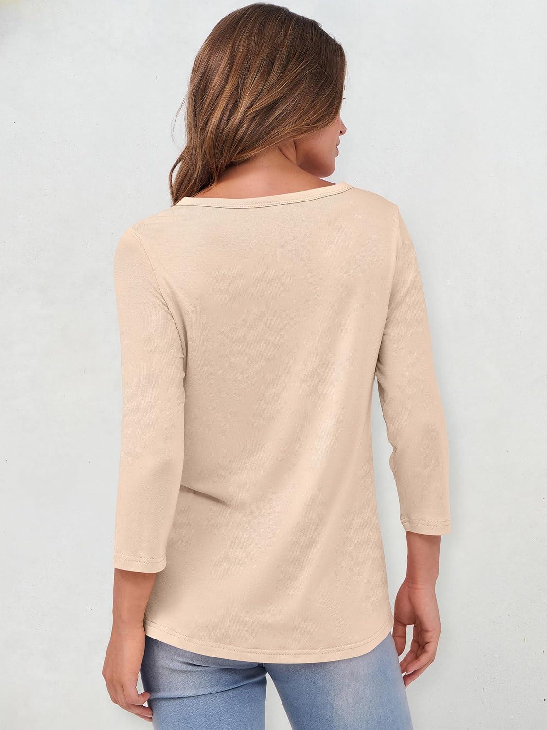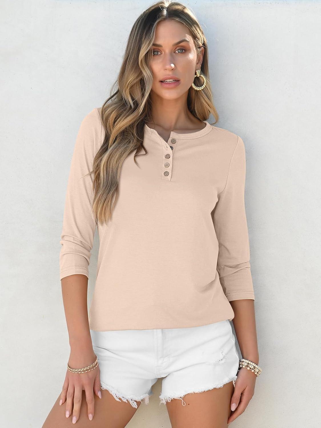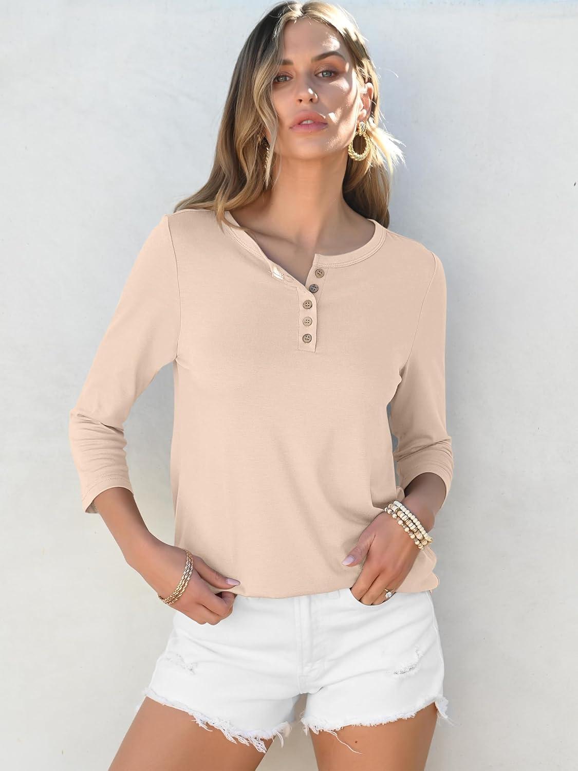 ANRABESS Womens 3/4 Sleeve Tops Henley Shirts Casual Trendy Button T Shirts 2025 Summer Basic Tunic(Apricot)