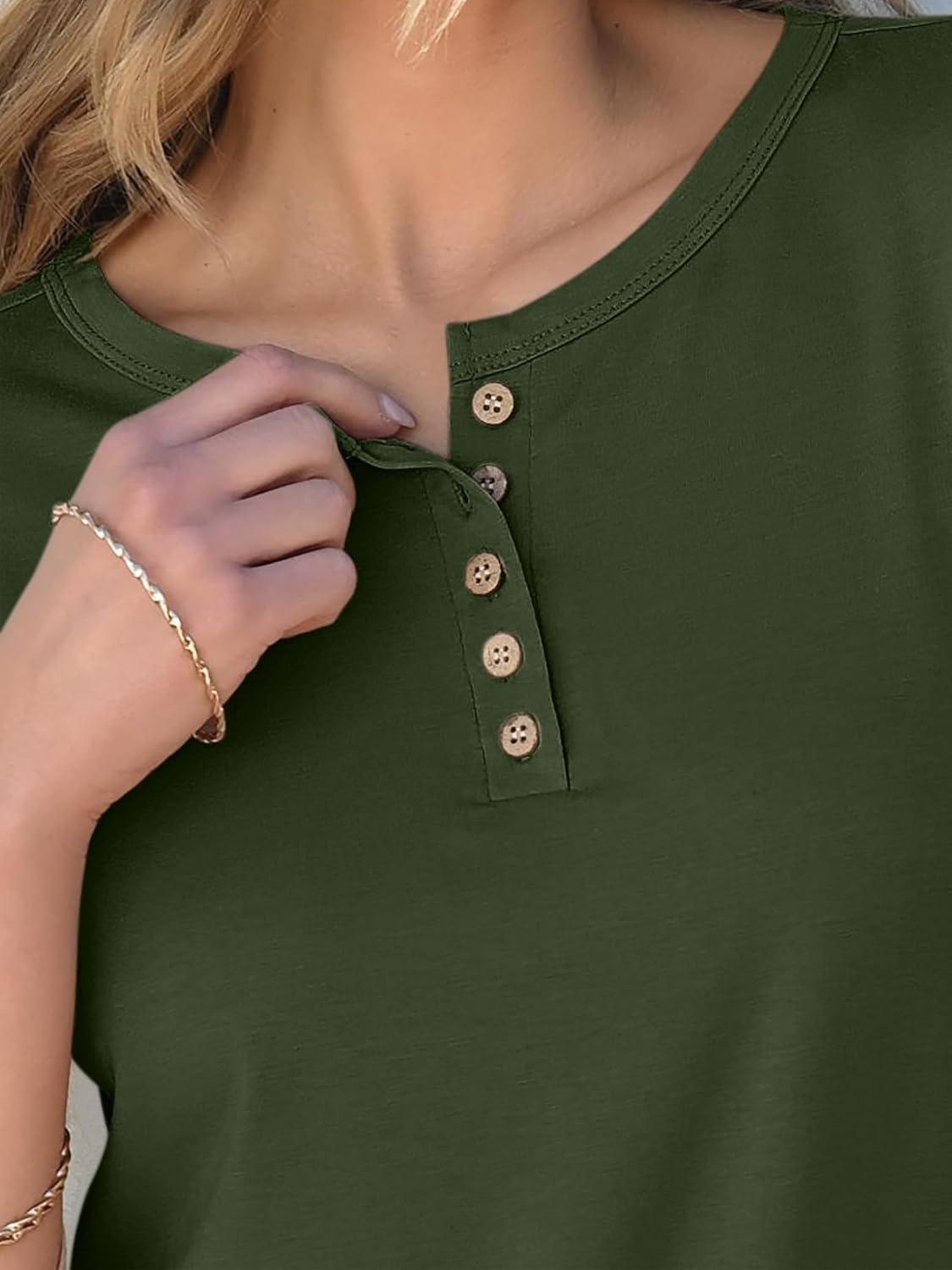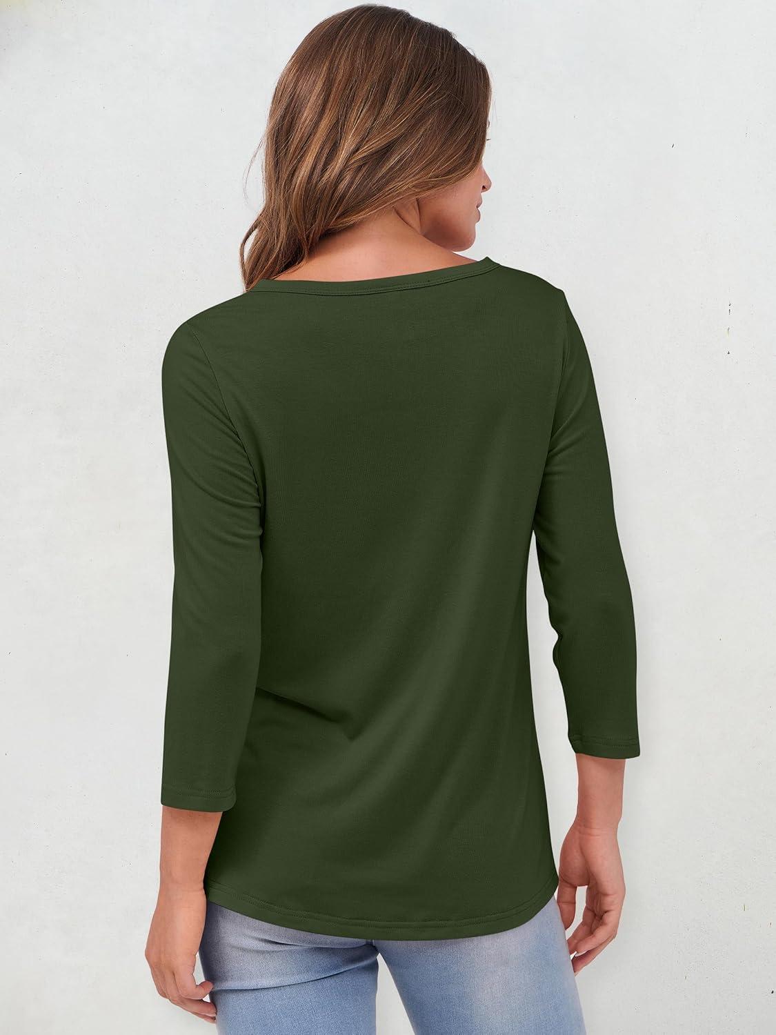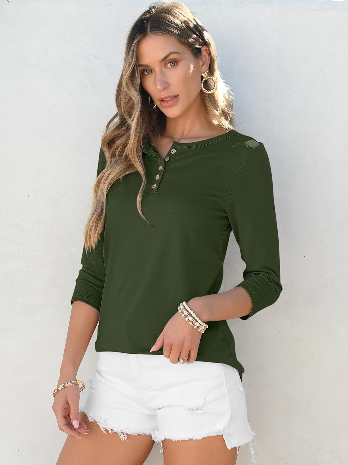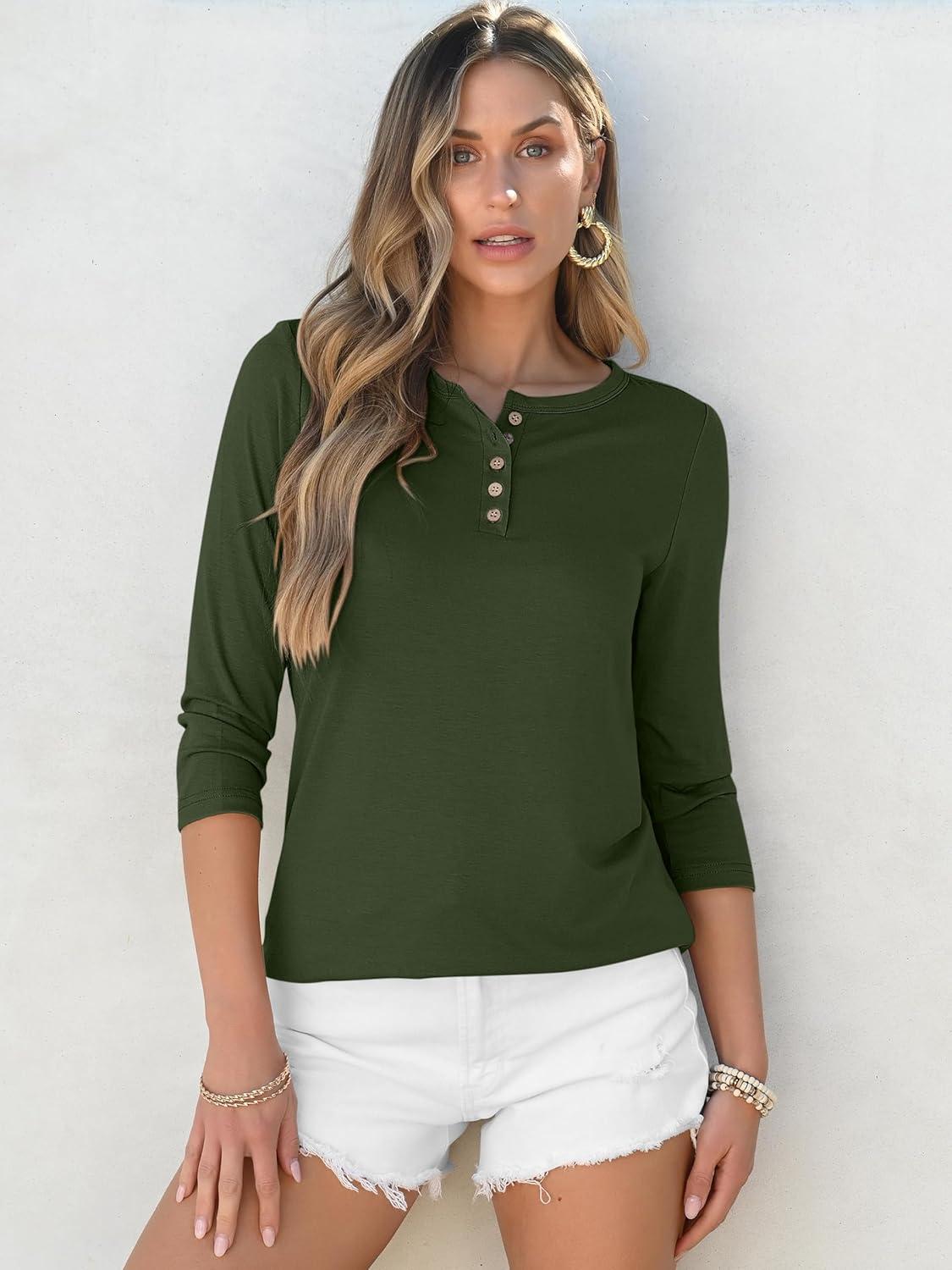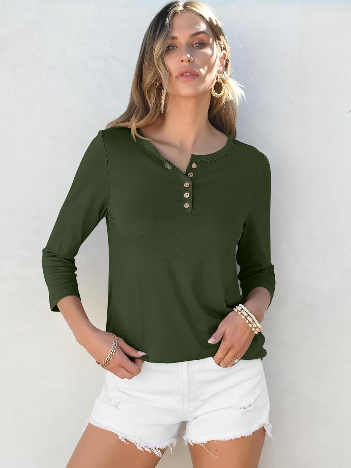 ANRABESS Womens 3/4 Sleeve Tops Henley Shirts Casual Trendy Button T Shirts 2025 Summer Basic Tunic(Army Green)