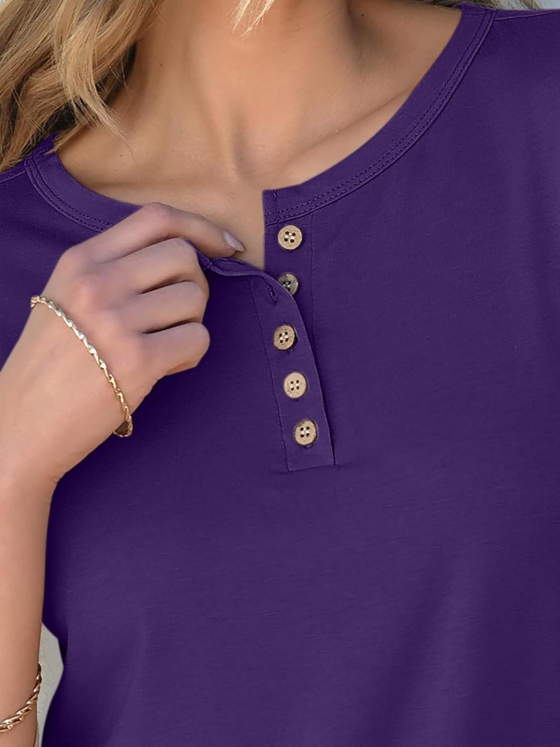 ANRABESS Womens 3/4 Sleeve Tops Henley Shirts Casual Trendy Button T Shirts 2025 Summer Basic Tunic(Purple)
