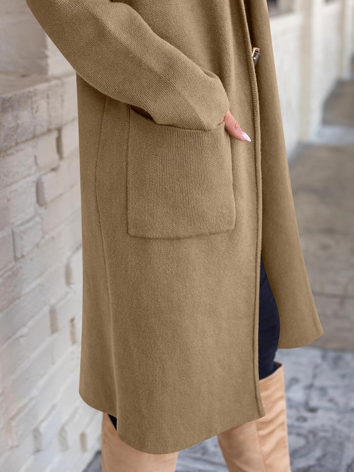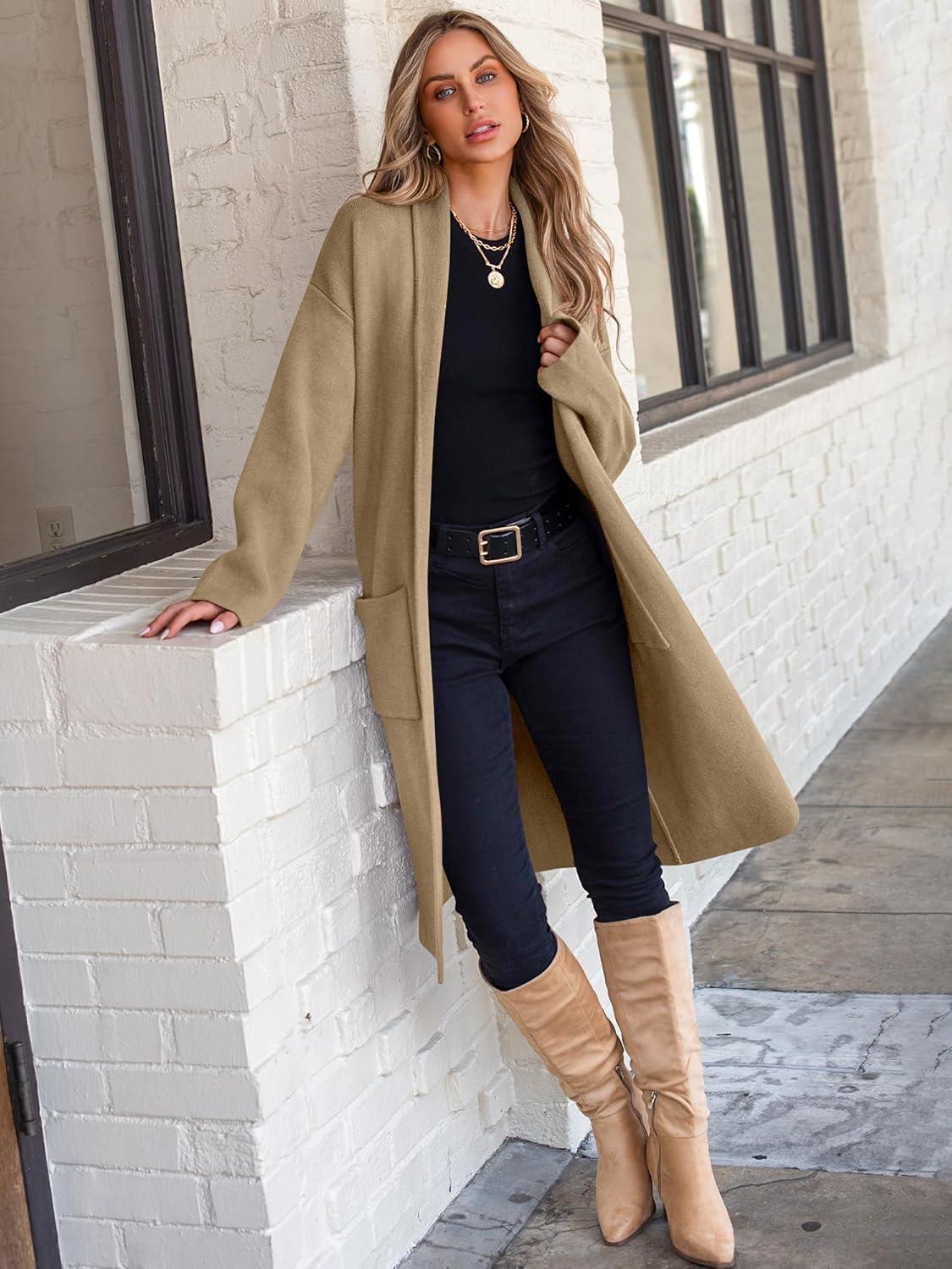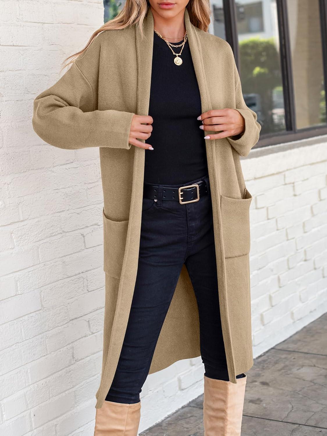 ANRABESS Women’s Cardigan Long Sweater Oversized Open Front Knit Coatigan Duster Coat 2025 Trendy Fall Outfits Outerwear(Brown)