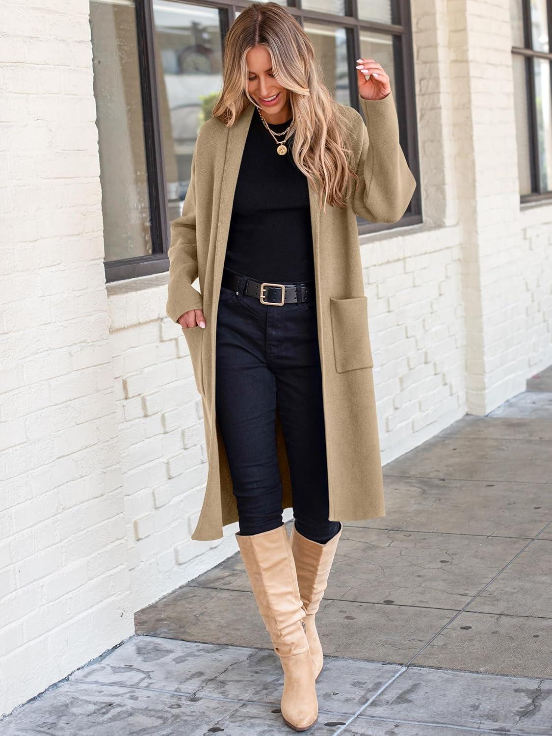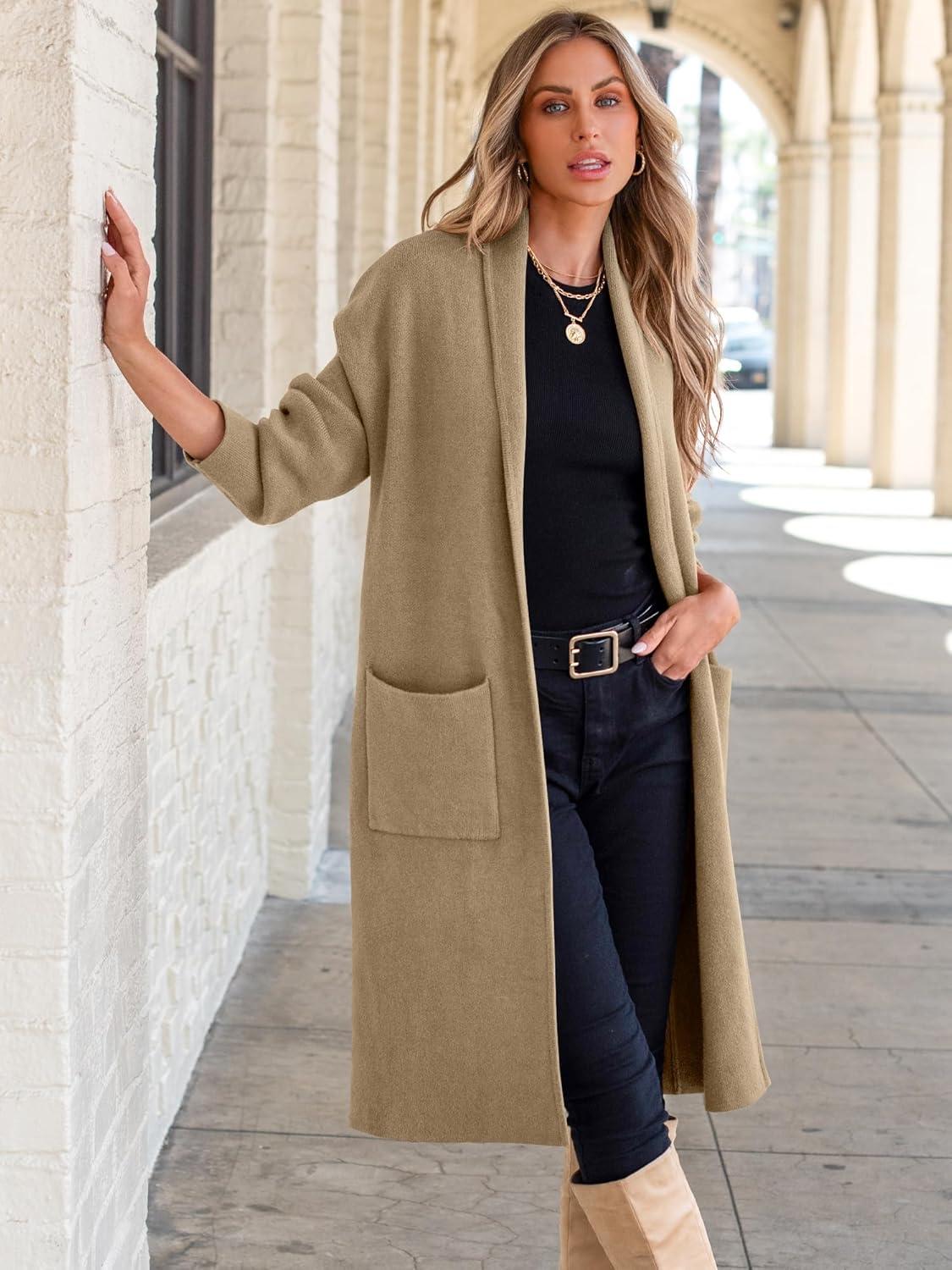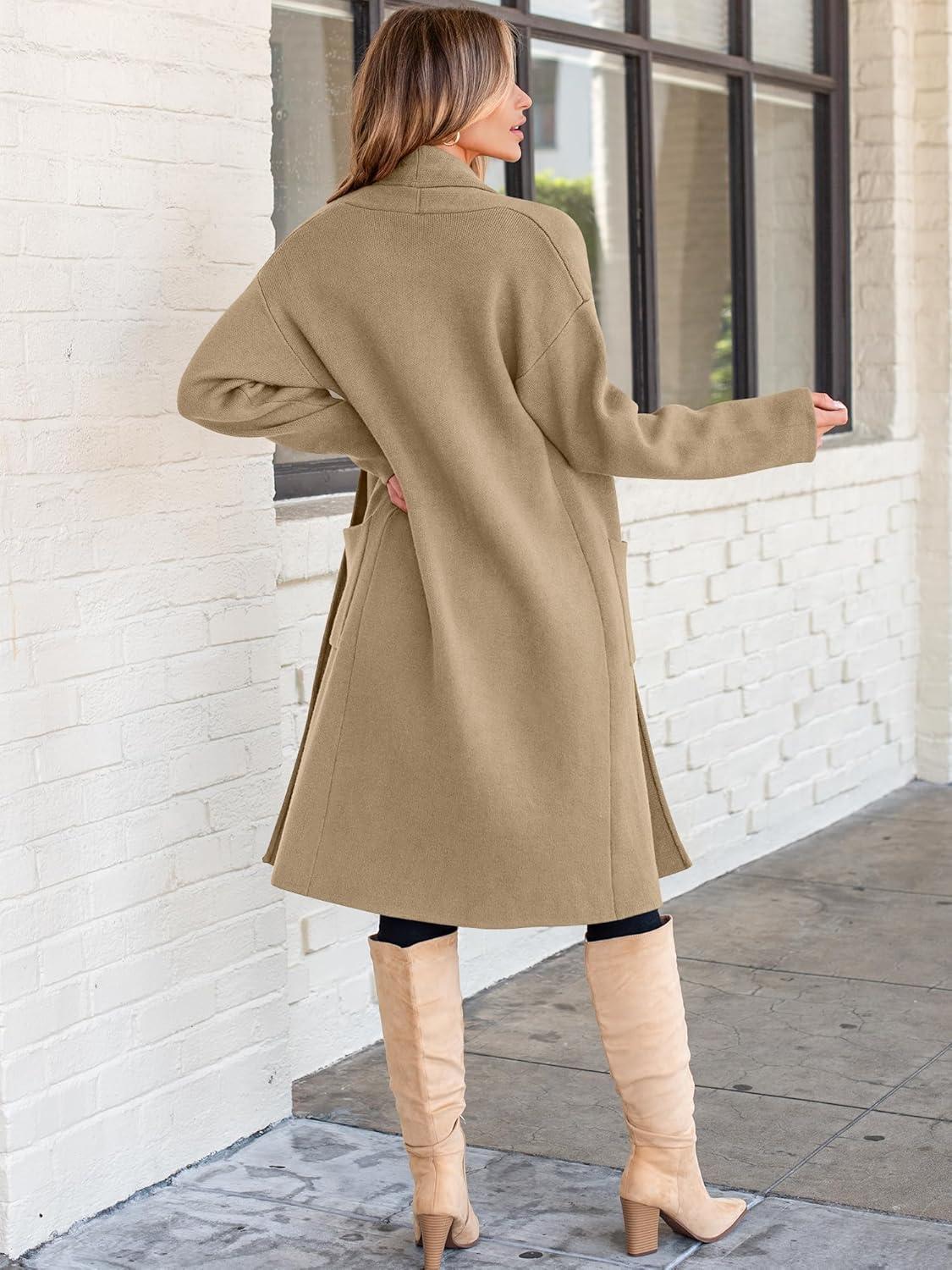 ANRABESS Women’s Cardigan Long Sweater Oversized Open Front Knit Coatigan Duster Coat 2025 Trendy Fall Outfits Outerwear(Brown)