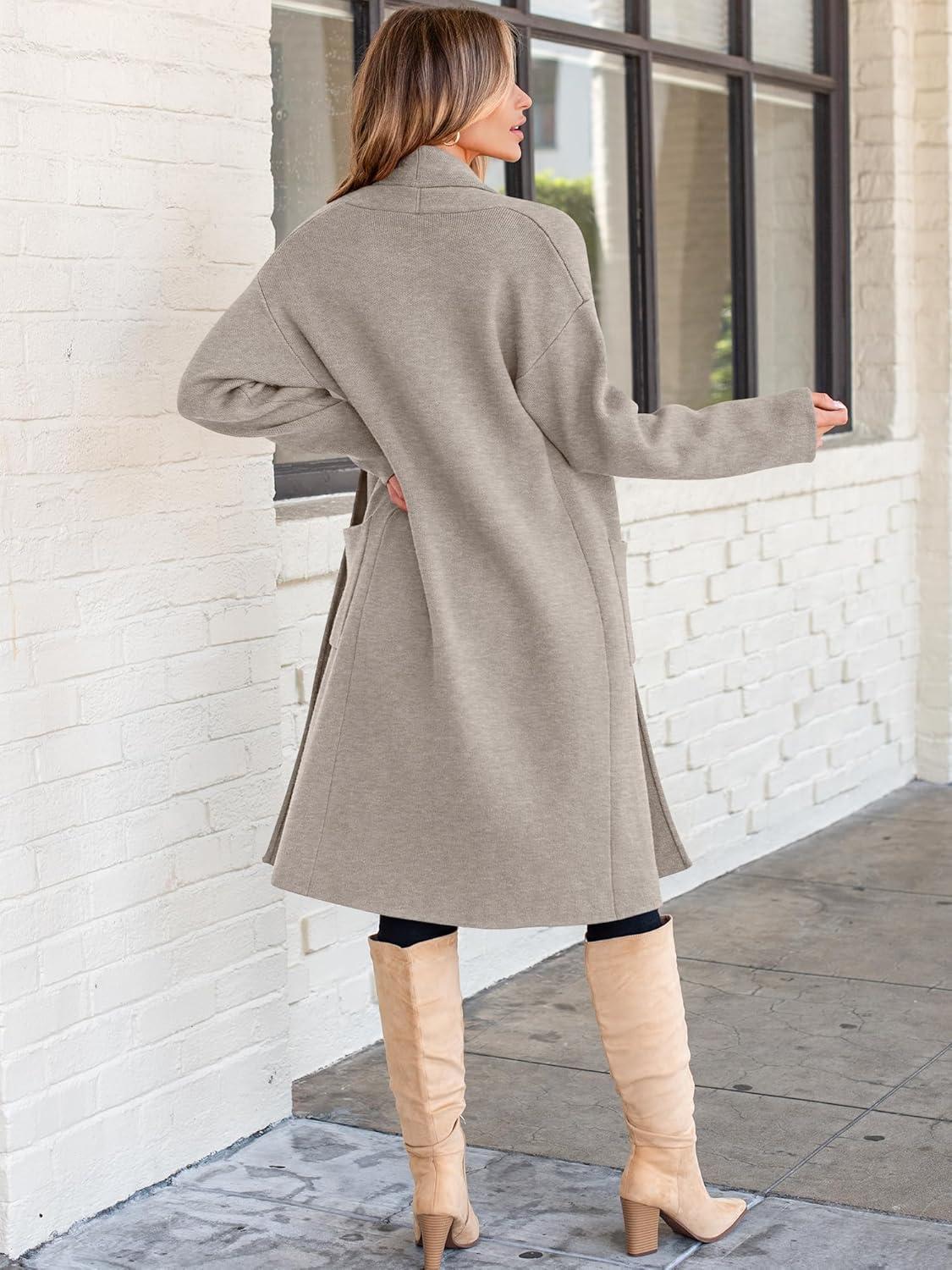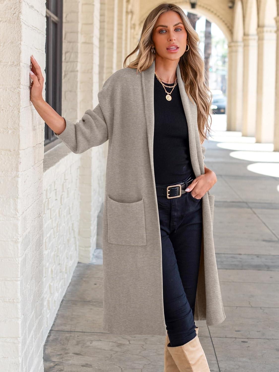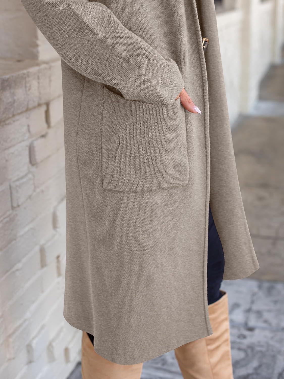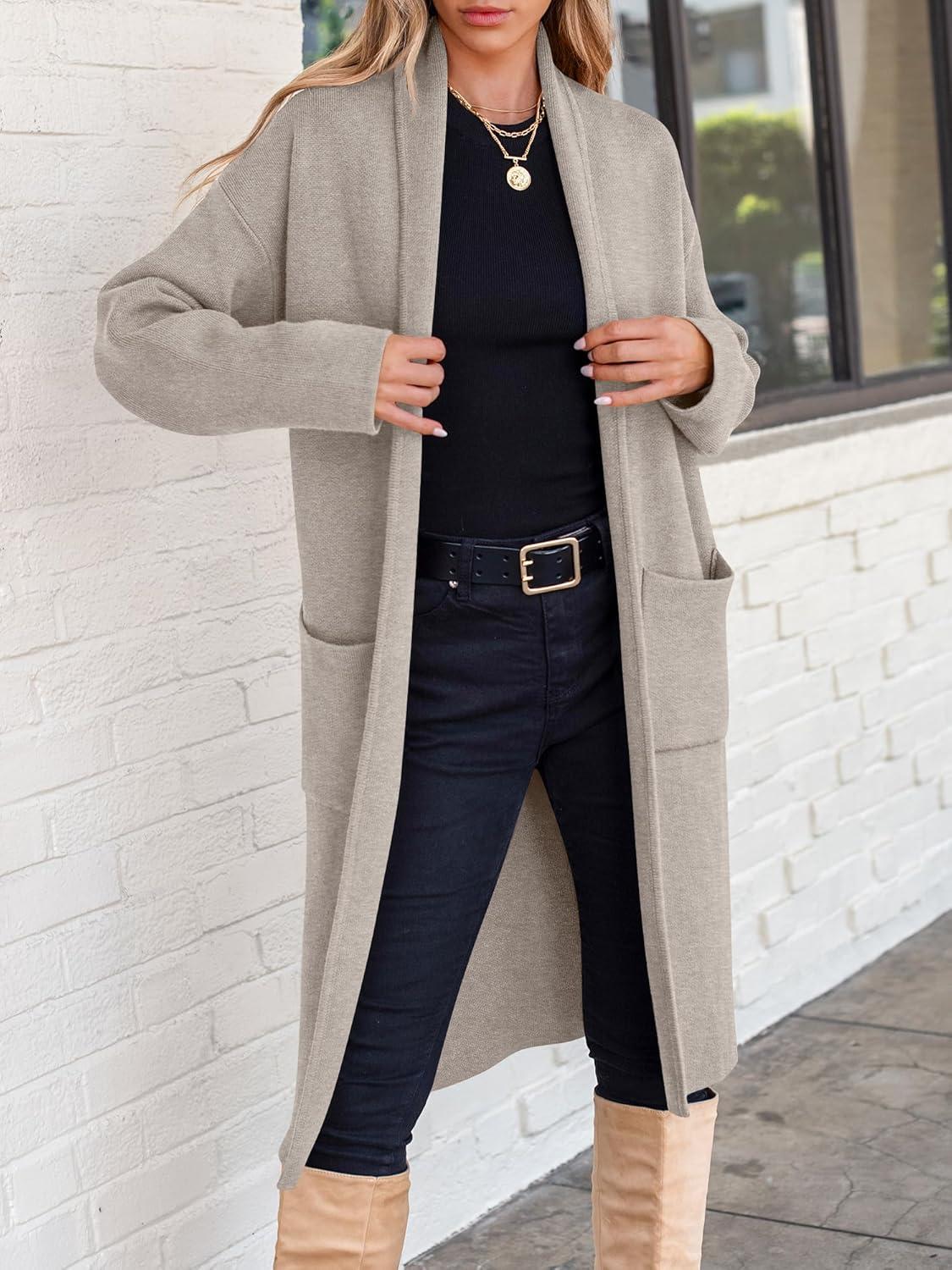 ANRABESS Women’s Cardigan Long Sweater Oversized Open Front Knit Coatigan Duster Coat 2025 Trendy Fall Outfits Outerwear(Deep Apricot)