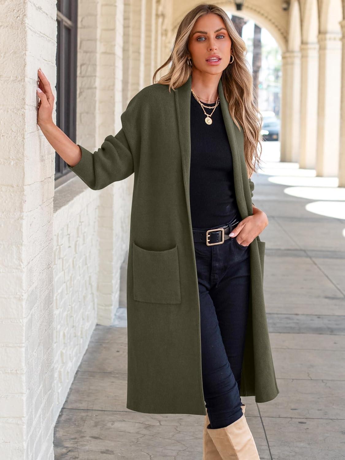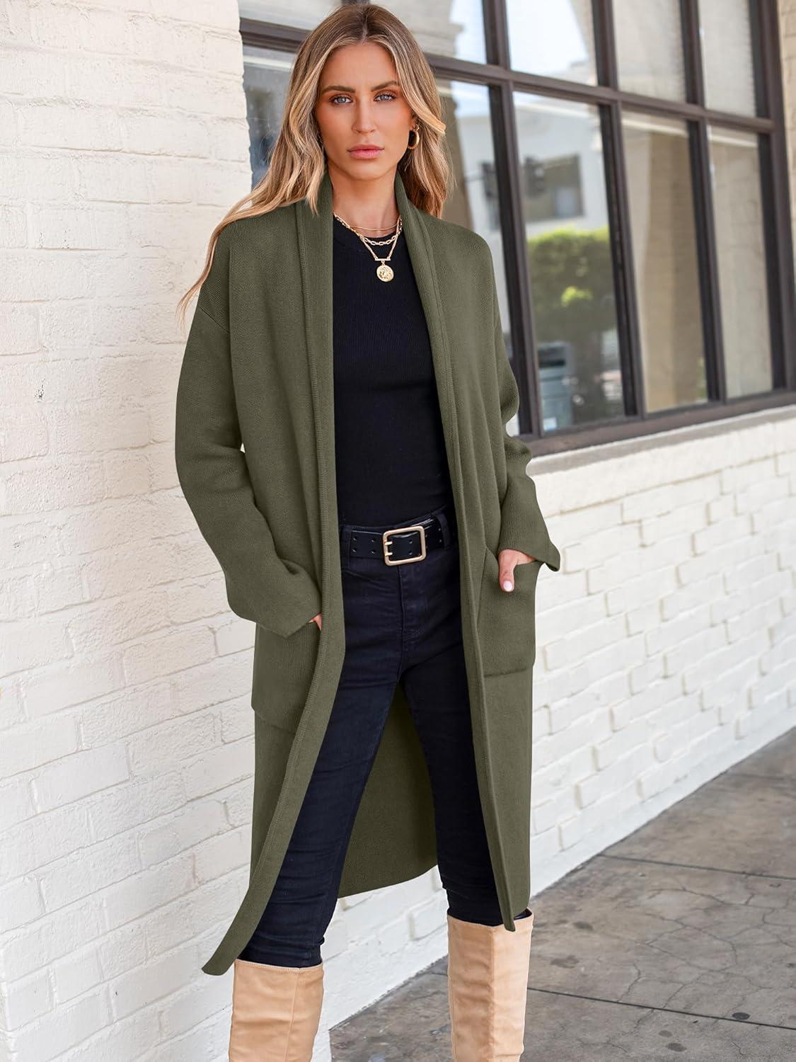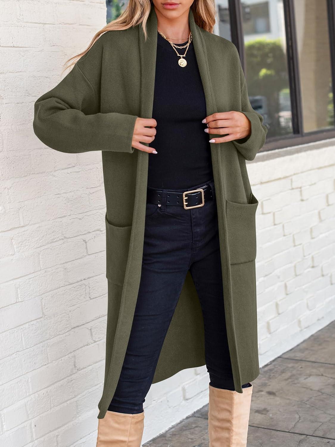 ANRABESS Women’s Cardigan Long Sweater Oversized Open Front Knit Coatigan Duster Coat 2025 Trendy Fall Outfits Outerwear(Green)