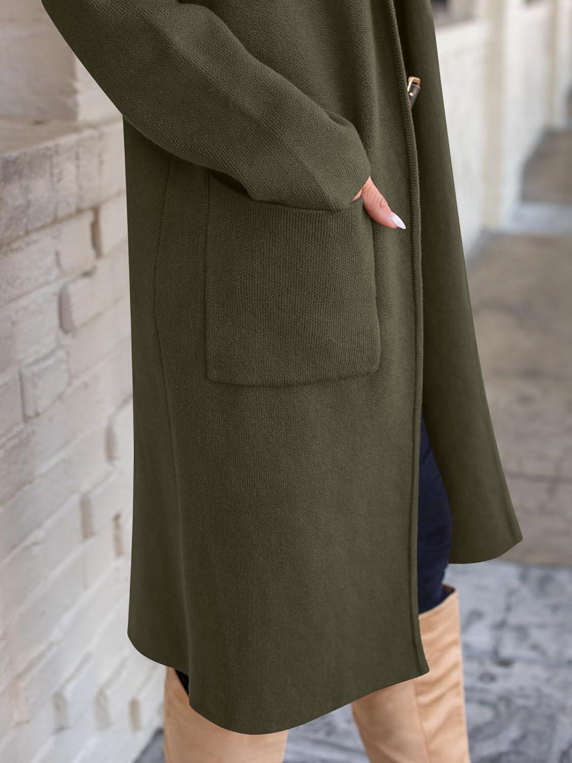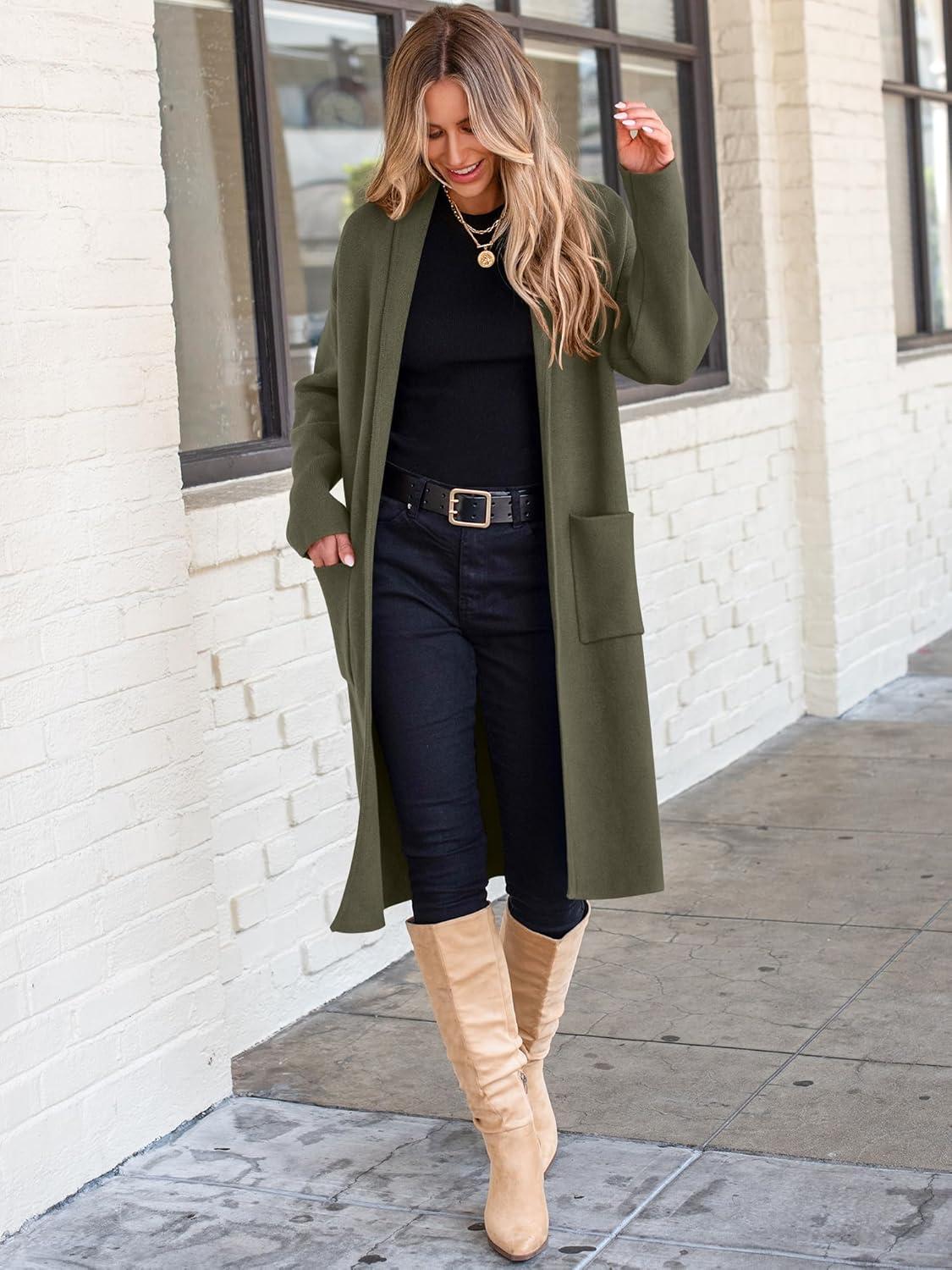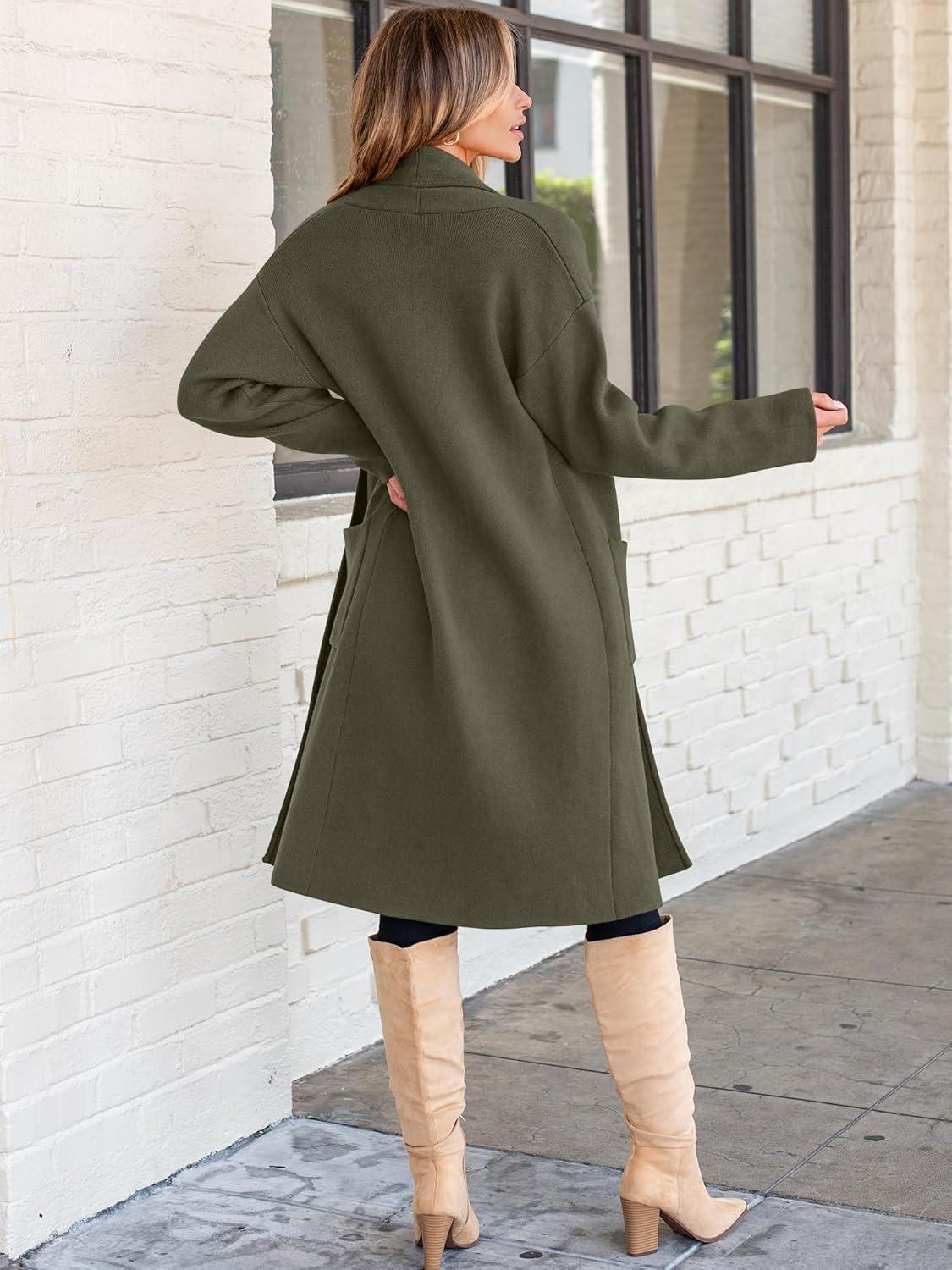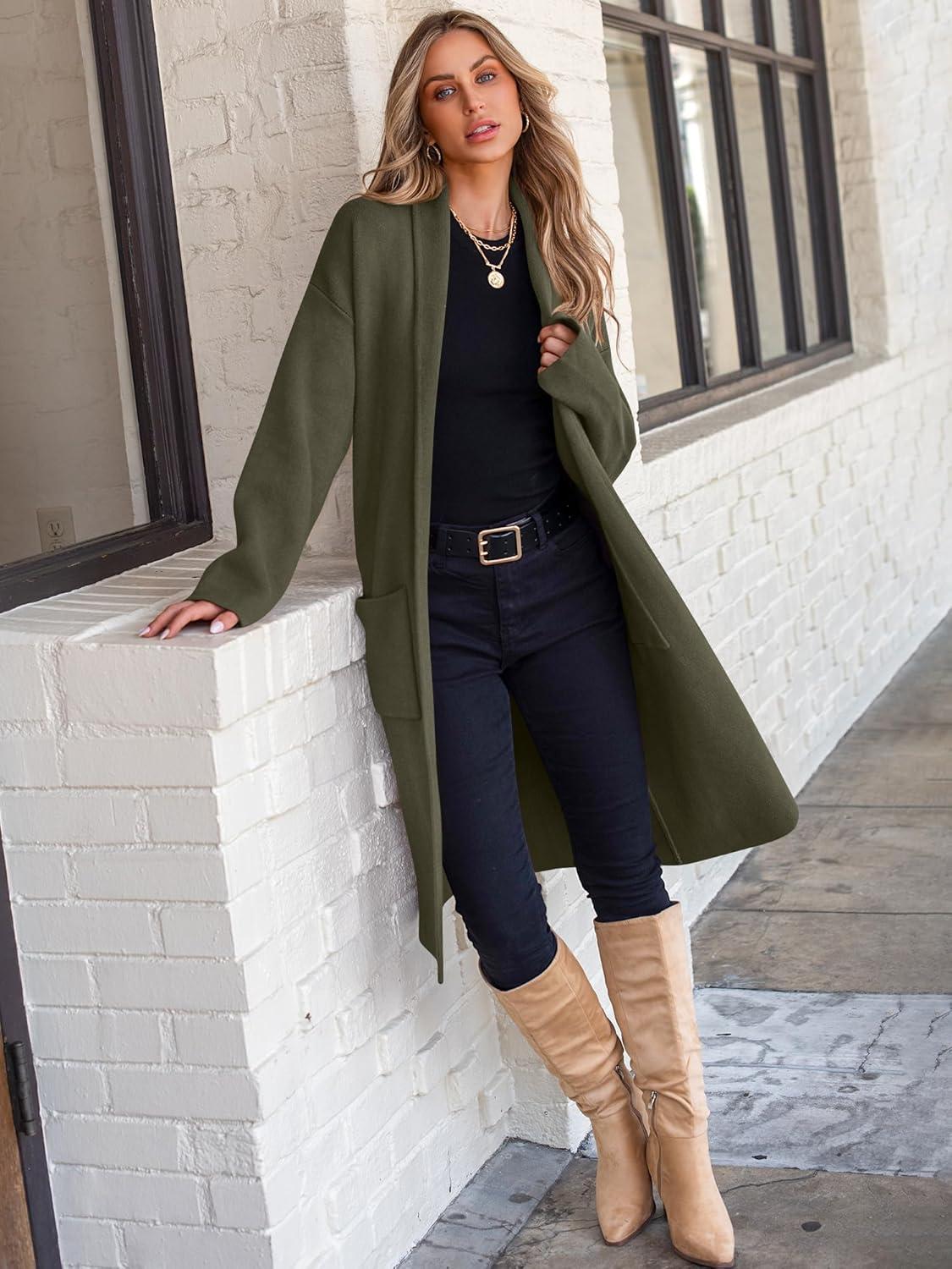 ANRABESS Women’s Cardigan Long Sweater Oversized Open Front Knit Coatigan Duster Coat 2025 Trendy Fall Outfits Outerwear(Green)