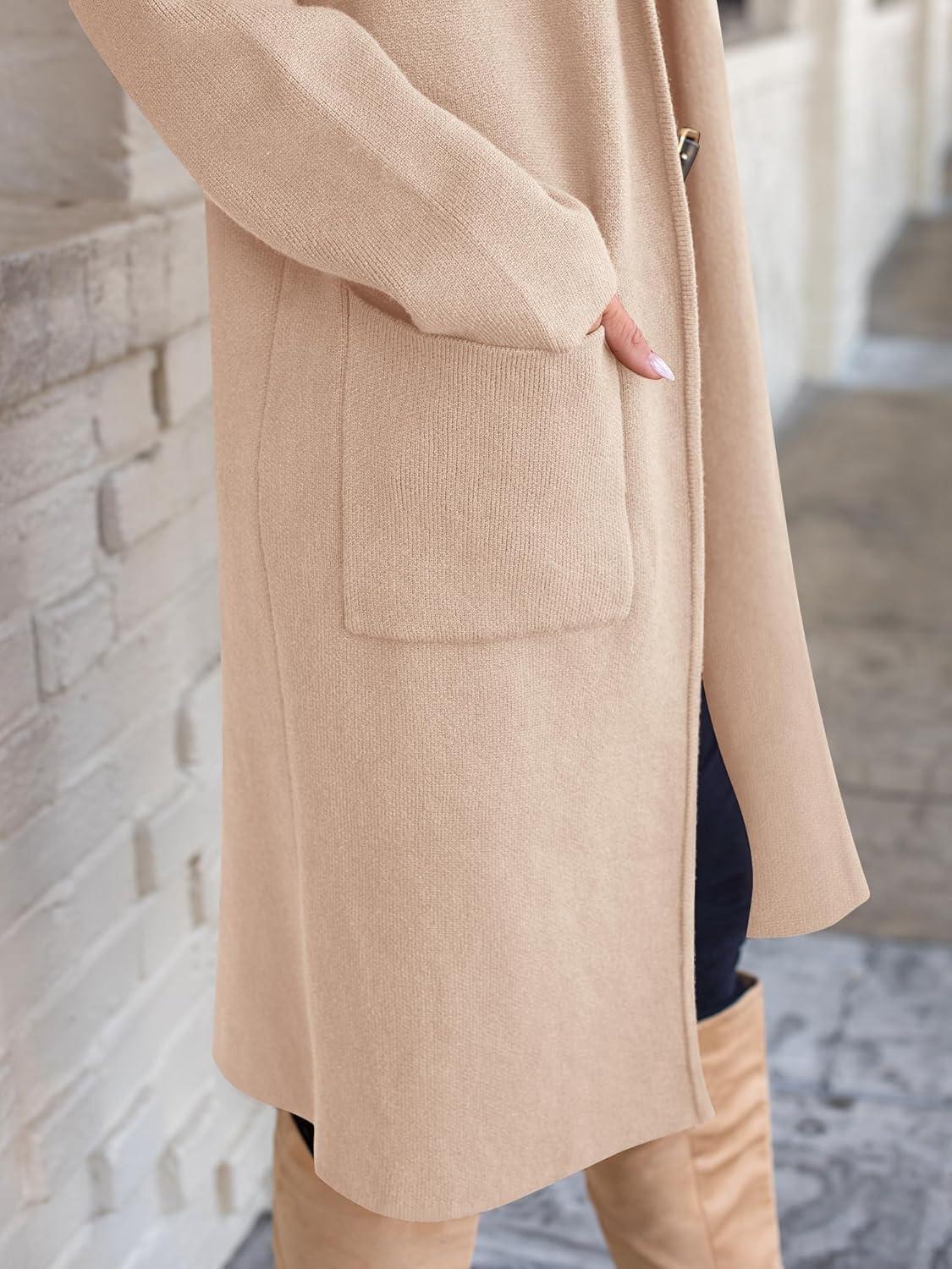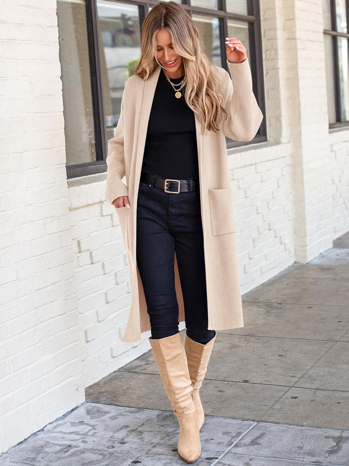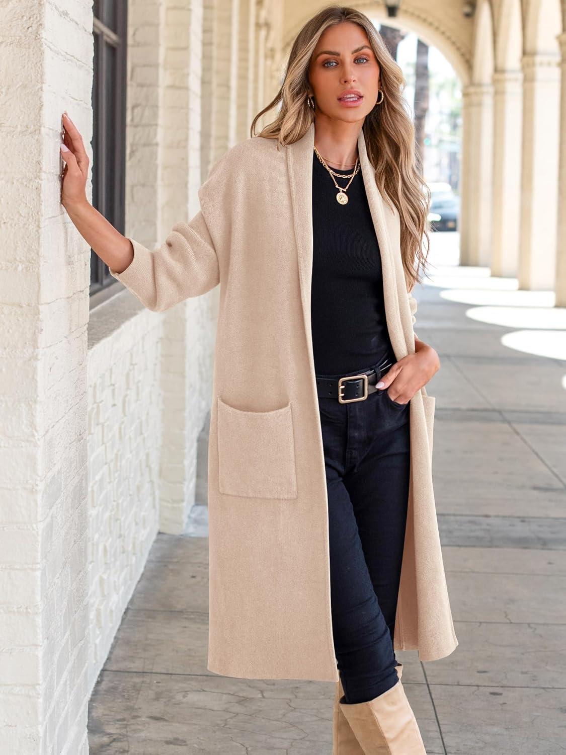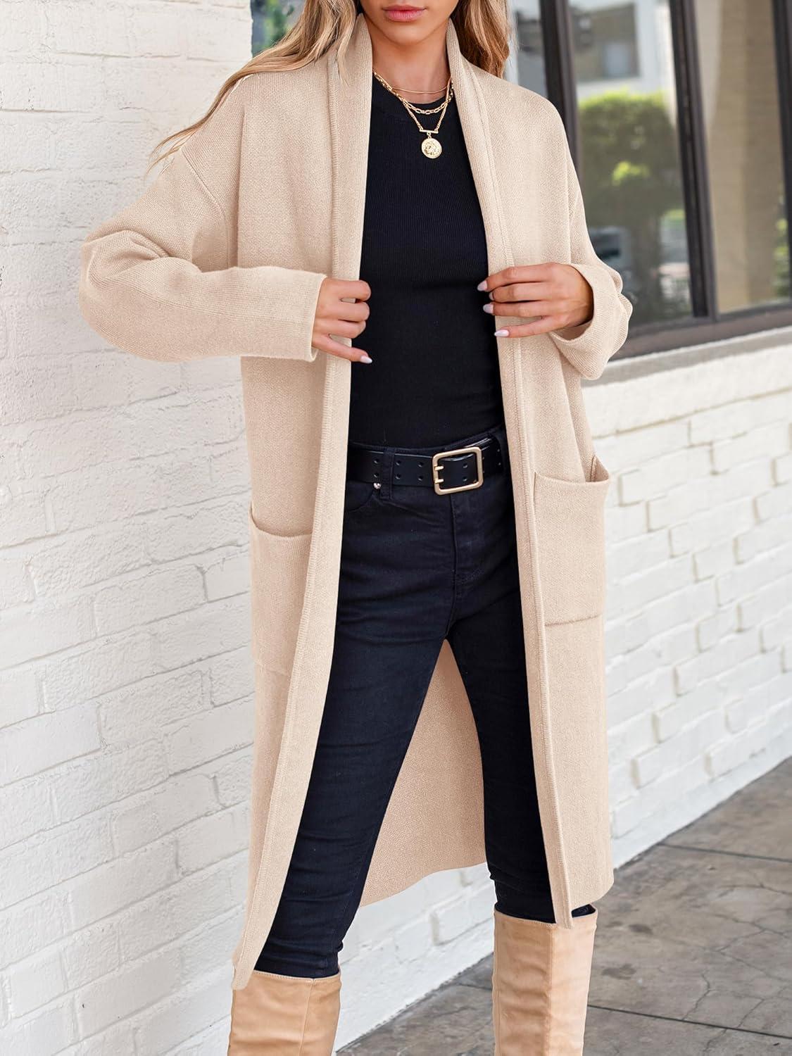 ANRABESS Women’s Cardigan Long Sweater Oversized Open Front Knit Coatigan Duster Coat 2025 Trendy Fall Outfits Outerwear(Khaki Beige)