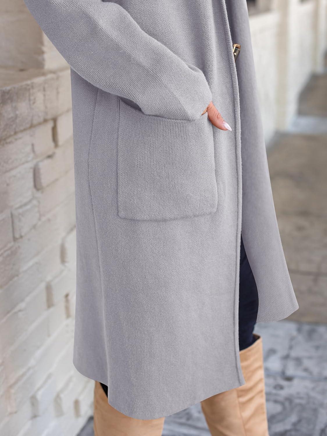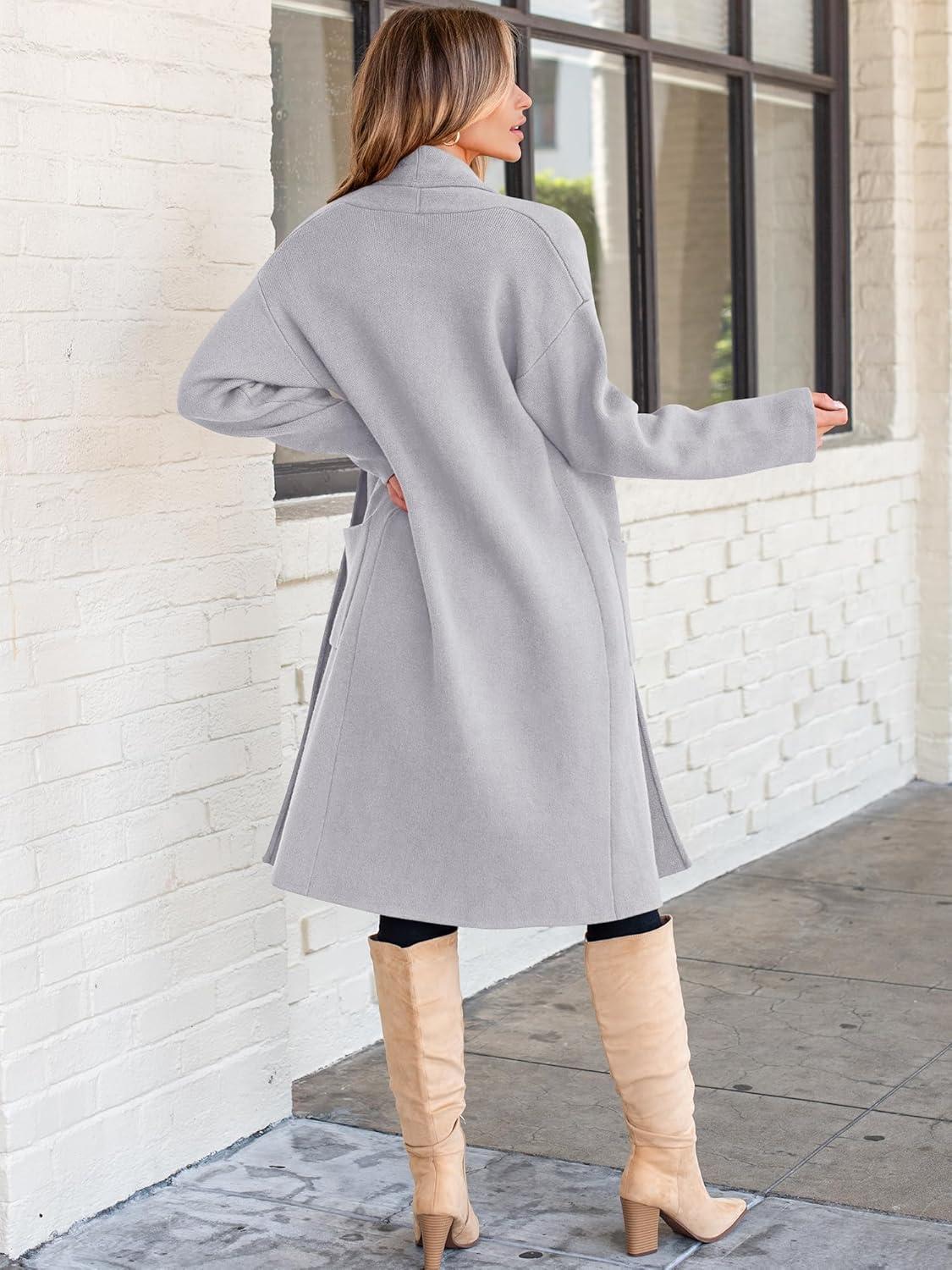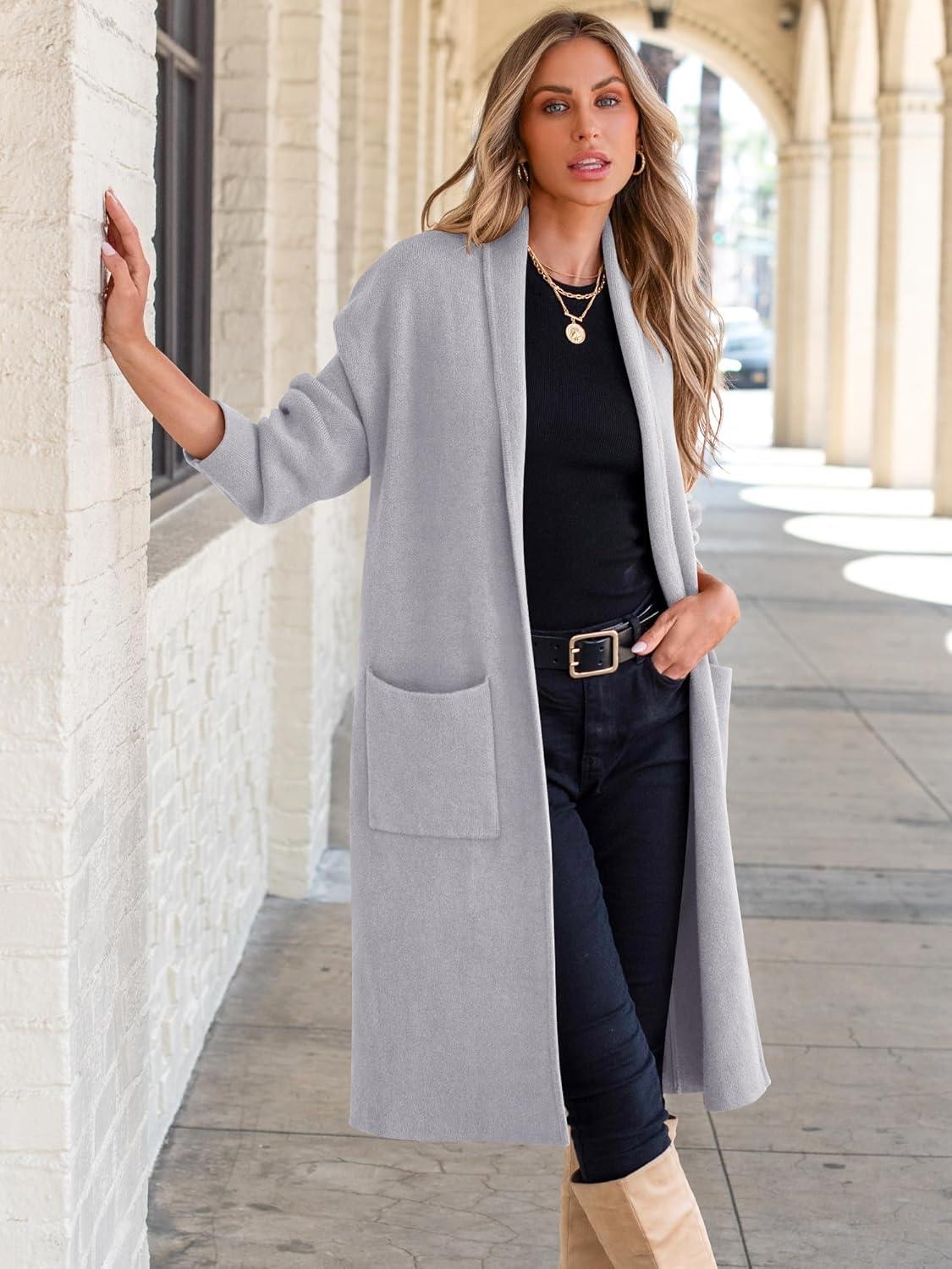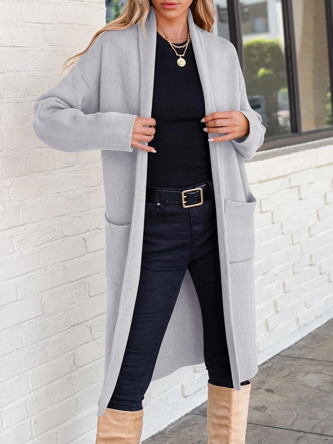 ANRABESS Women’s Cardigan Long Sweater Oversized Open Front Knit Coatigan Duster Coat 2025 Trendy Fall Outfits Outerwear(Light Grey)