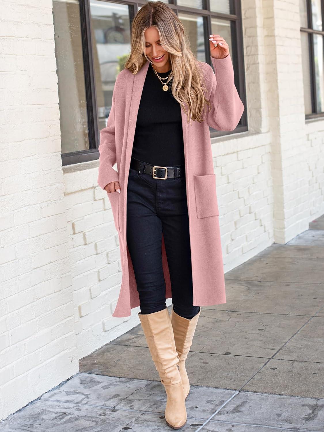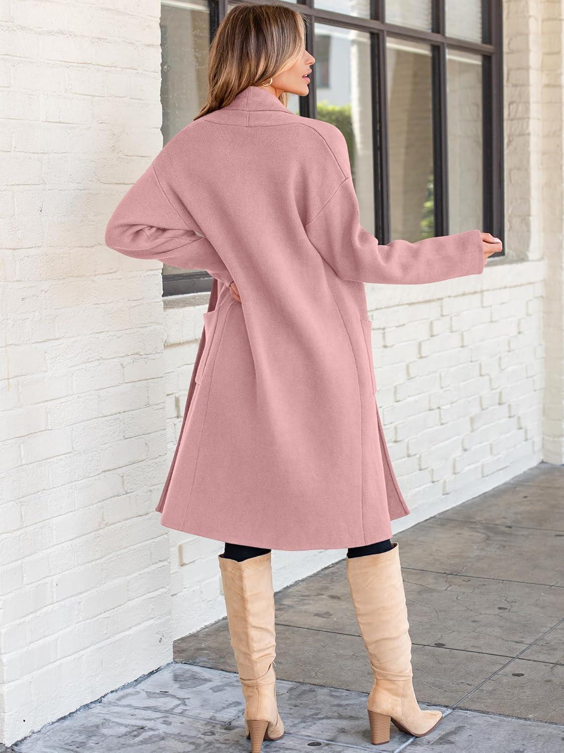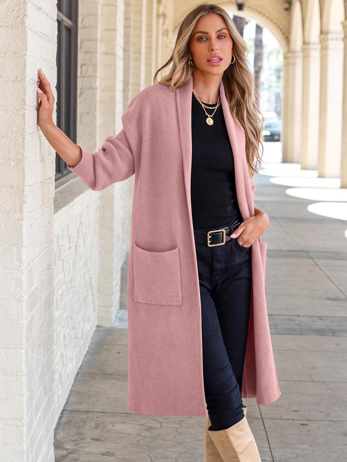 ANRABESS Women’s Cardigan Long Sweater Oversized Open Front Knit Coatigan Duster Coat 2025 Trendy Fall Outfits Outerwear(Pink)