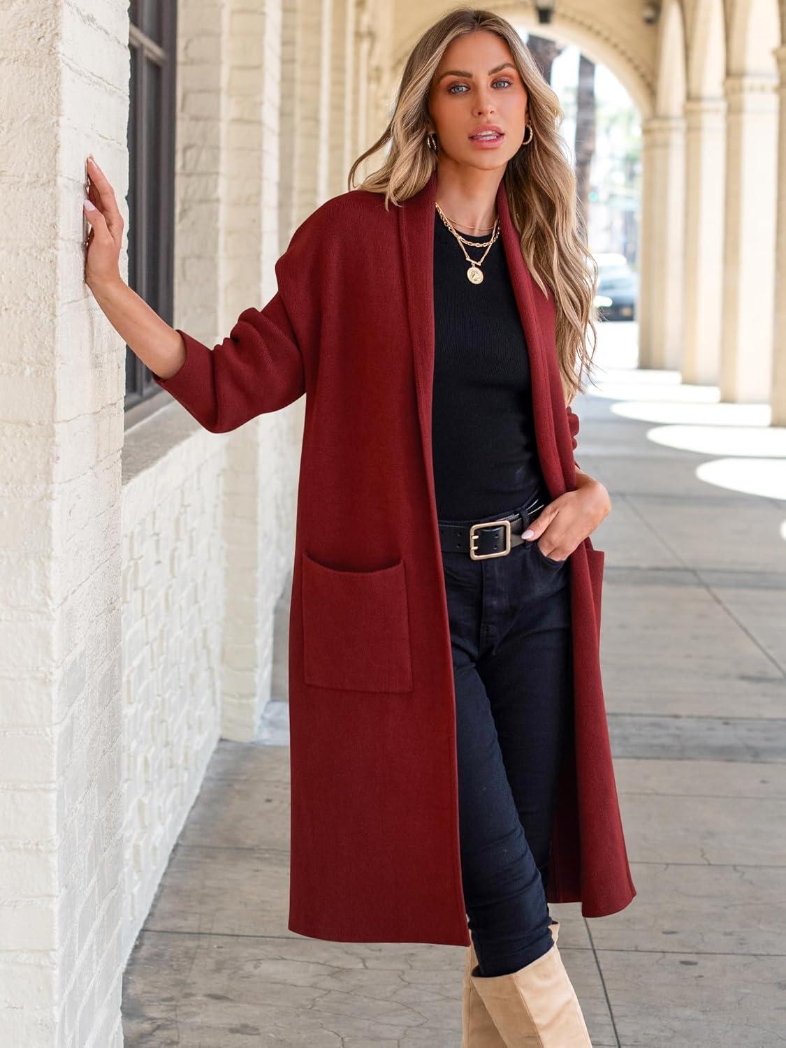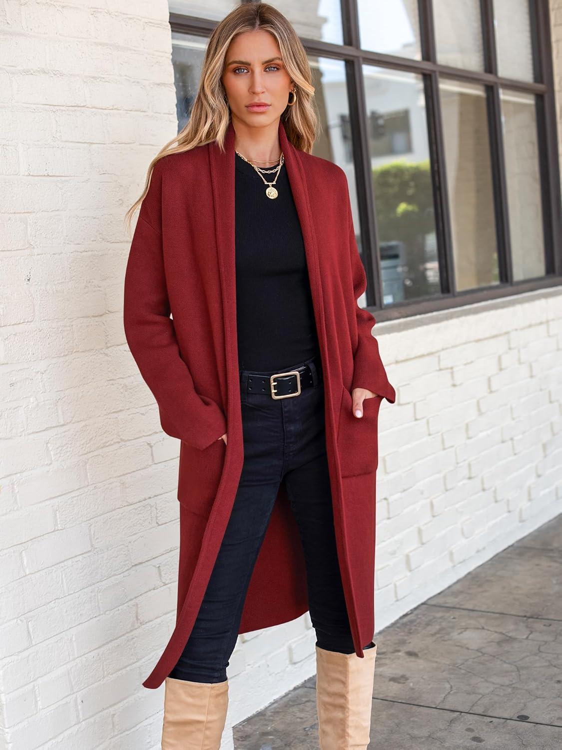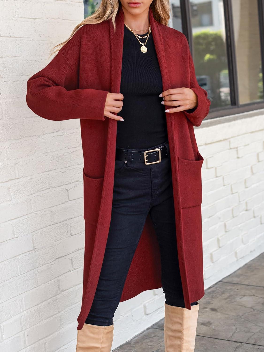 ANRABESS Women’s Cardigan Long Sweater Oversized Open Front Knit Coatigan Duster Coat 2025 Trendy Fall Outfits Outerwear(Red)