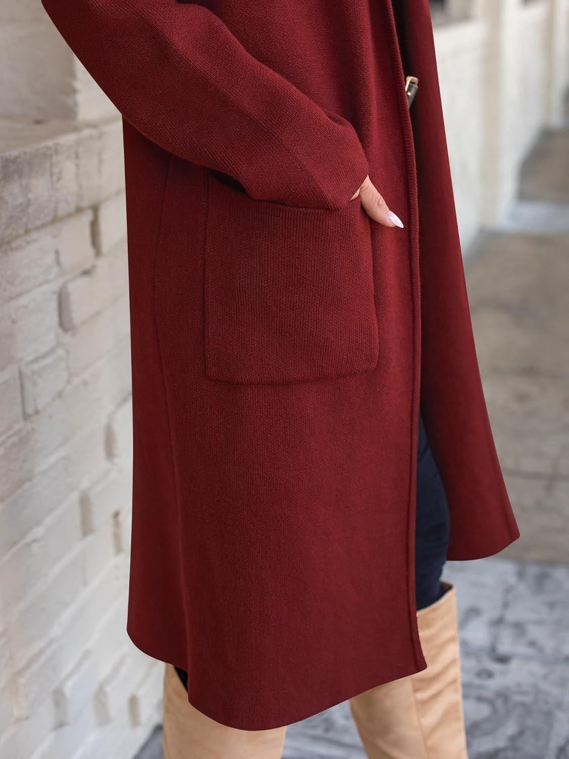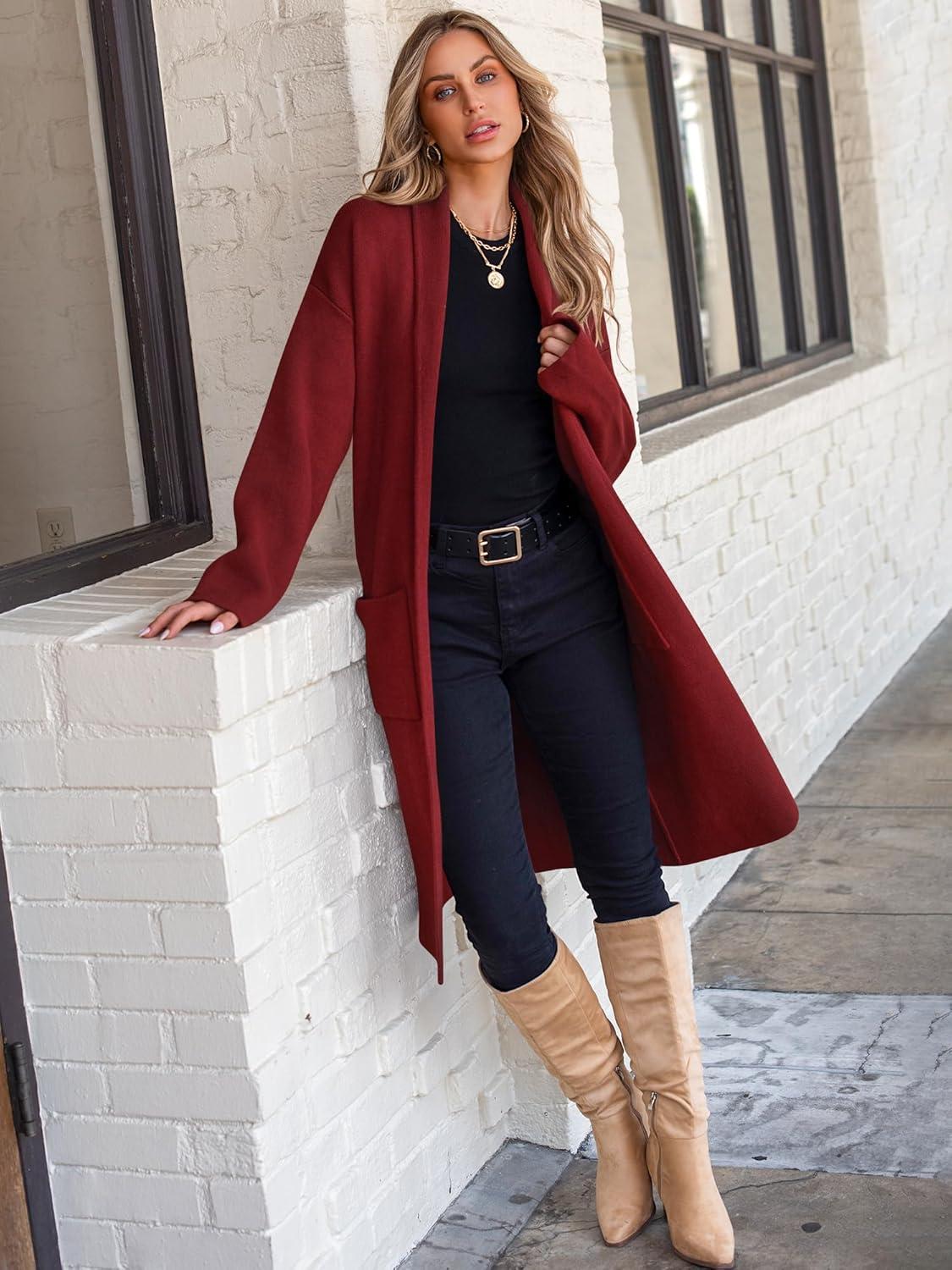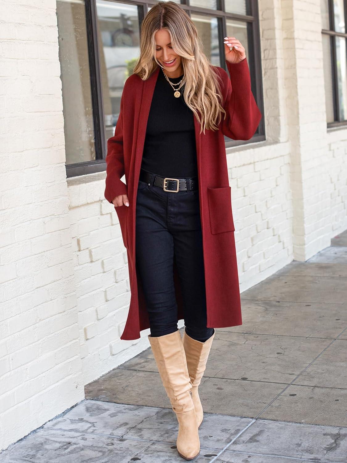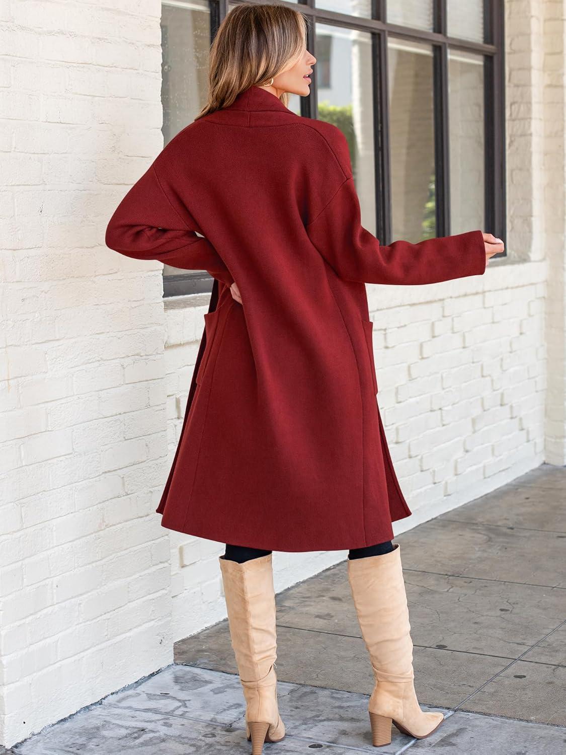 ANRABESS Women’s Cardigan Long Sweater Oversized Open Front Knit Coatigan Duster Coat 2025 Trendy Fall Outfits Outerwear(Red)