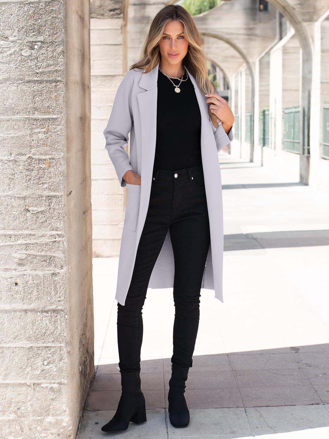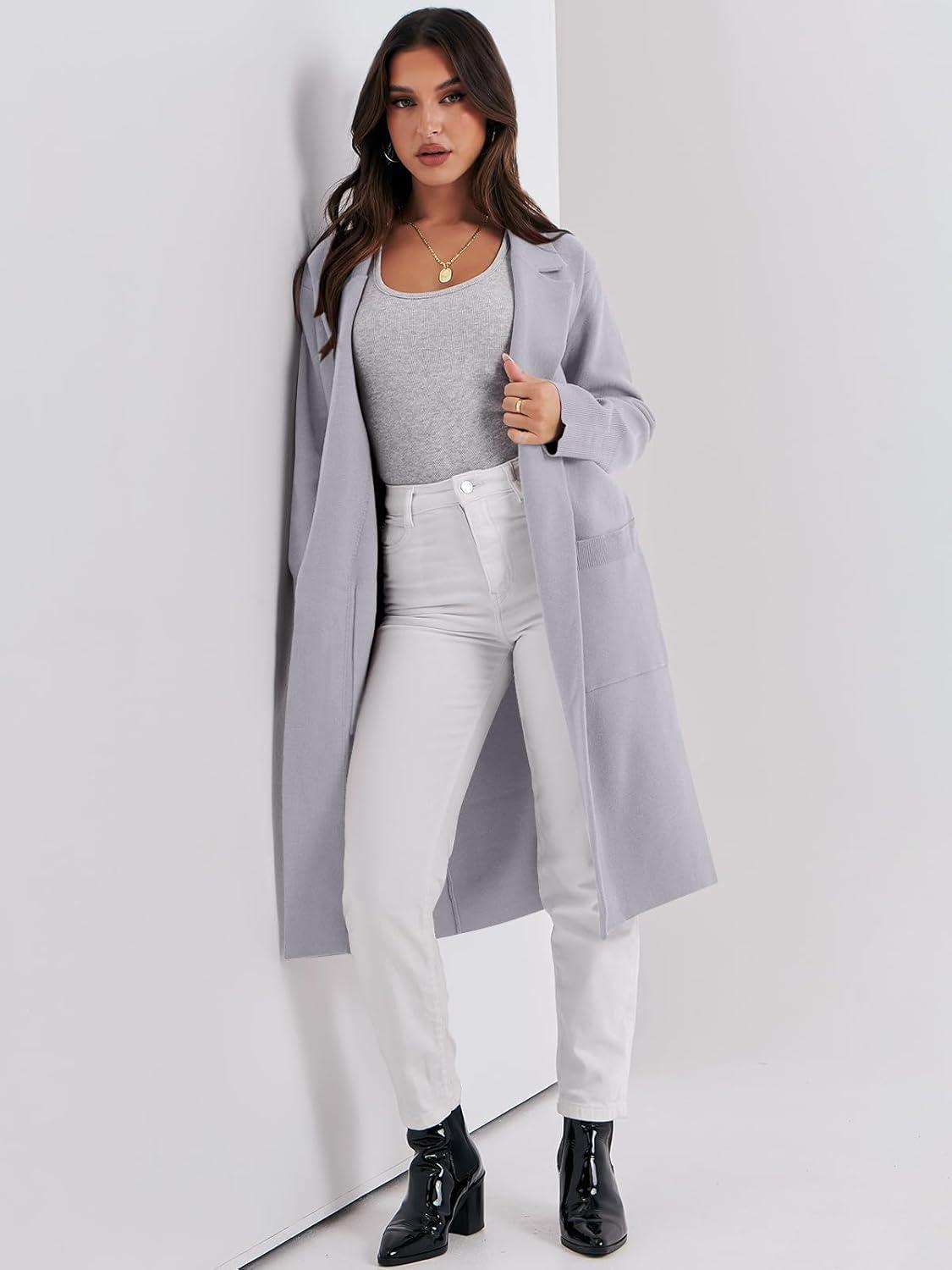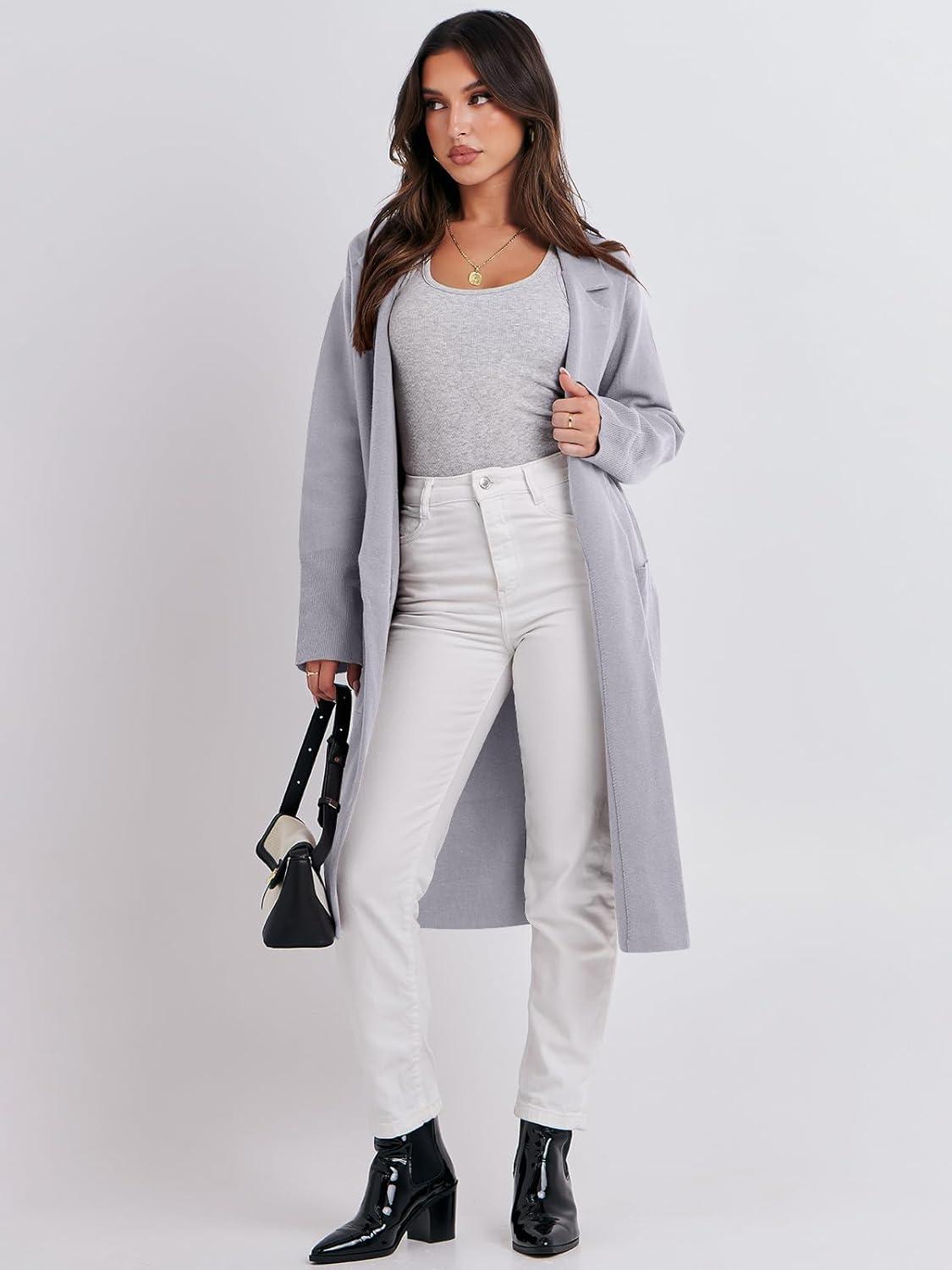 ANRABESS Womens Cardigan Sweater 2025 Fall Outfits Knitted Lapel Long Coats Coatigans(Grey Purple)