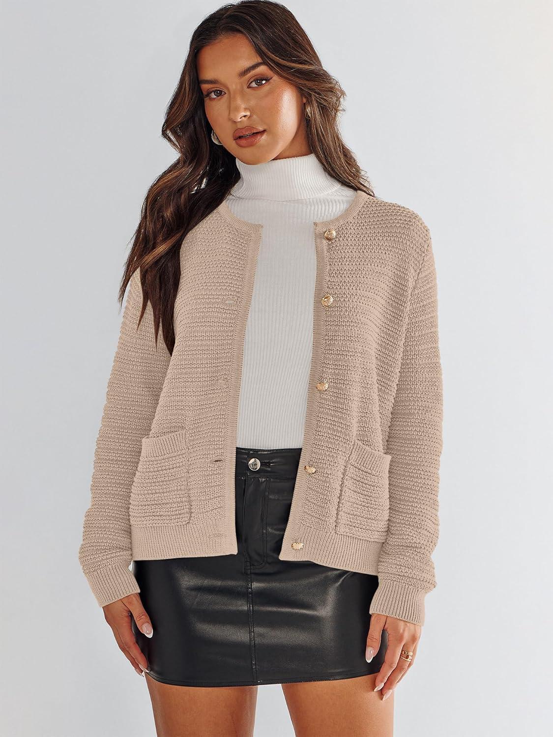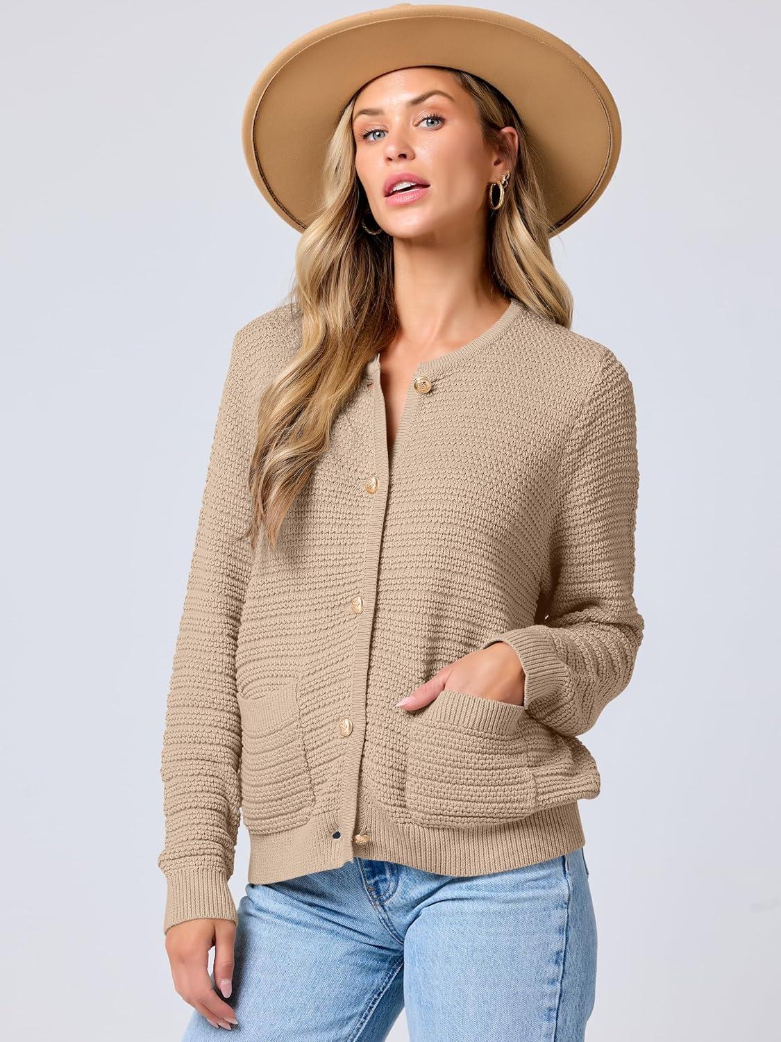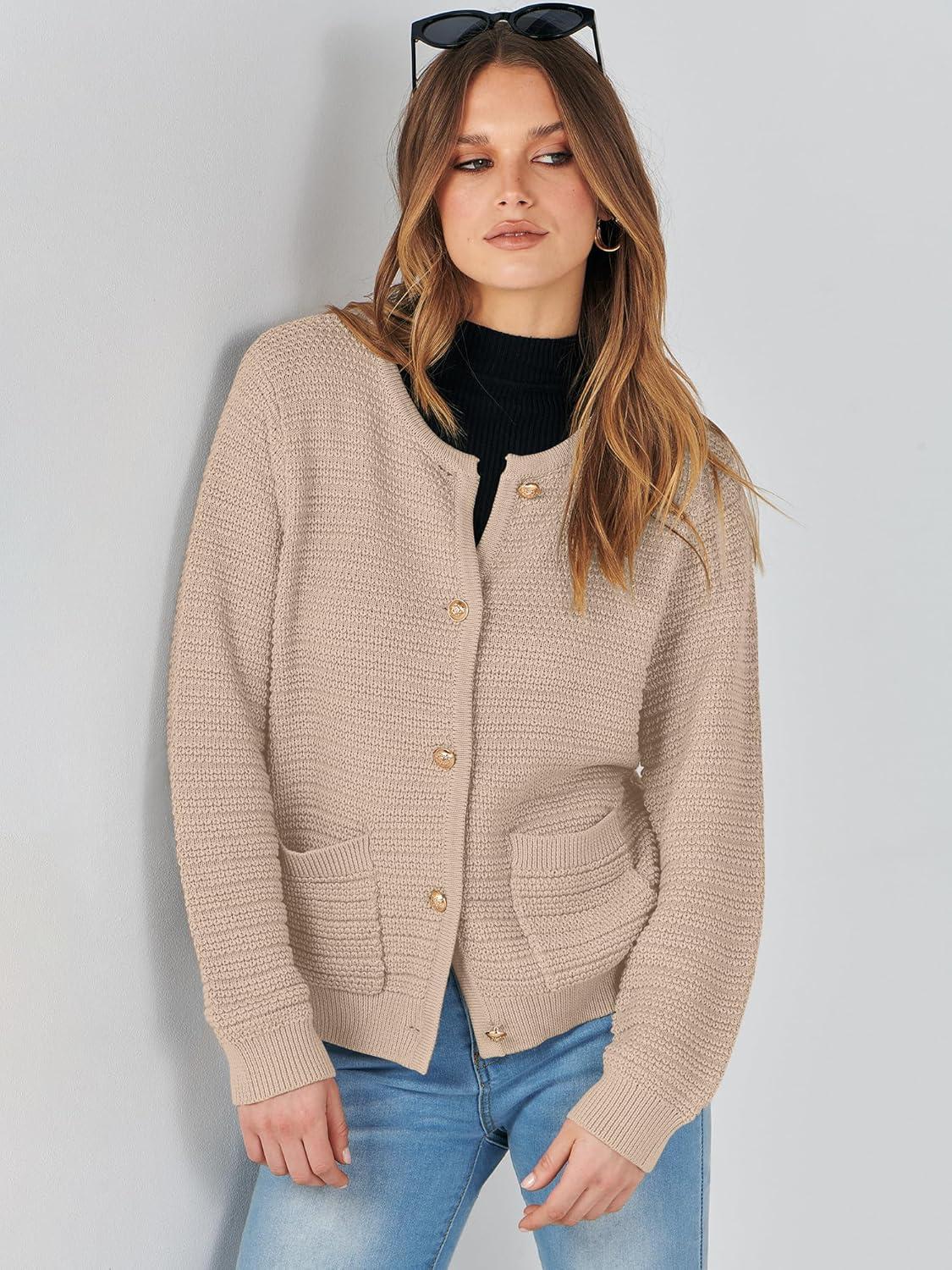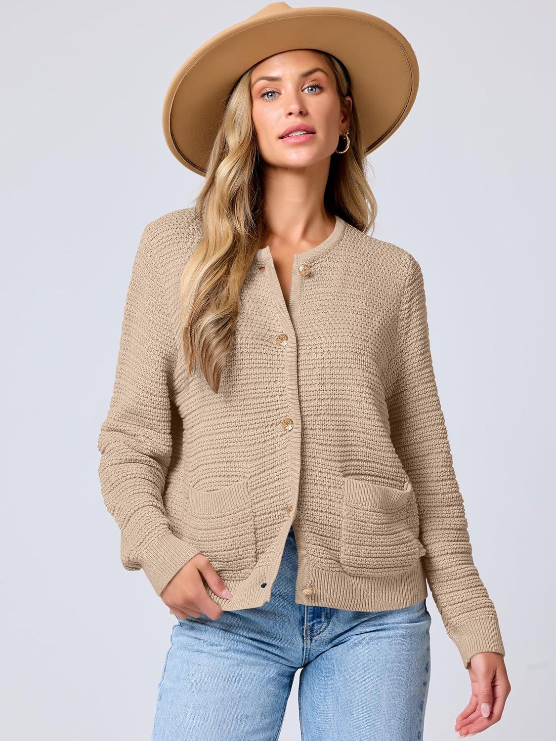 ANRABESS Womens Cardigan Sweater Long Sleeve Button Down Lady Tweed Knit Jackets 2025 Fall Outfits(Khaki)