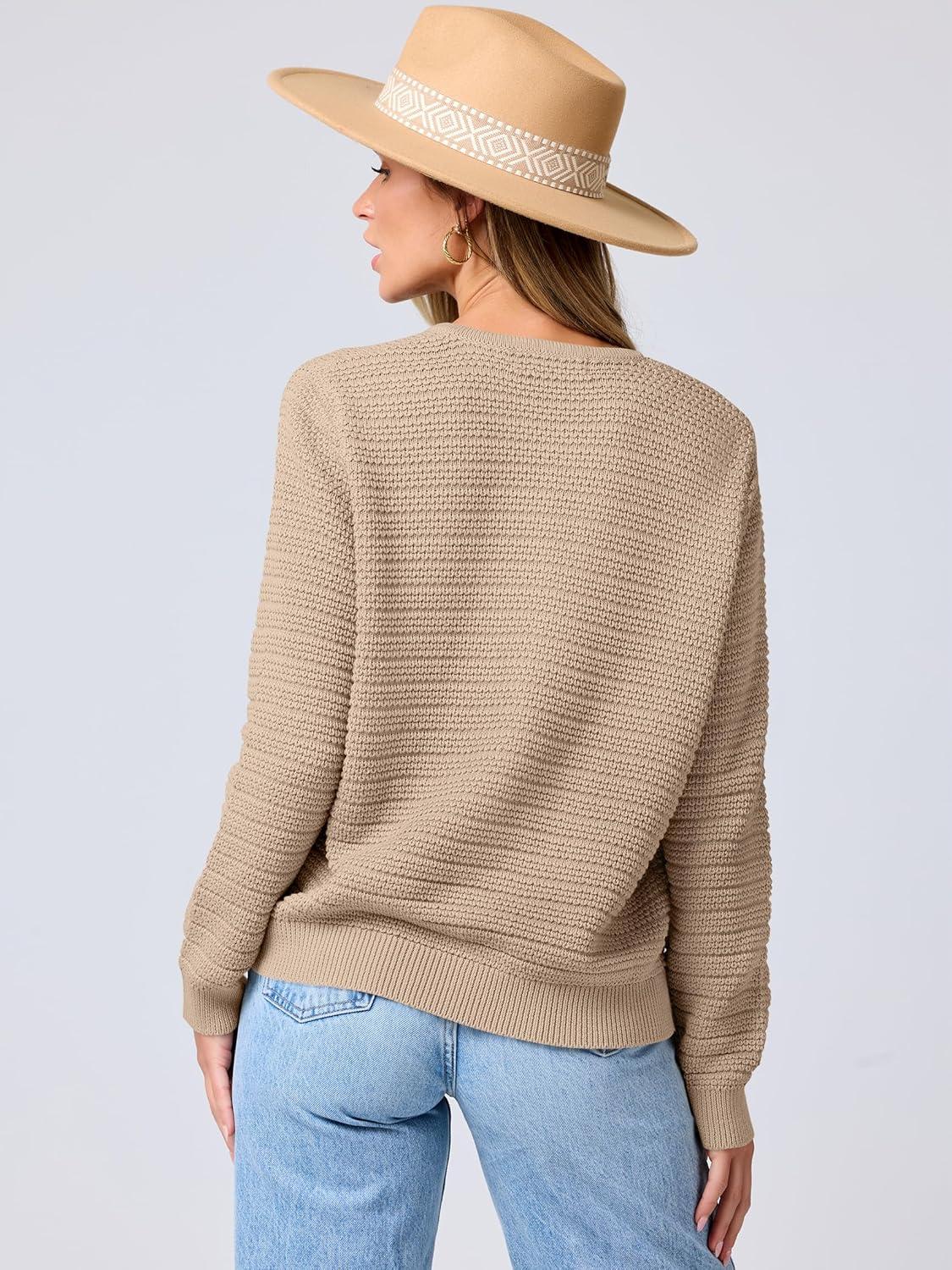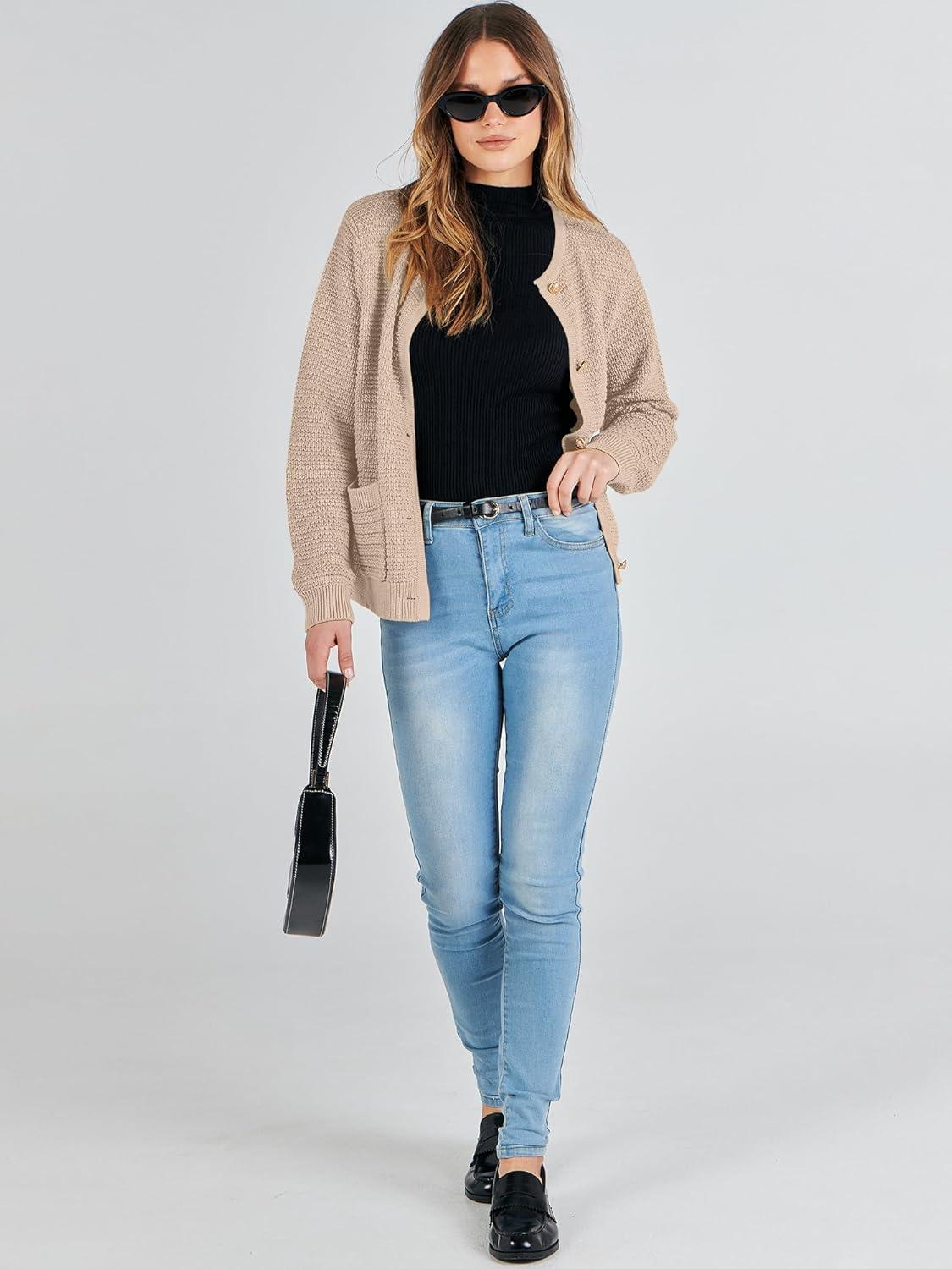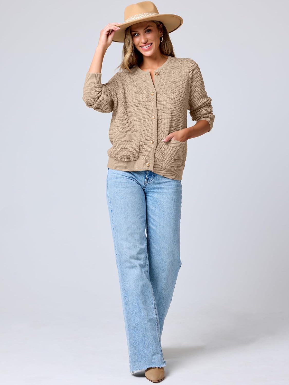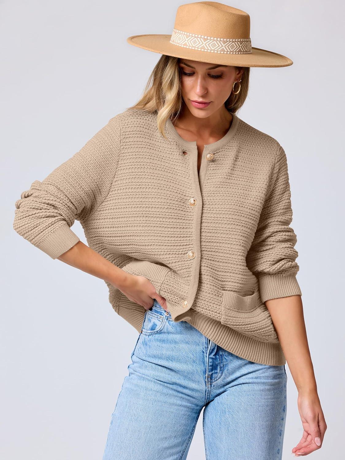 ANRABESS Womens Cardigan Sweater Long Sleeve Button Down Lady Tweed Knit Jackets 2025 Fall Outfits(Khaki)