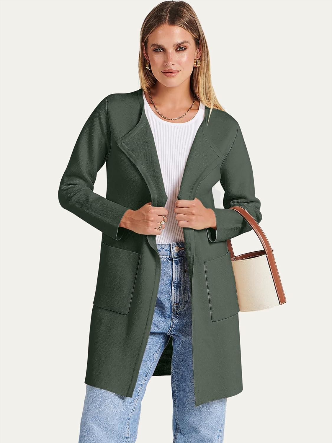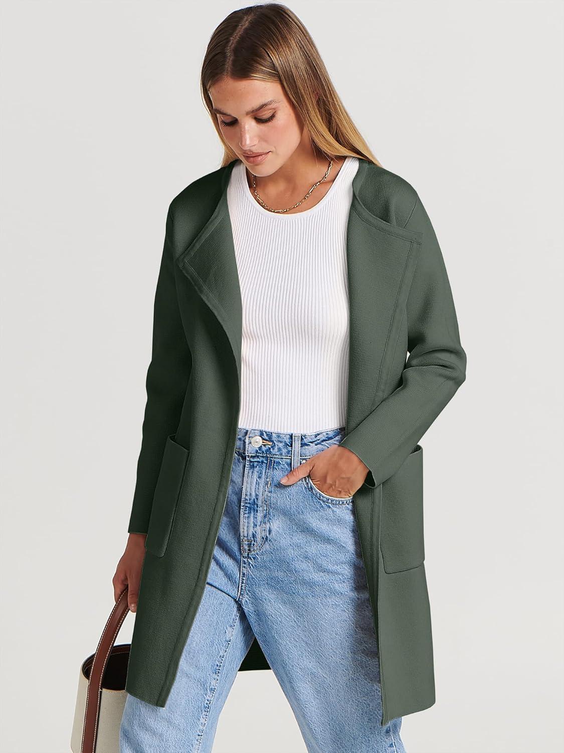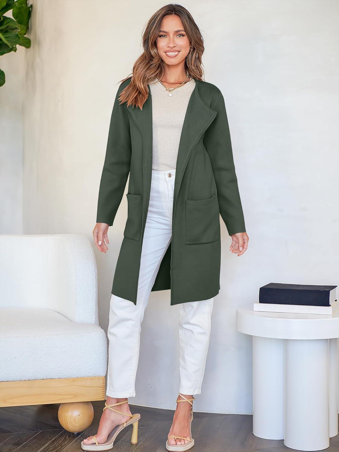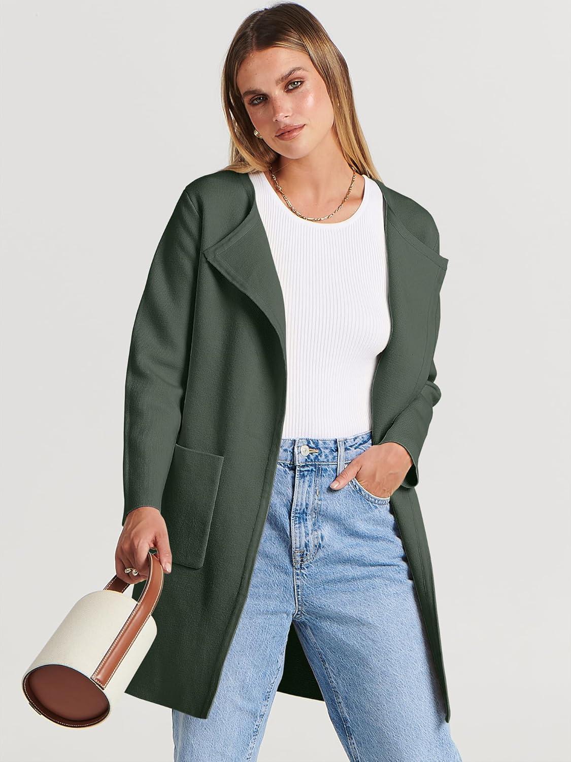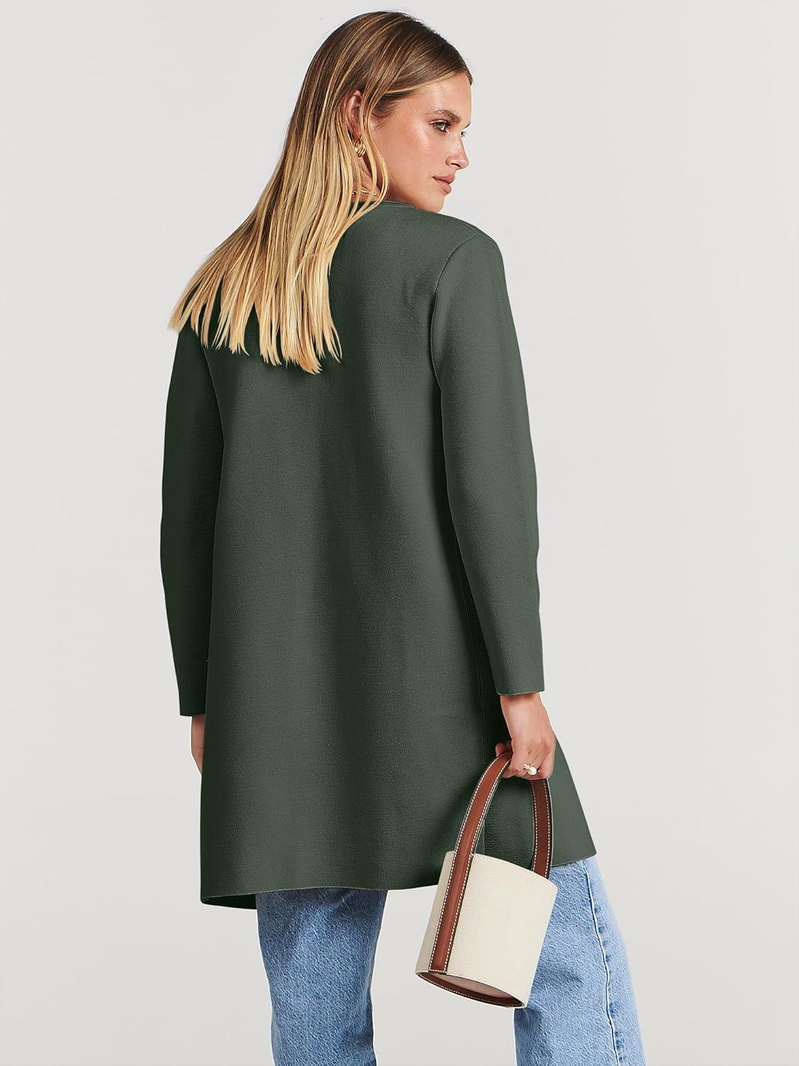 ANRABESS Womens Cardigan Sweater Open Front Knit Long Coatigan Dressy Casual Jacket Coat 2025 Fall Outfits Classy Clothes(Army Green)