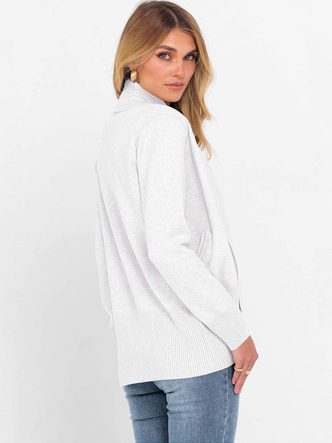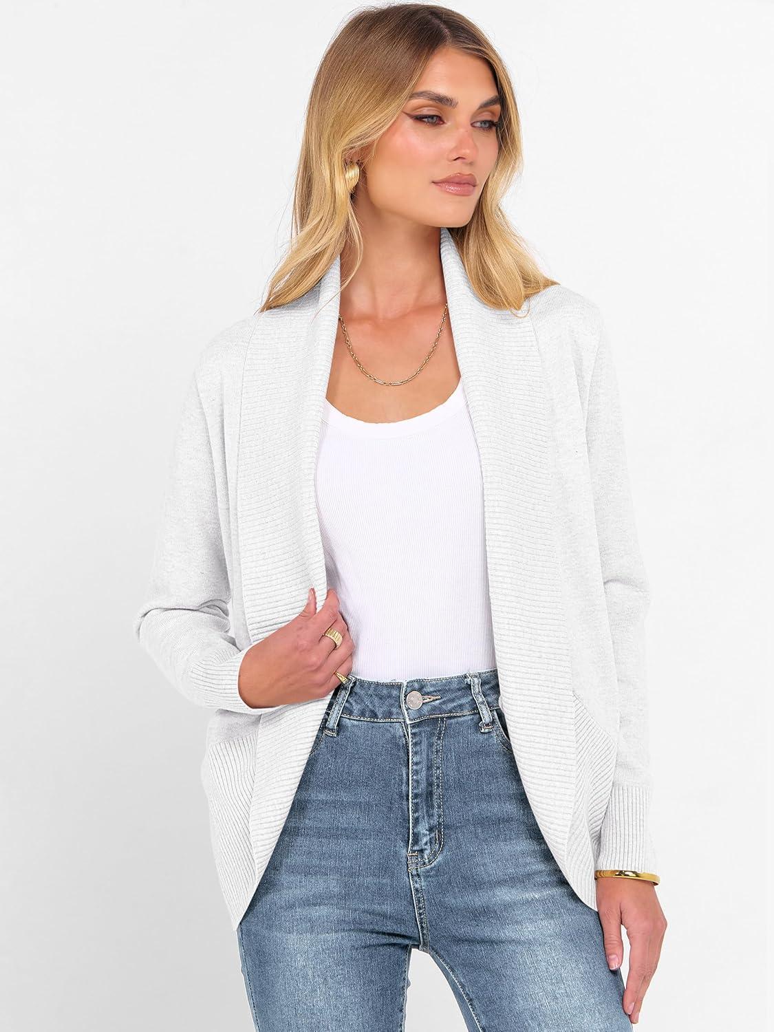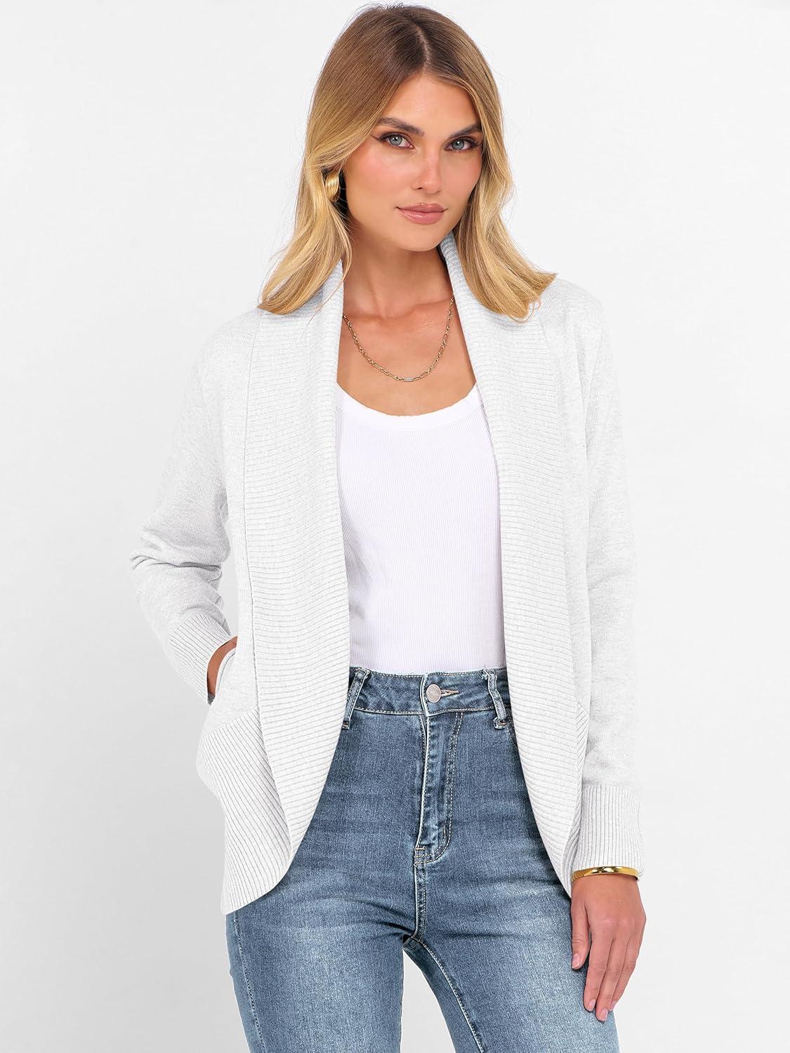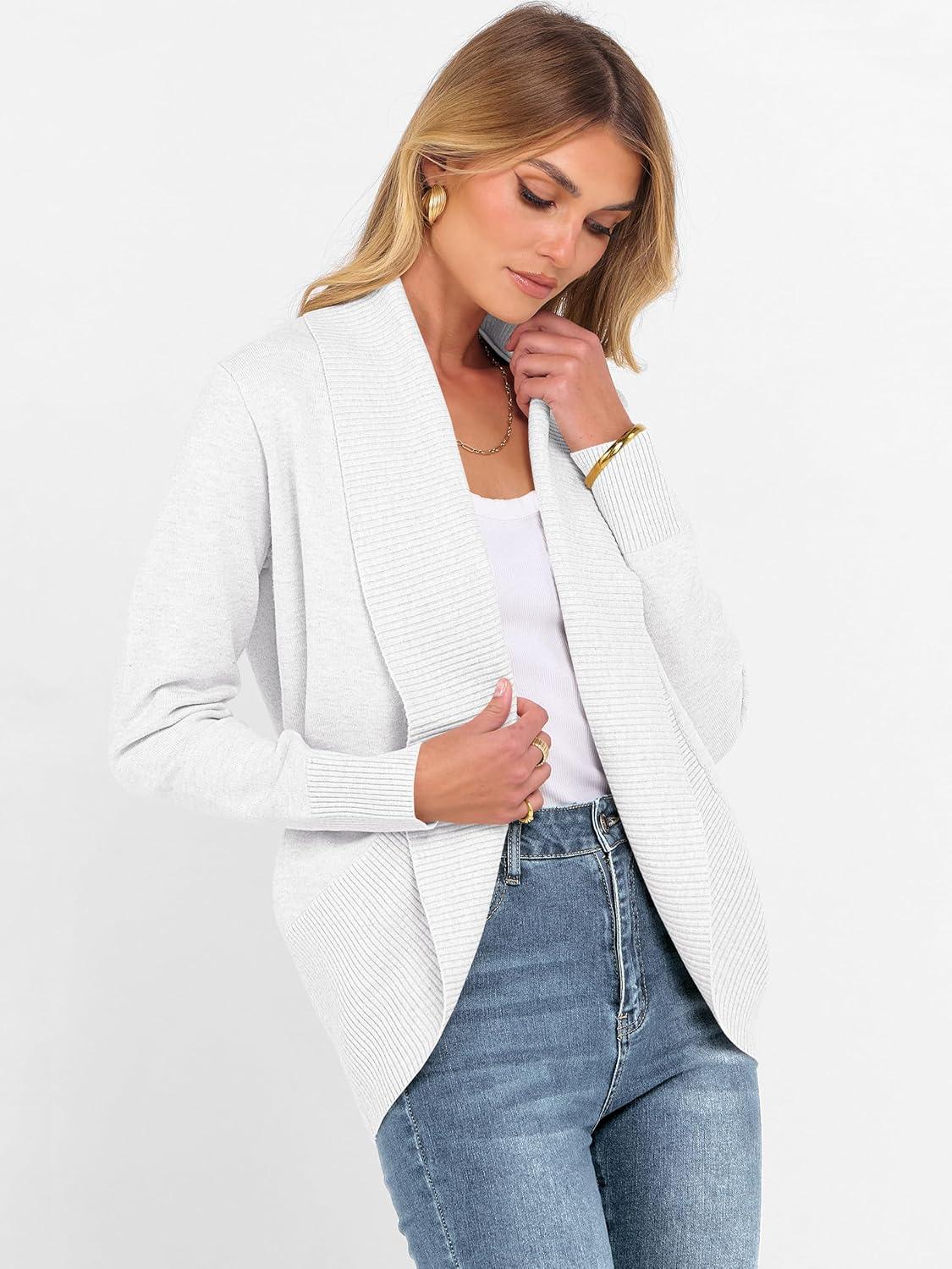 ANRABESS Womens Cardigan Sweaters Open Front Long Sleeve Shawl Neck Knit Dressy Casual 2025 Trendy Fall Winter Outerwear Coat(White)