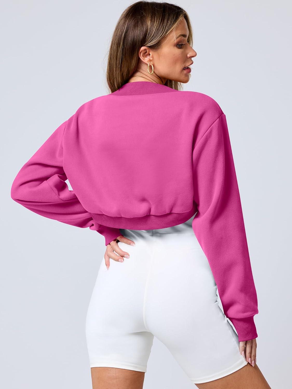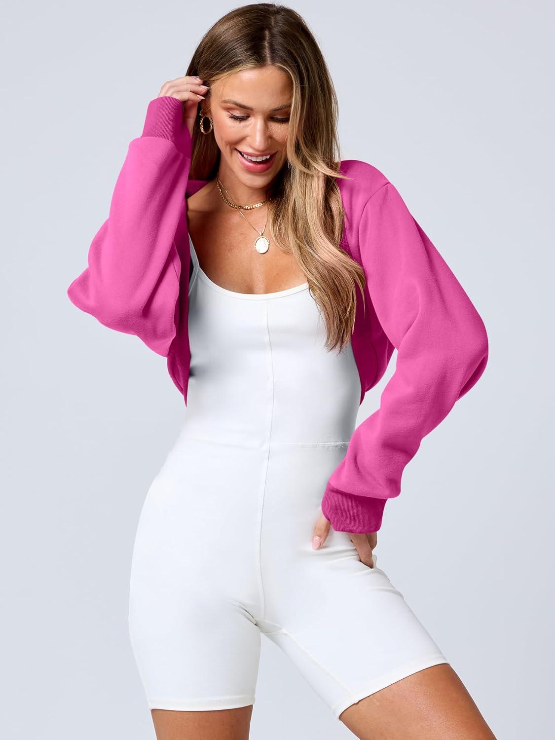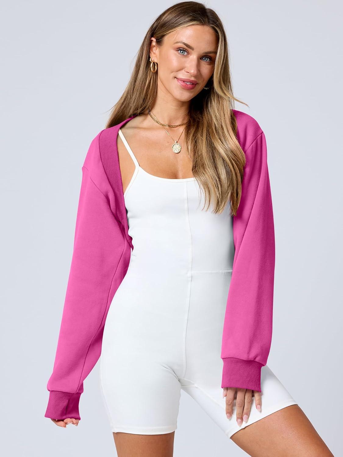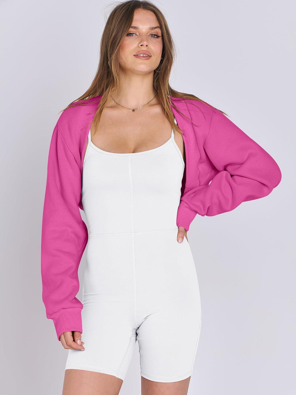 ANRABESS Womens Cropped Sweatshirt Long Sleeve Bolero Cardigan Open Front Shrug Workout Thumb Hole Y2K Tops Preppy Clothes(Hot Pink)
