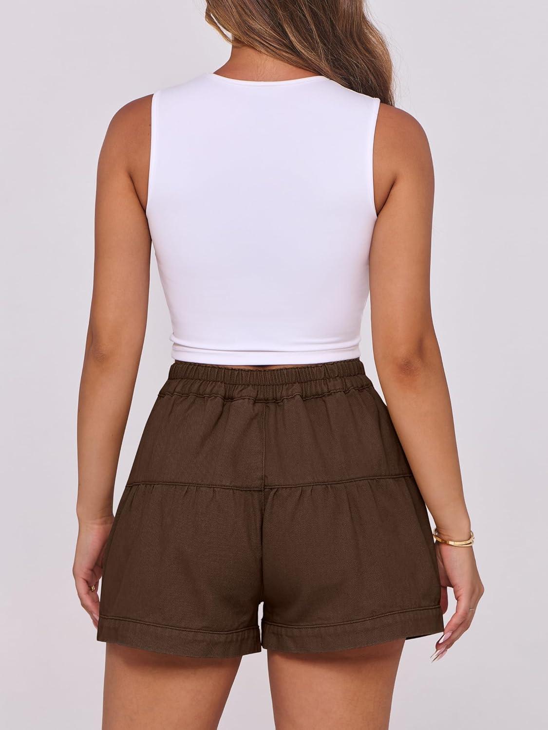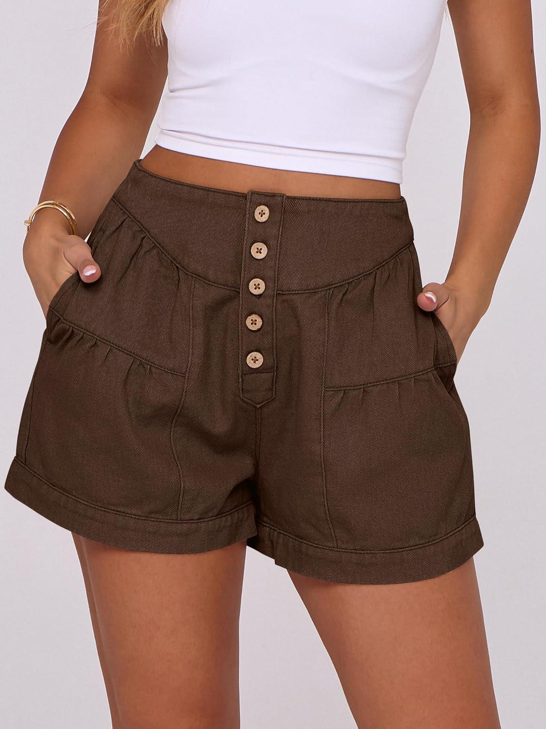 ANRABESS Women’s Denim Shorts Summer Baggy High Waisted Flowy Wide Leg Buttons Pleated Casual Jean Shorts 2025 Fashion Skorts(Brown)