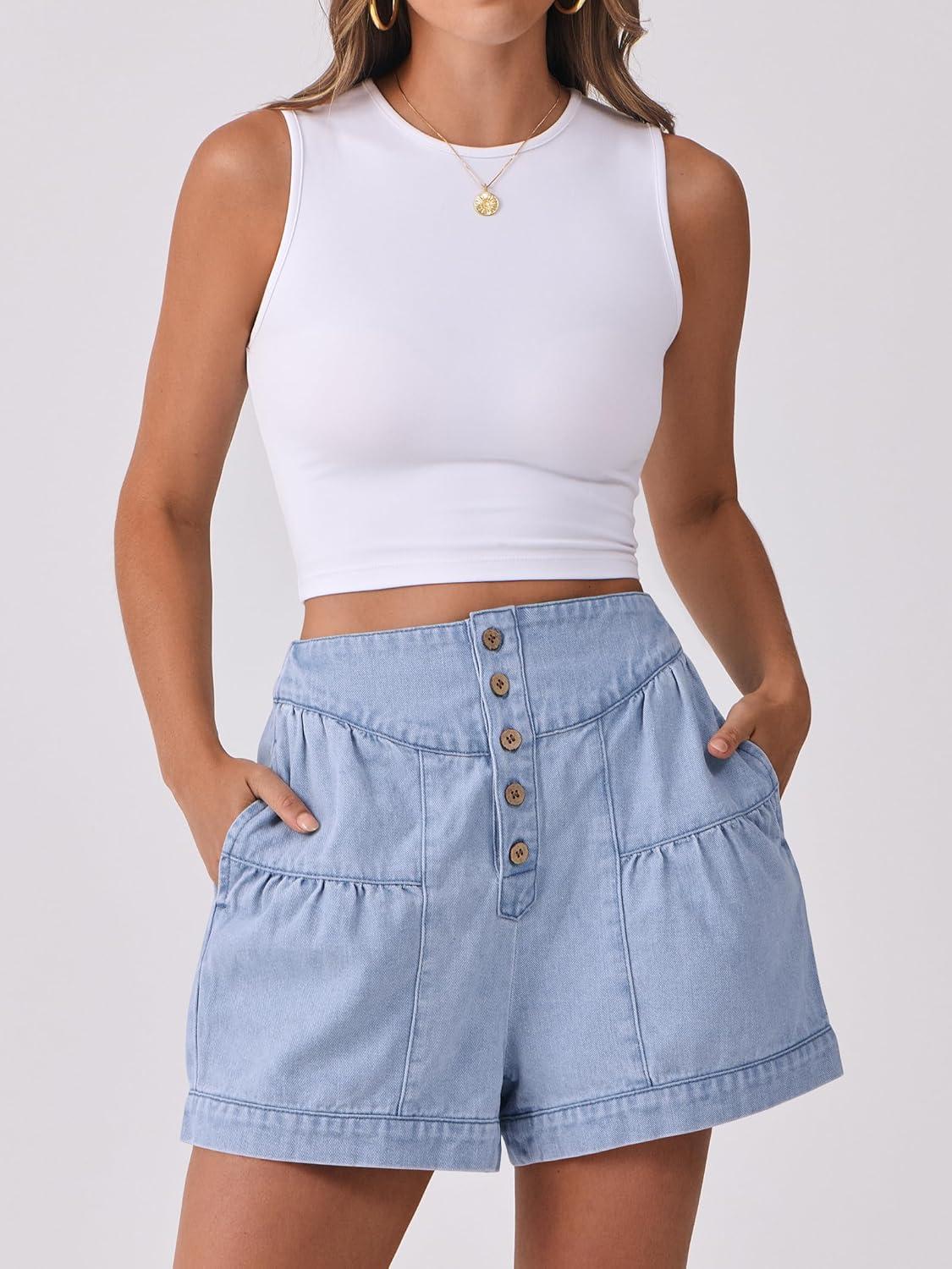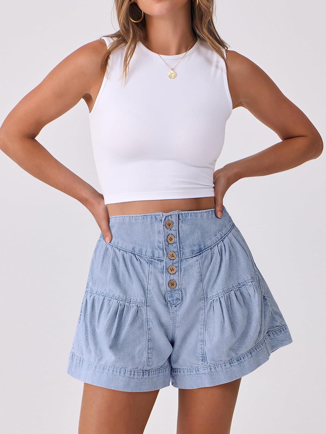 ANRABESS Women’s Denim Shorts Summer Baggy High Waisted Flowy Wide Leg Buttons Pleated Casual Jean Shorts 2025 Fashion Skorts(Light Blue)