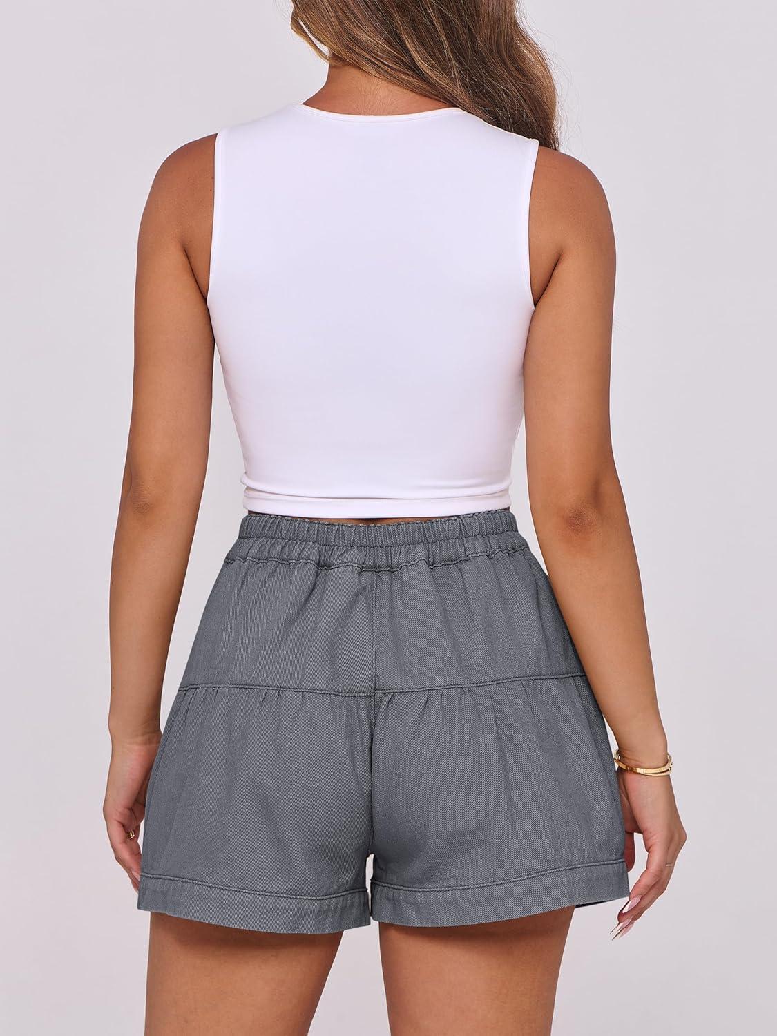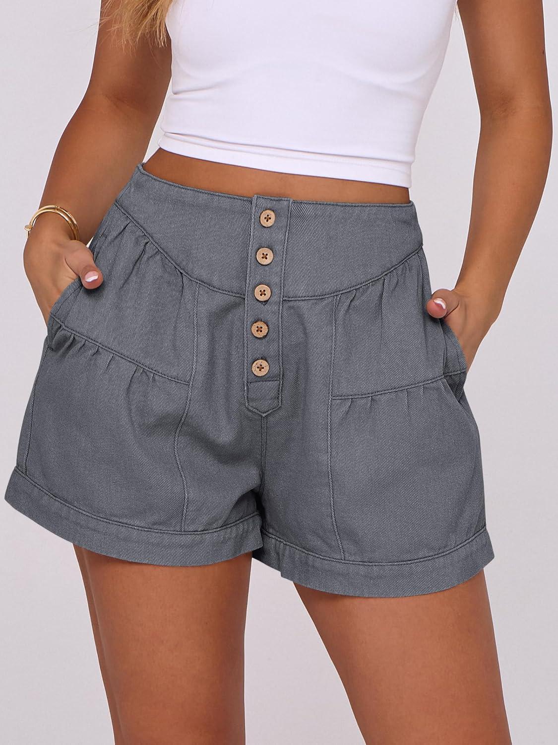 ANRABESS Women’s Denim Shorts Summer Baggy High Waisted Flowy Wide Leg Buttons Pleated Casual Jean Shorts 2025 Fashion Skorts(Light Grey)