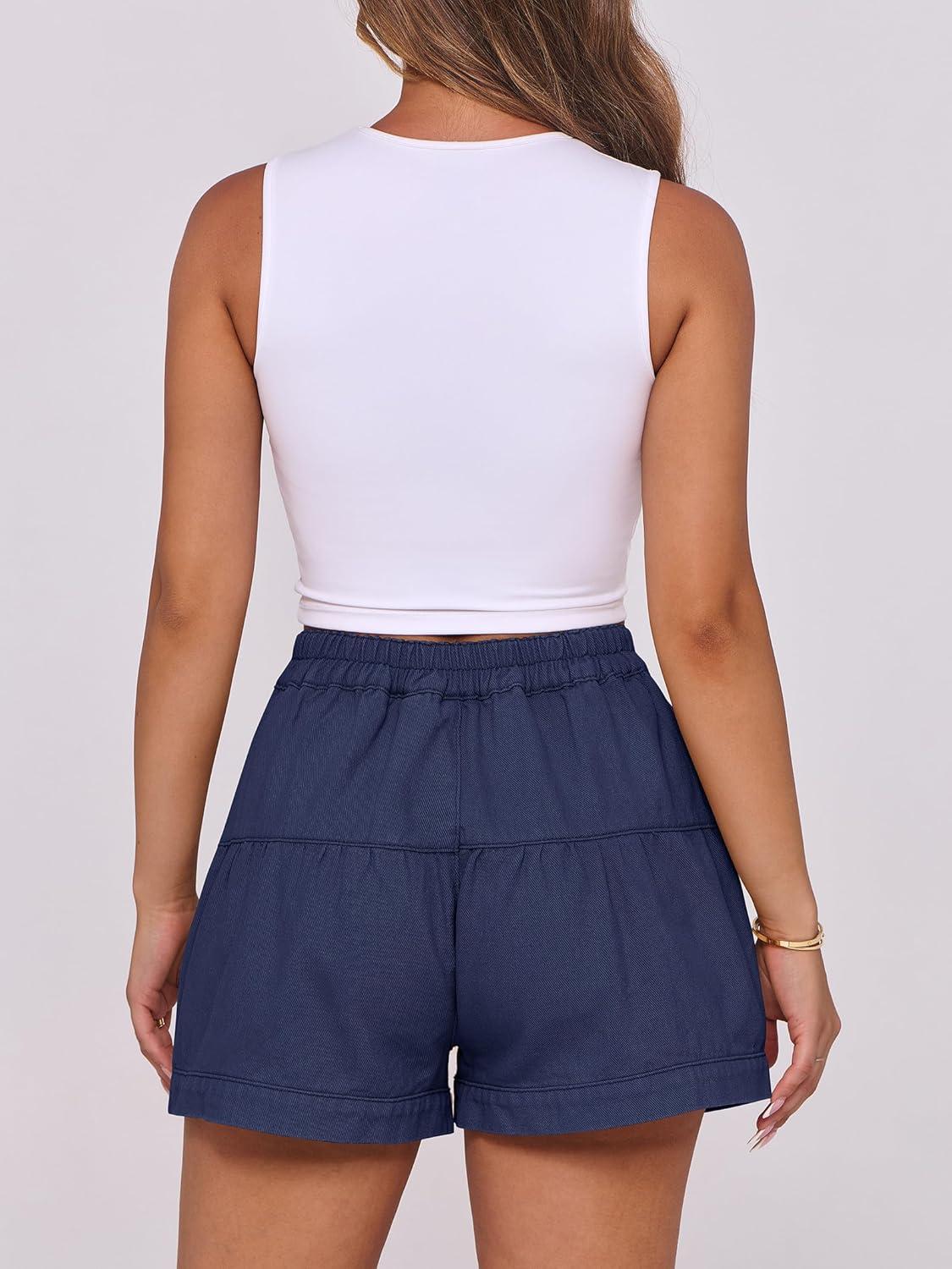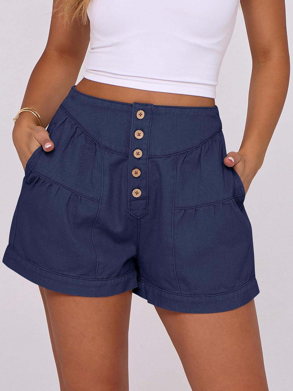 ANRABESS Women’s Denim Shorts Summer Baggy High Waisted Flowy Wide Leg Buttons Pleated Casual Jean Shorts 2025 Fashion Skorts(Navy Blue)