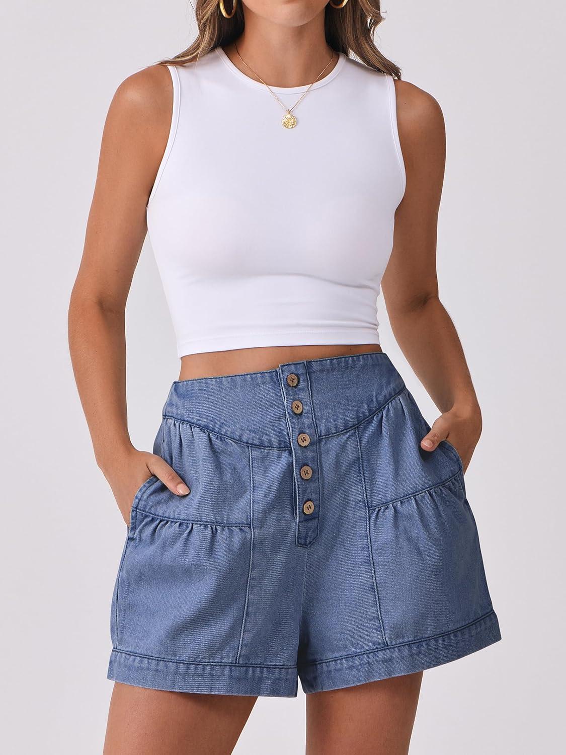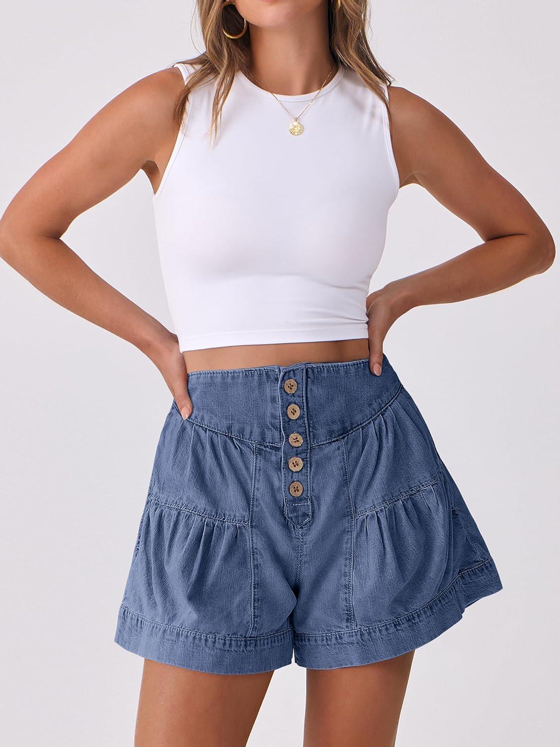 ANRABESS Women’s Denim Shorts Summer Baggy High Waisted Flowy Wide Leg Buttons Pleated Casual Jean Shorts 2025 Fashion Skorts(Washed Blue)