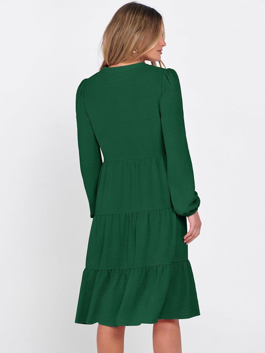 ANRABESS Womens Fall Midi Dresses Long Sleeve V Neck Swing Tiered Work Business Casual 2025 Flowy Beach Vacation Dress(Forest Green)