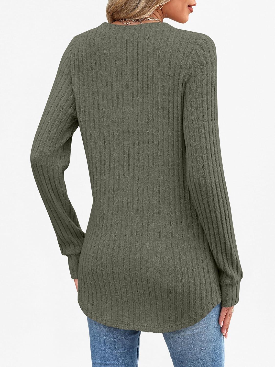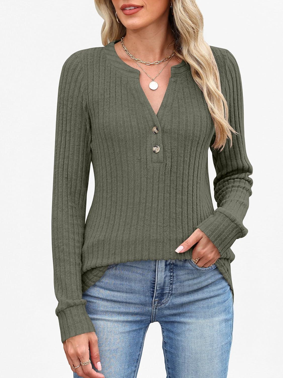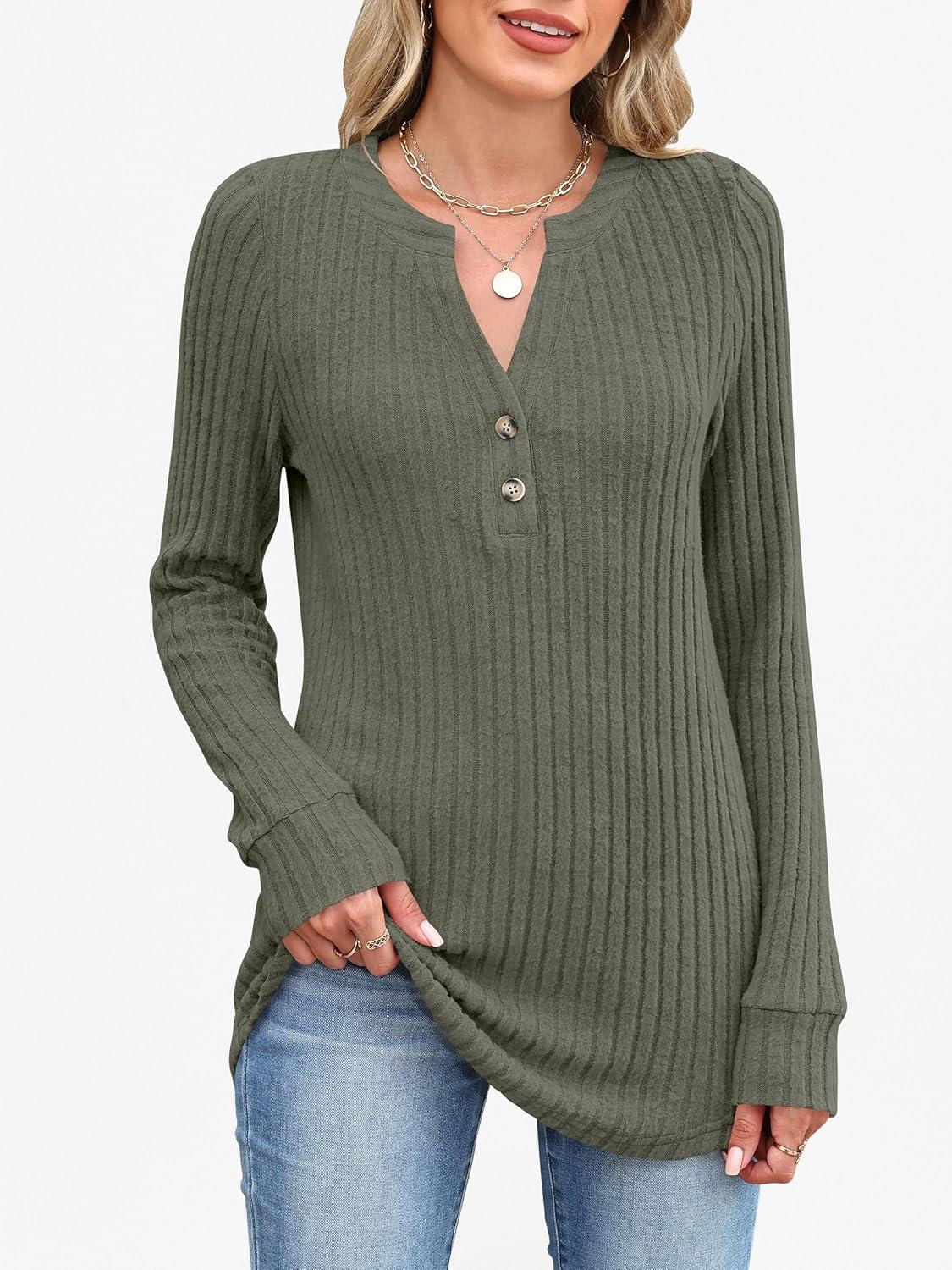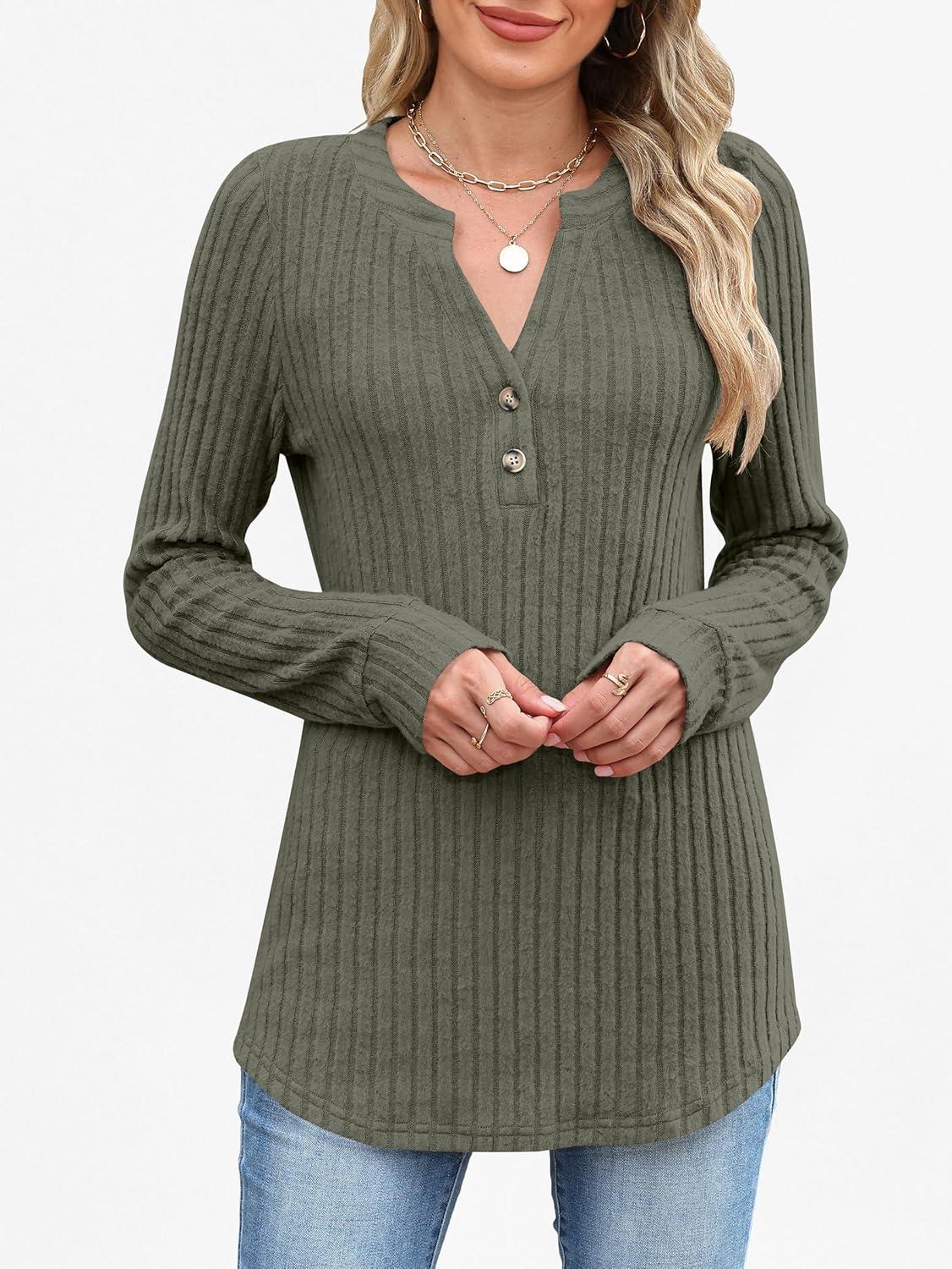 ANRABESS Womens Henley Shirts Long Sleeve Tunic Tops 2025 Fall Fashion Outfits Ribbed Knit Sweaters Ladies Casual Clothes(Deep Green)