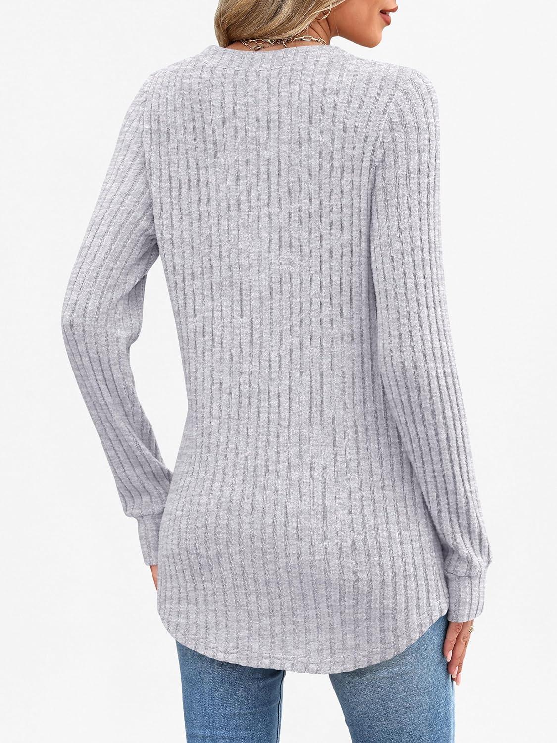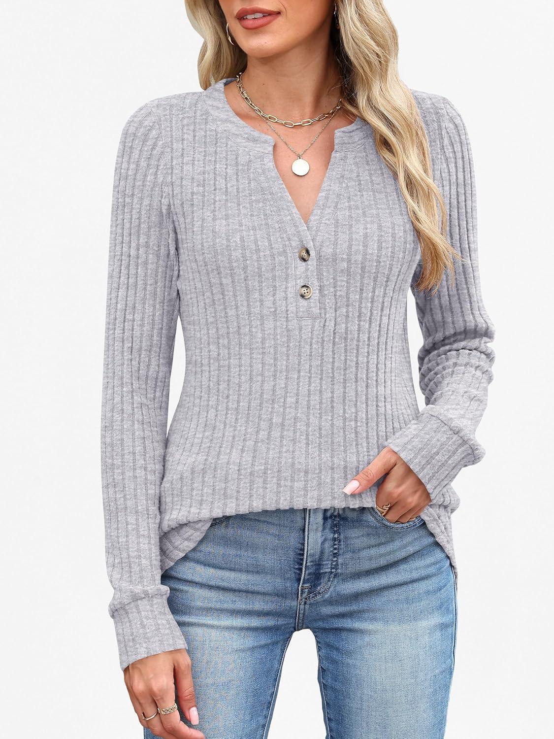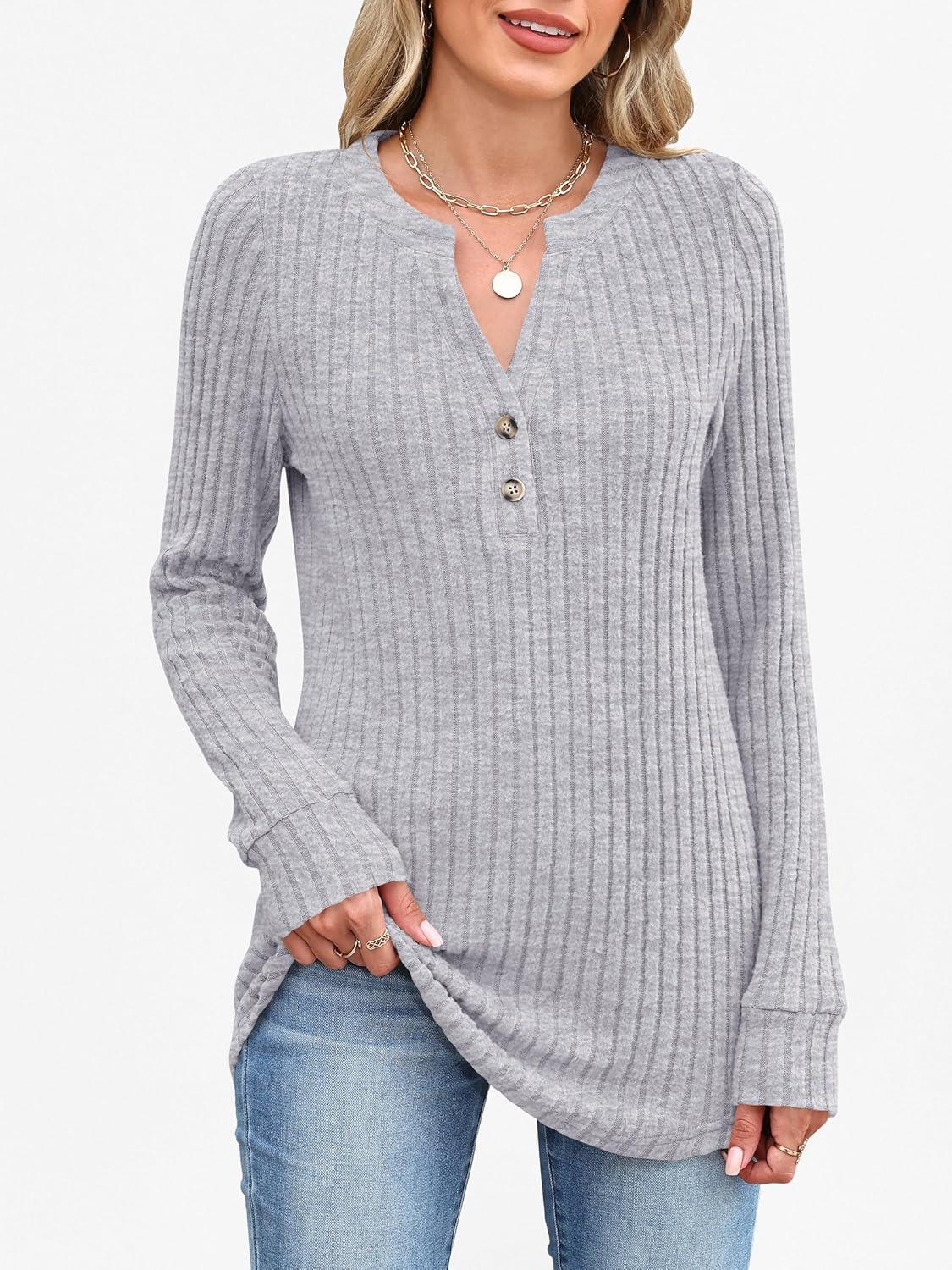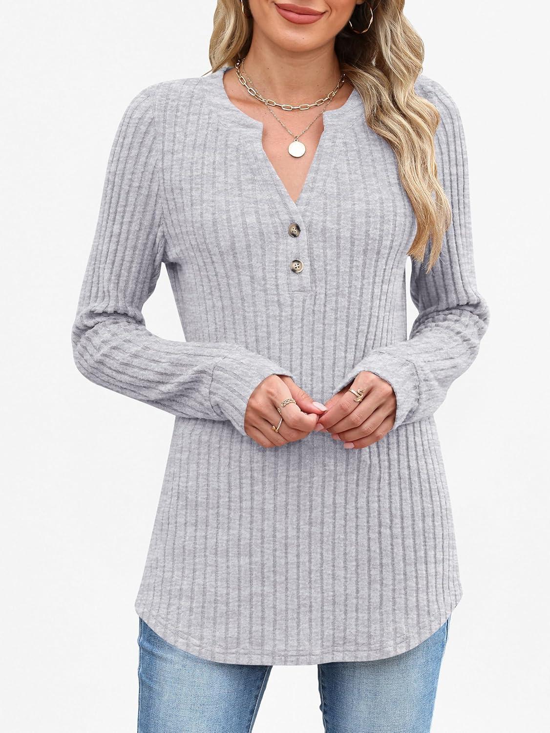 ANRABESS Womens Henley Shirts Long Sleeve Tunic Tops 2025 Fall Fashion Outfits Ribbed Knit Sweaters Ladies Casual Clothes(Grey)
