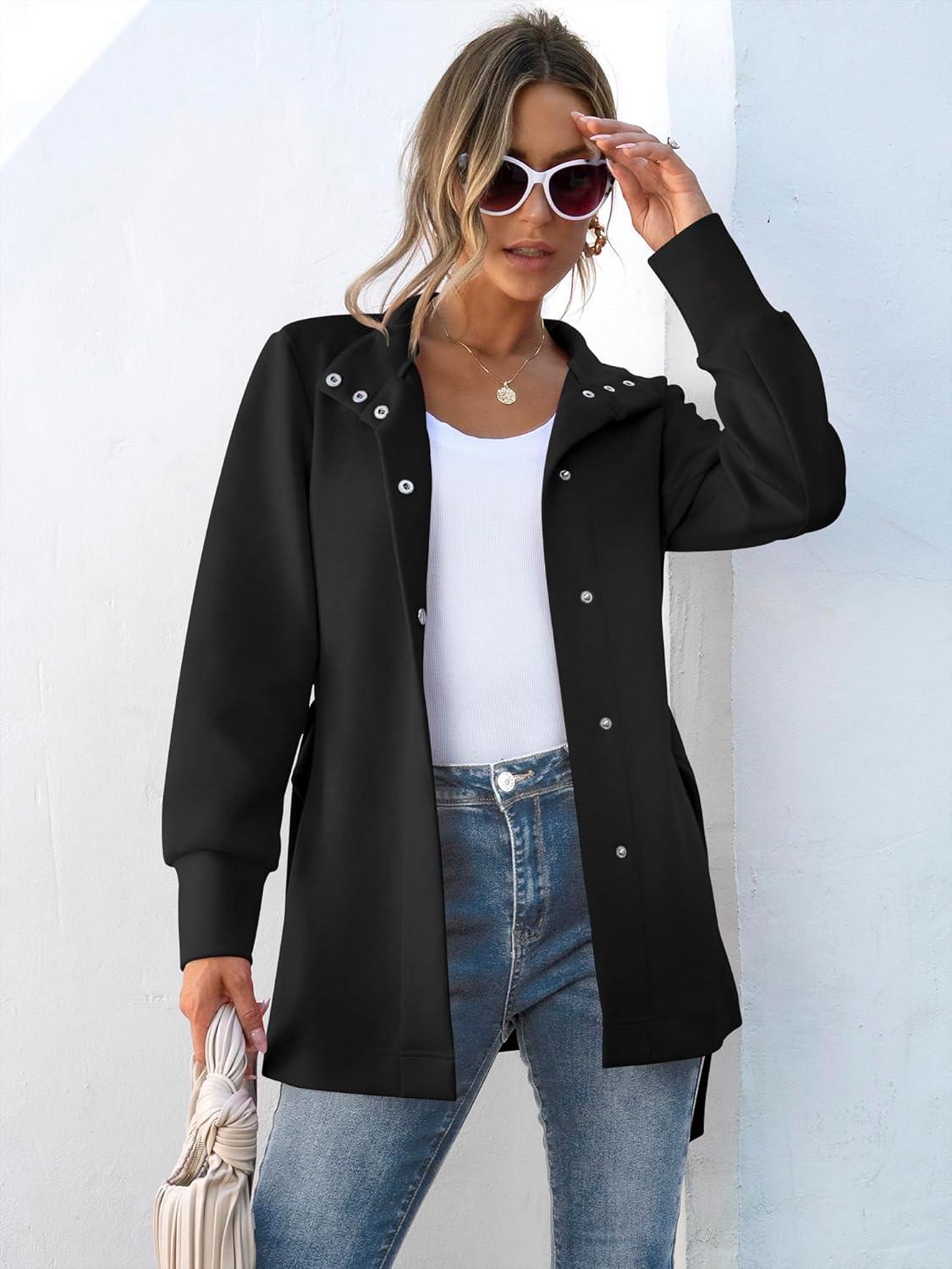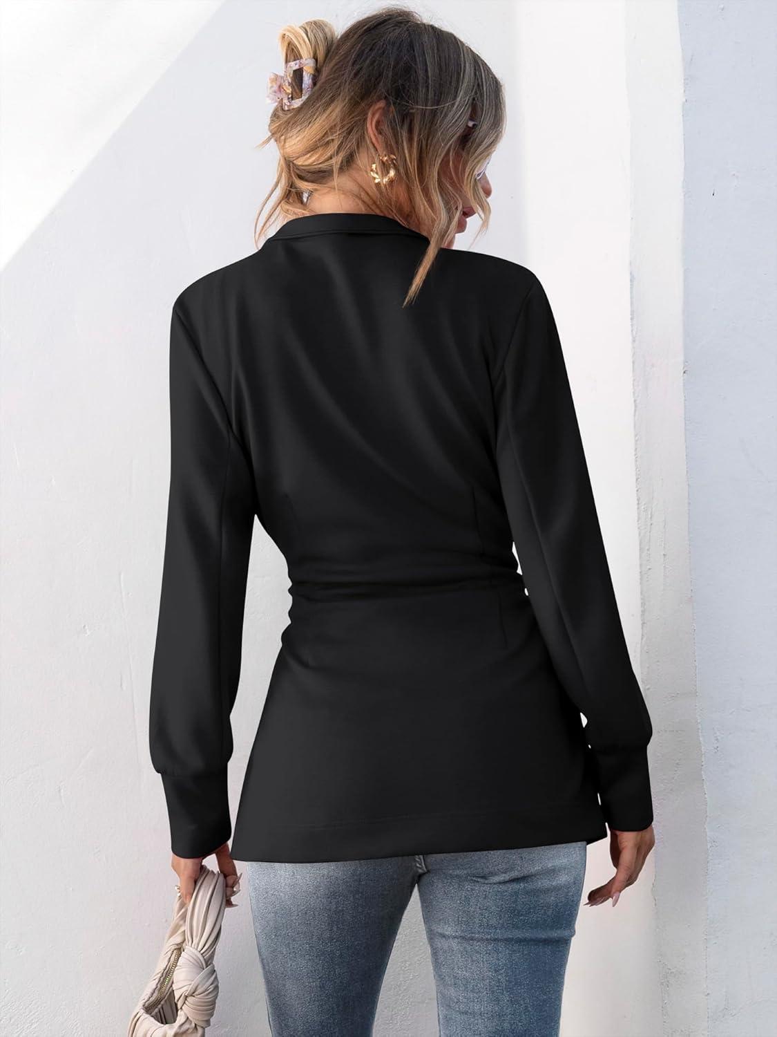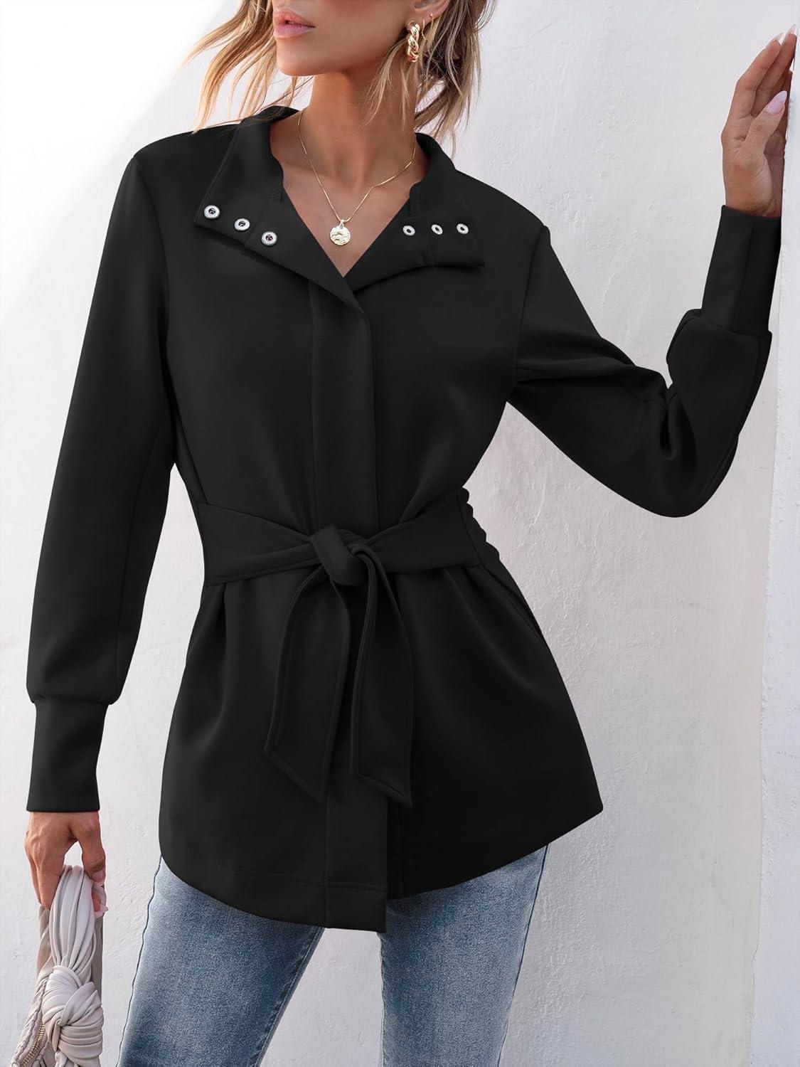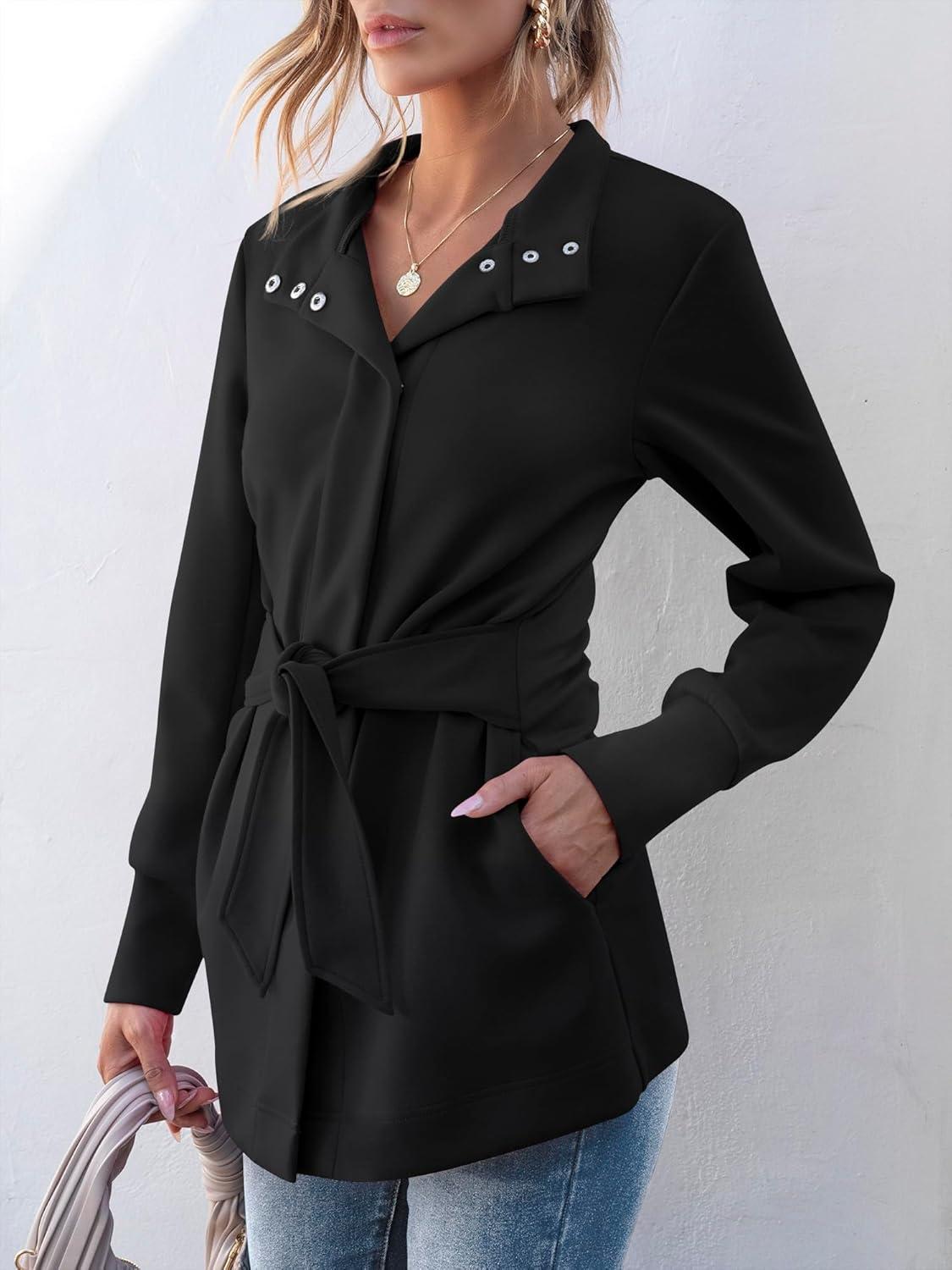 ANRABESS Women’s Jacket Belted Long Sleeve Wrap Trench Coat 2025 Fall Winter Casual Dressy Travel Outerwear with Pockets(Black)